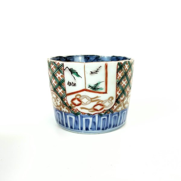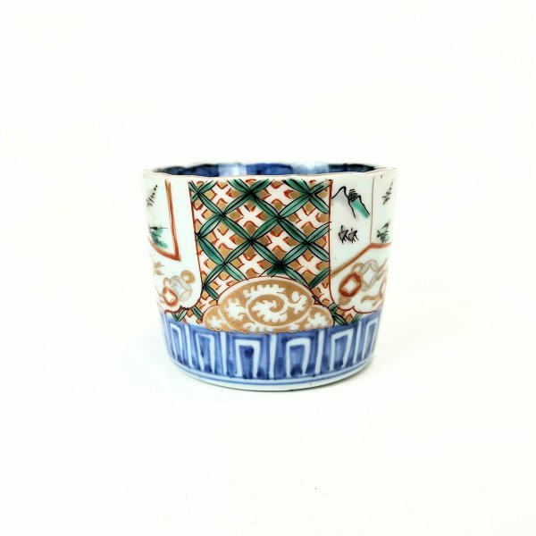 japanese antique Imari blue and white soba cup with design of octopus arabespue