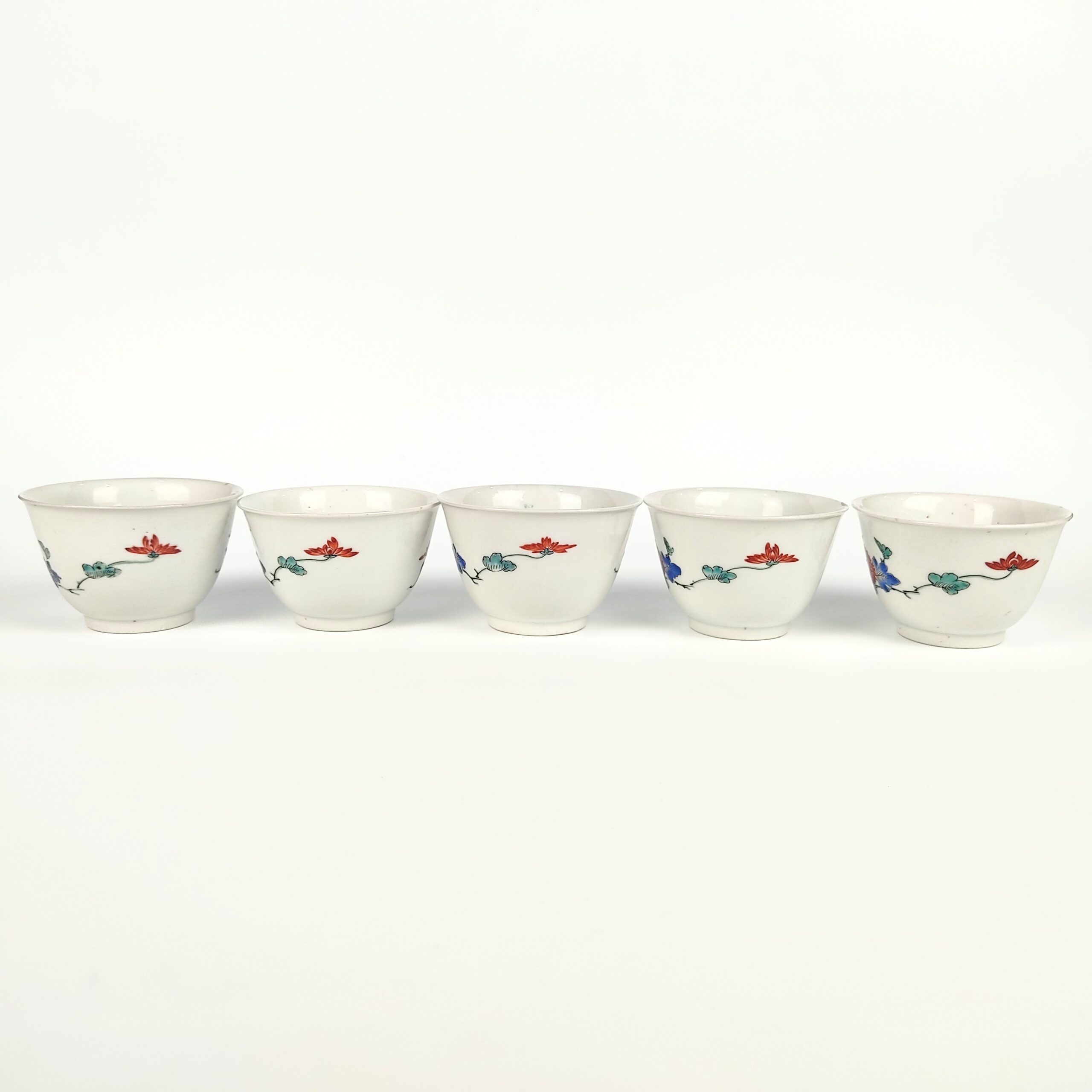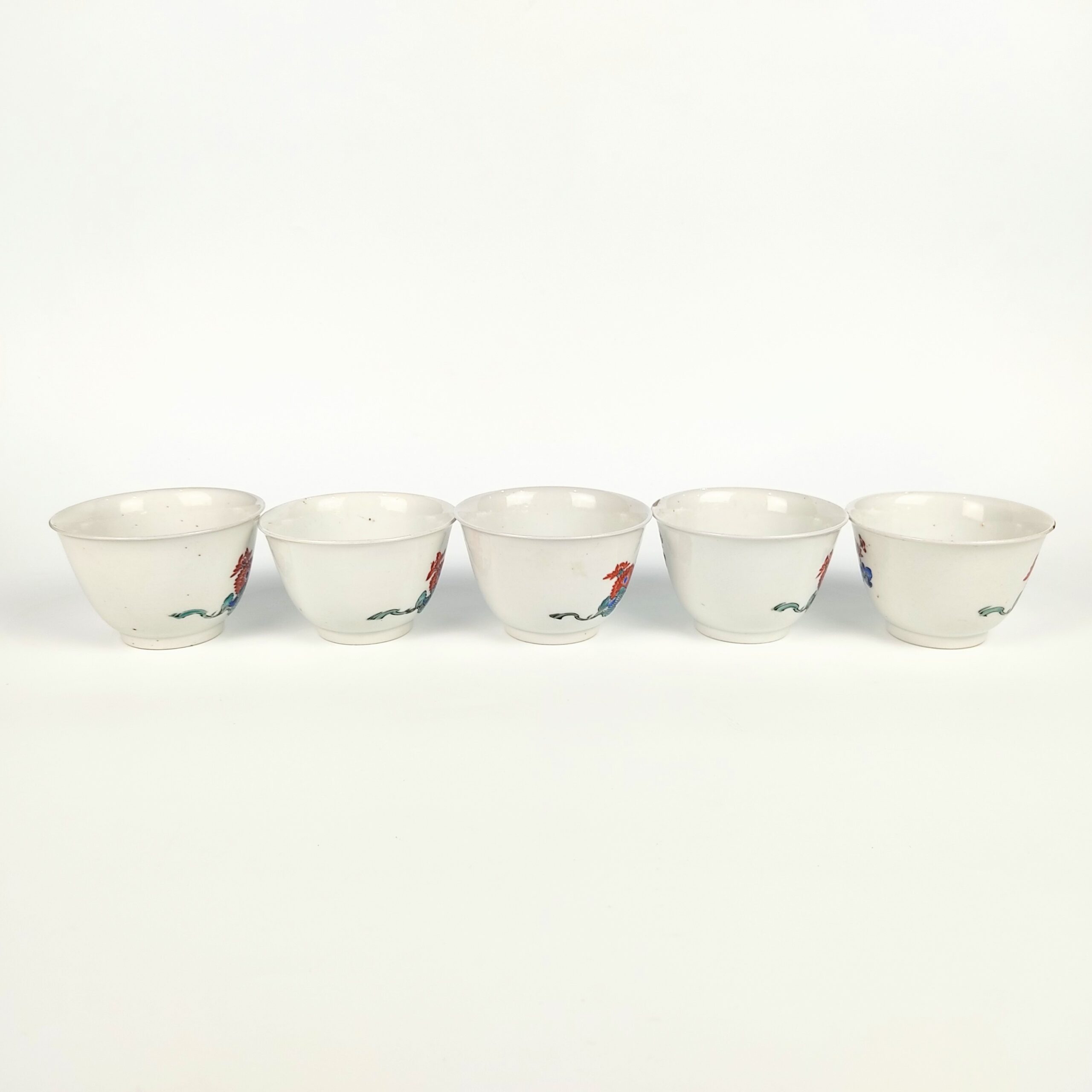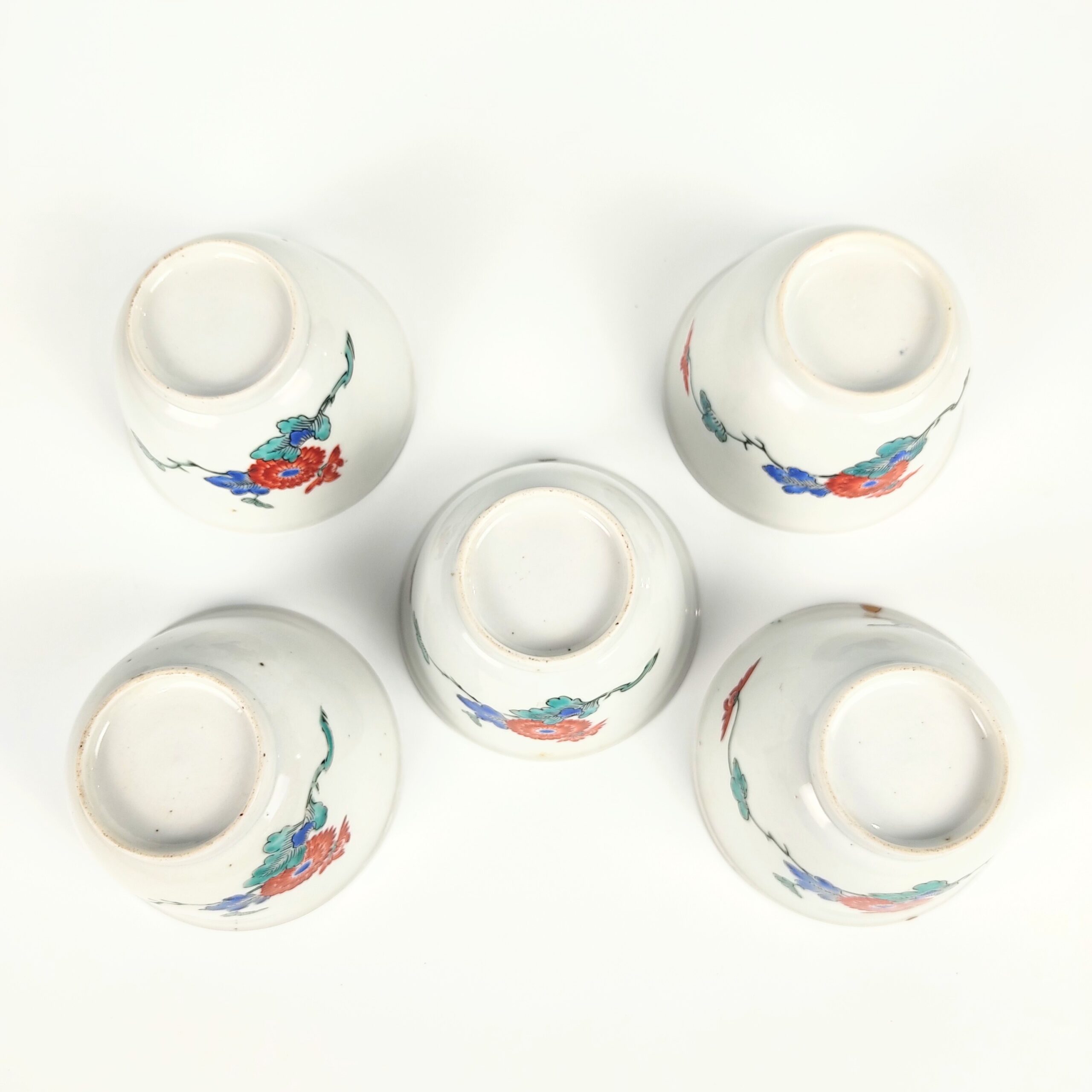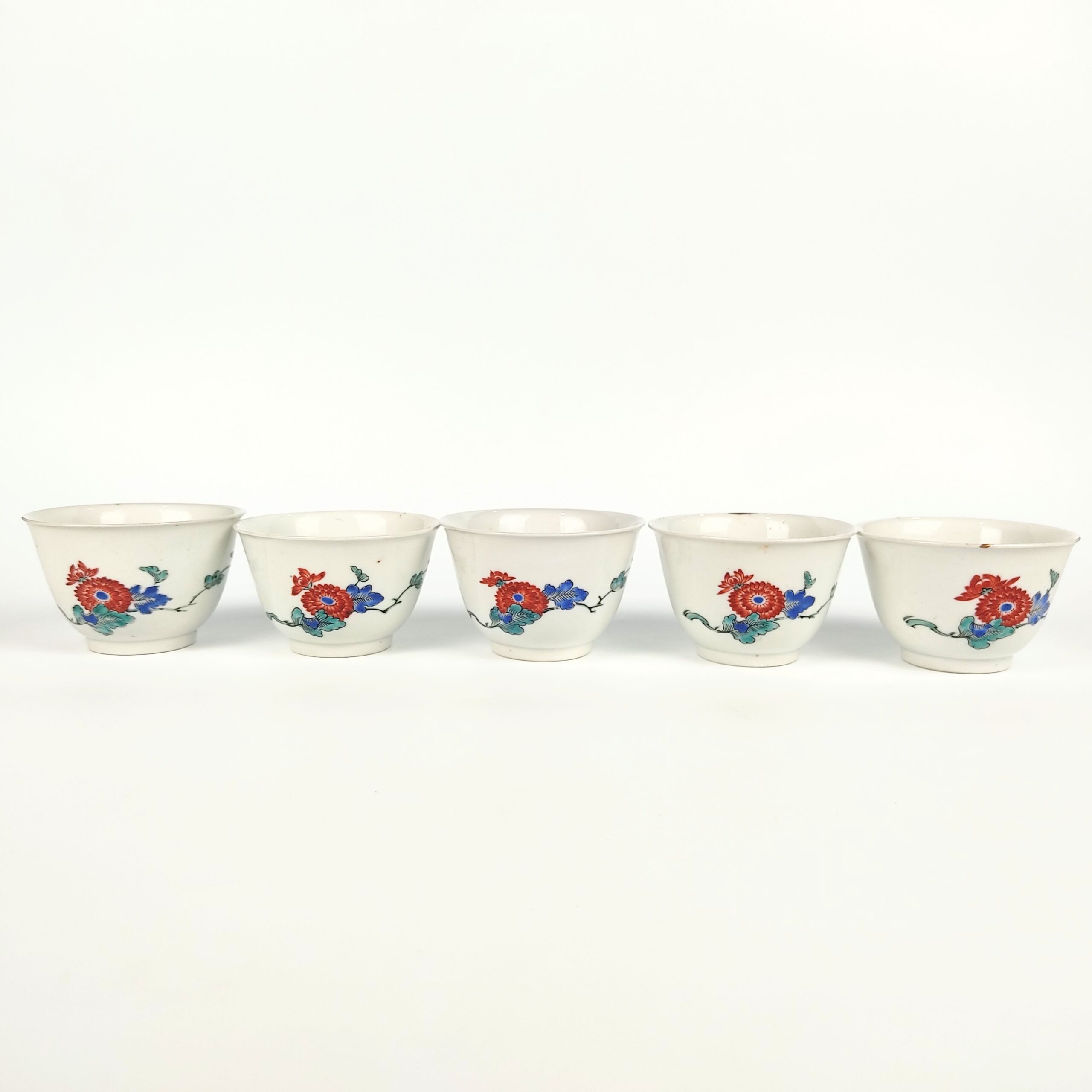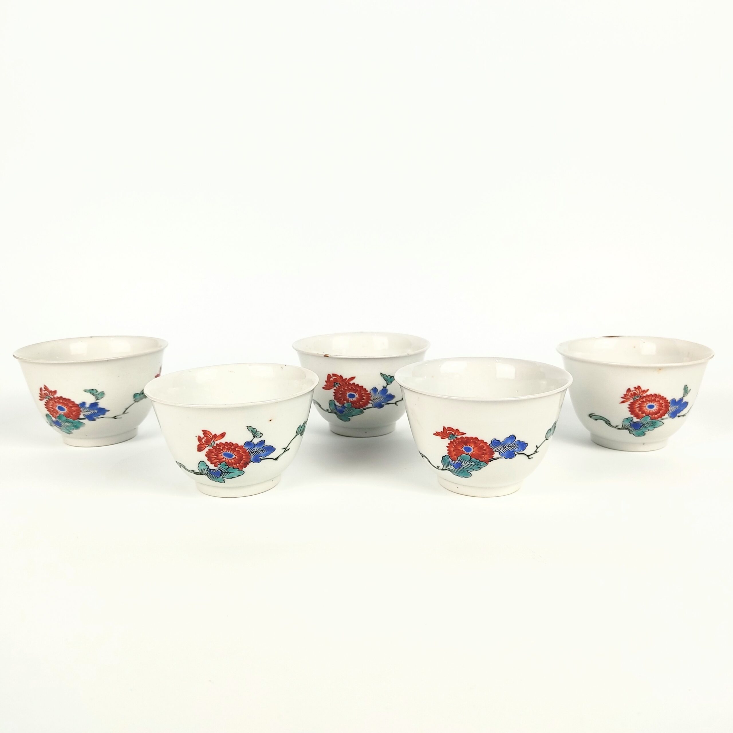 japanese antique Imari ware kakiemon style colored cup with design of chrysanthemum,set of 5
