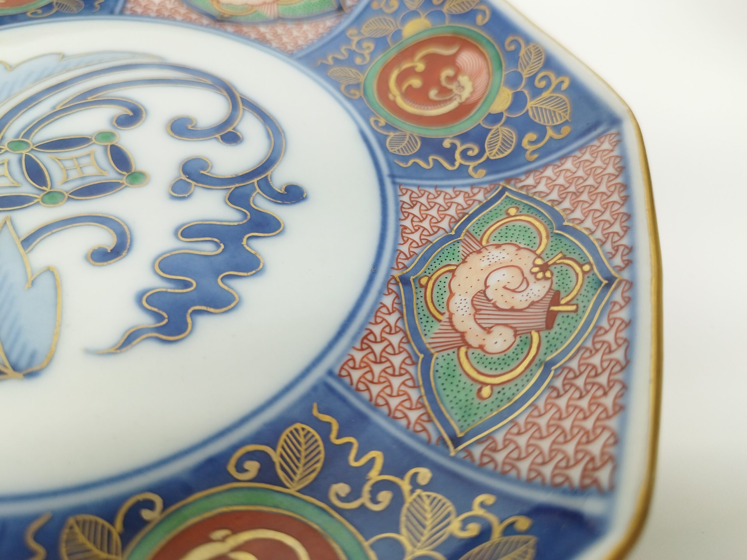 japanese antique Daishouji colored dish wih design of doragon and treasures