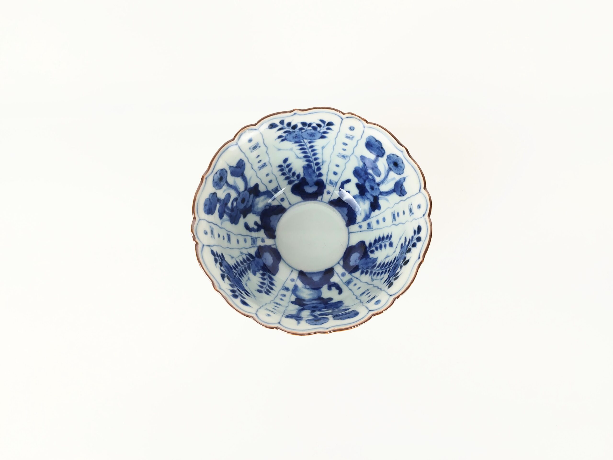japanese antique Imari ware blue and white cup with design of Cotton rose