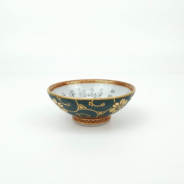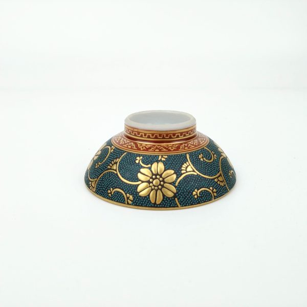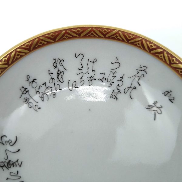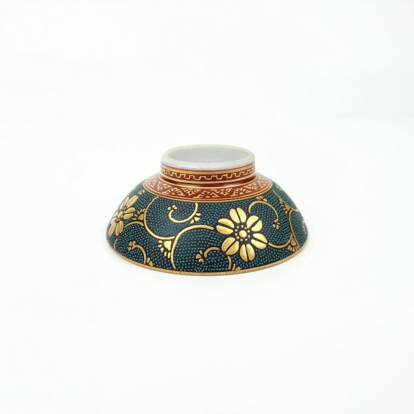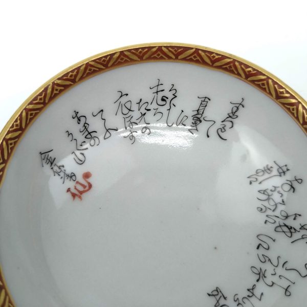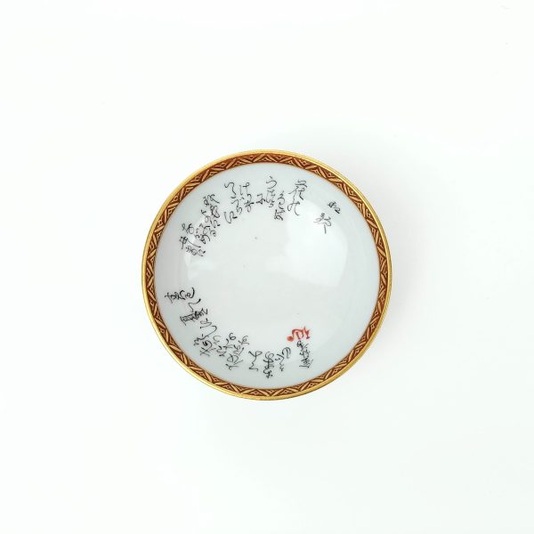 japanese antique Kutani Ware blue dots Sake Cup With design of tiny writing,signed