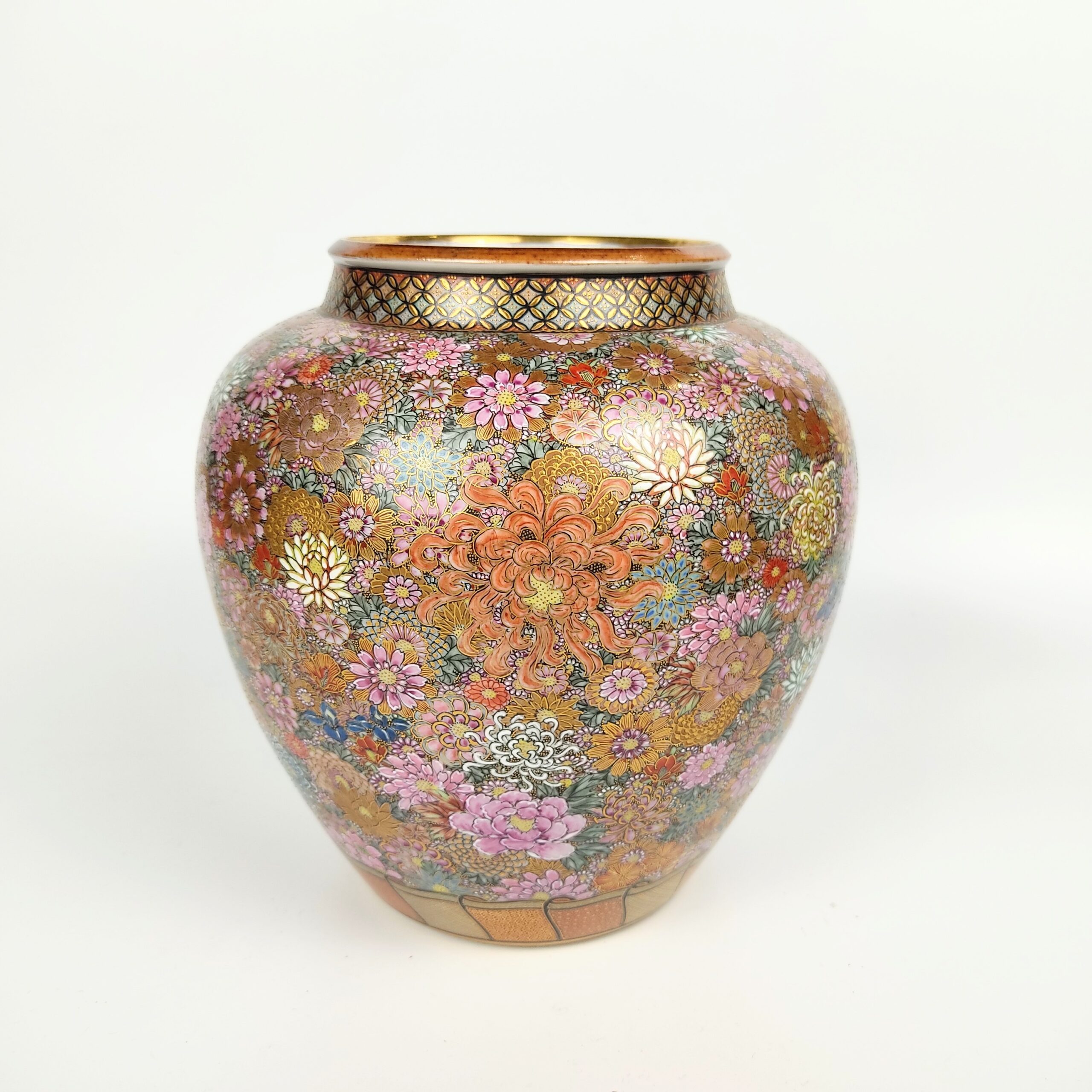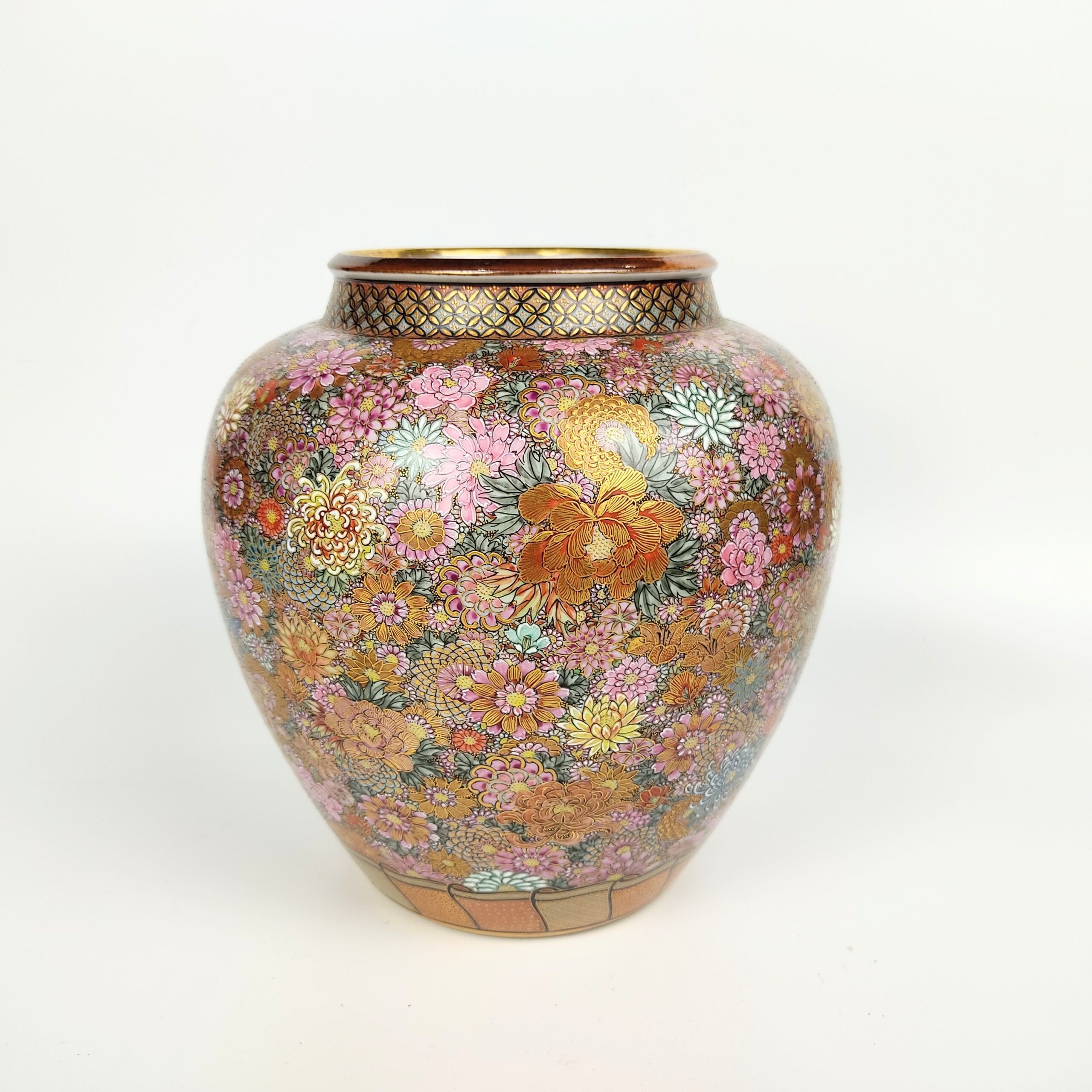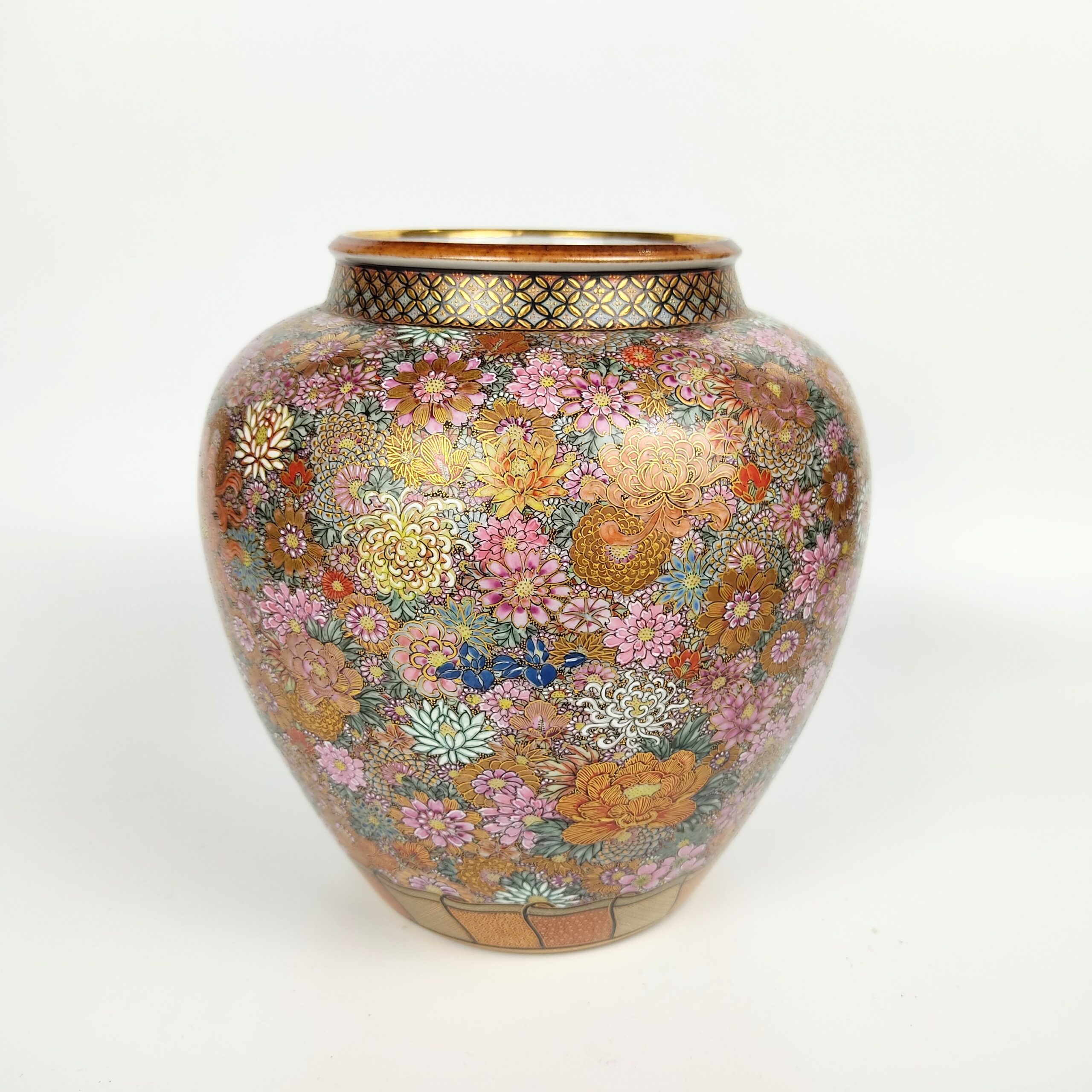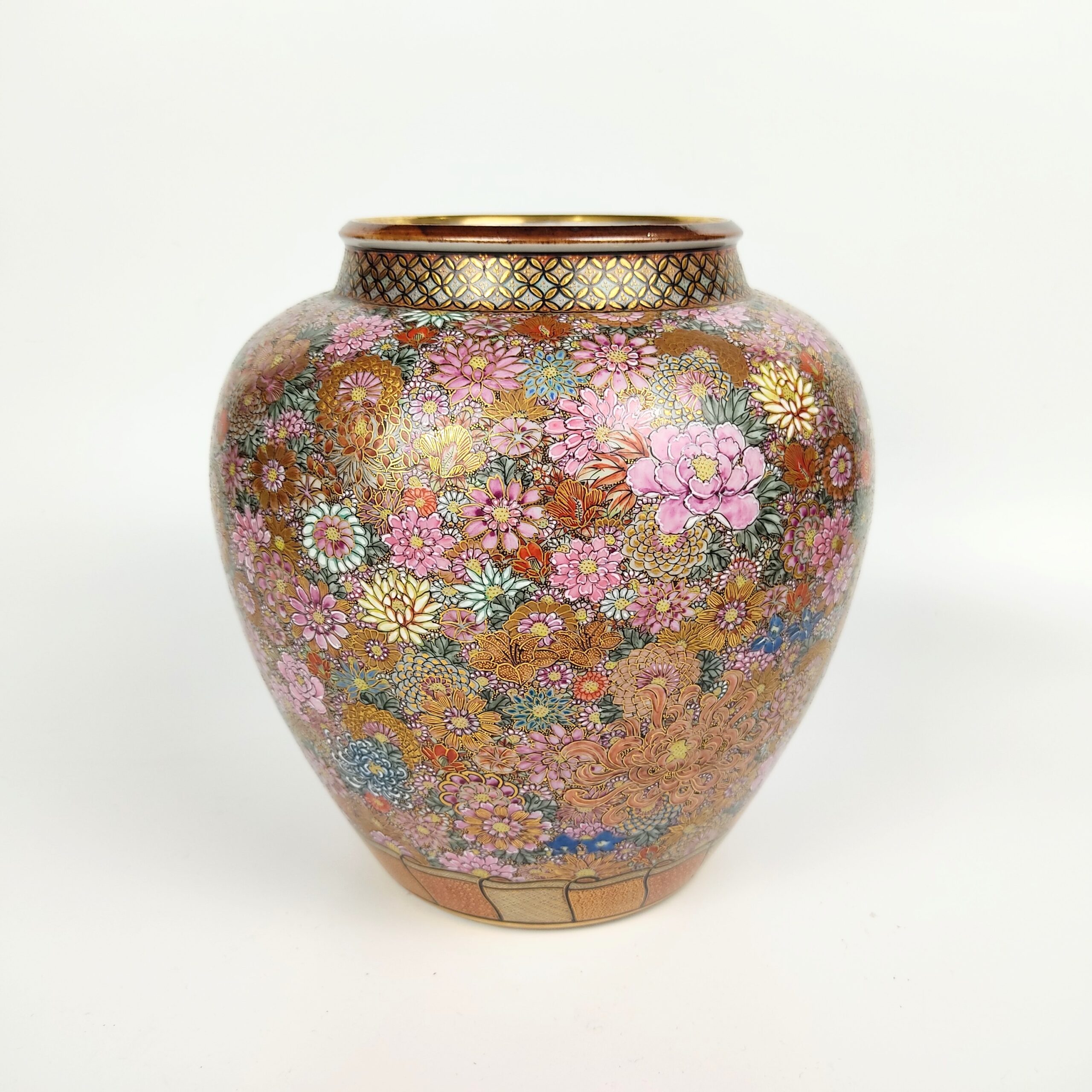 japanese antique Kutani ware vase with design of flowers By Eizan