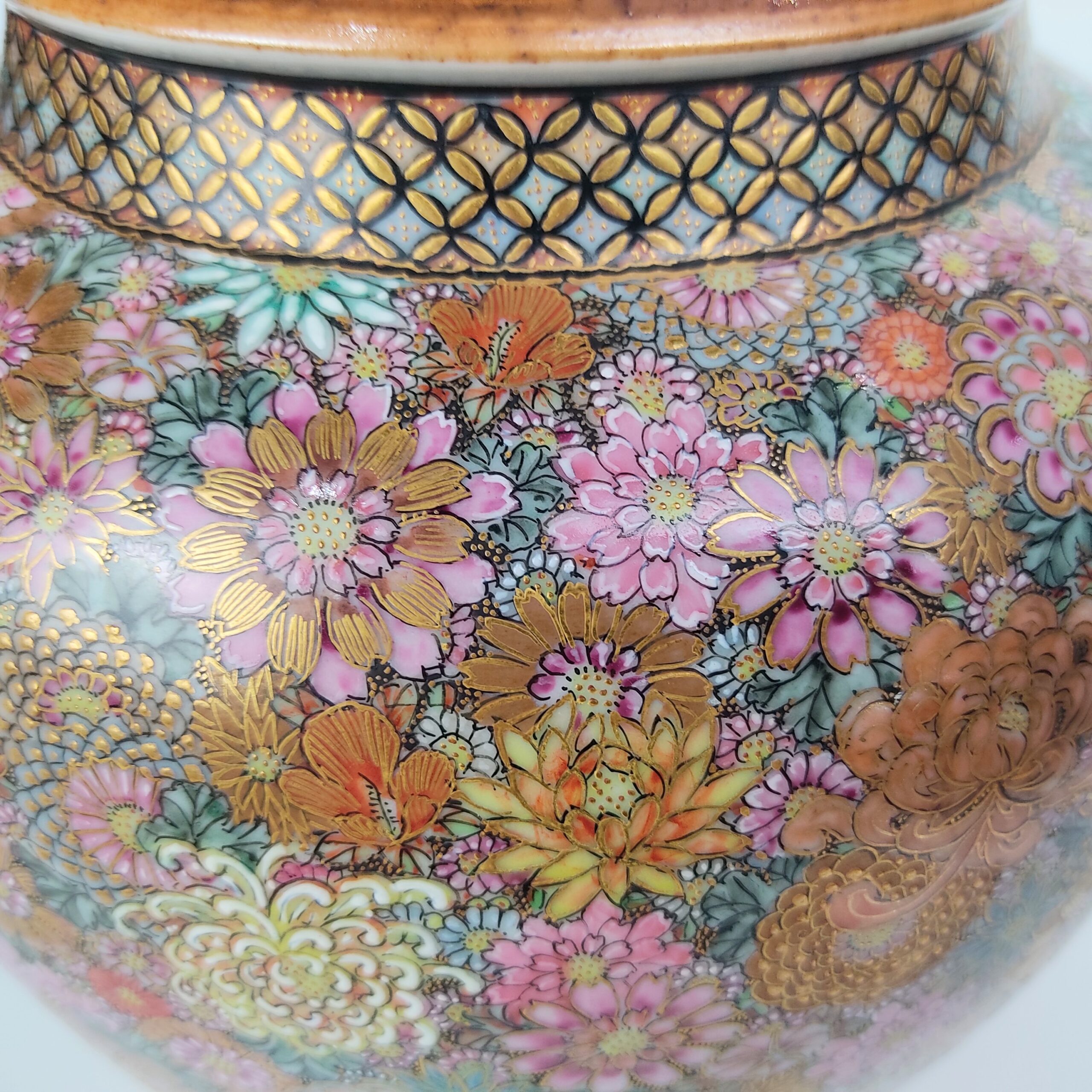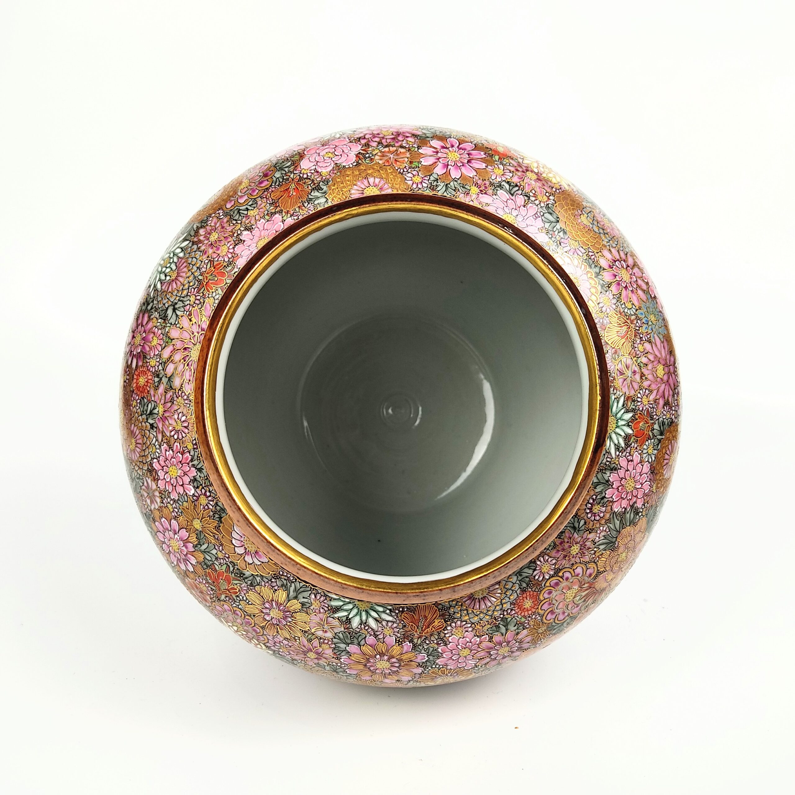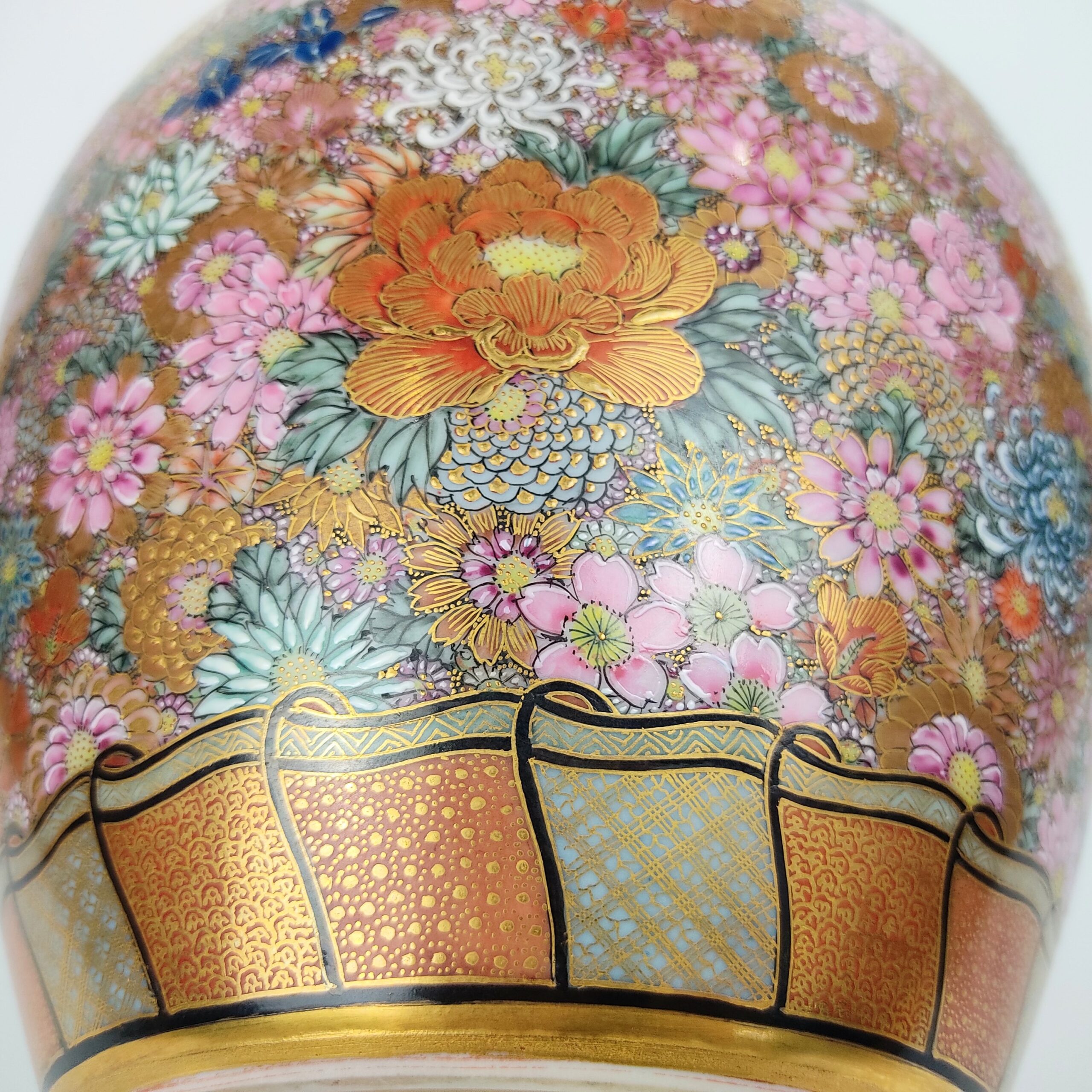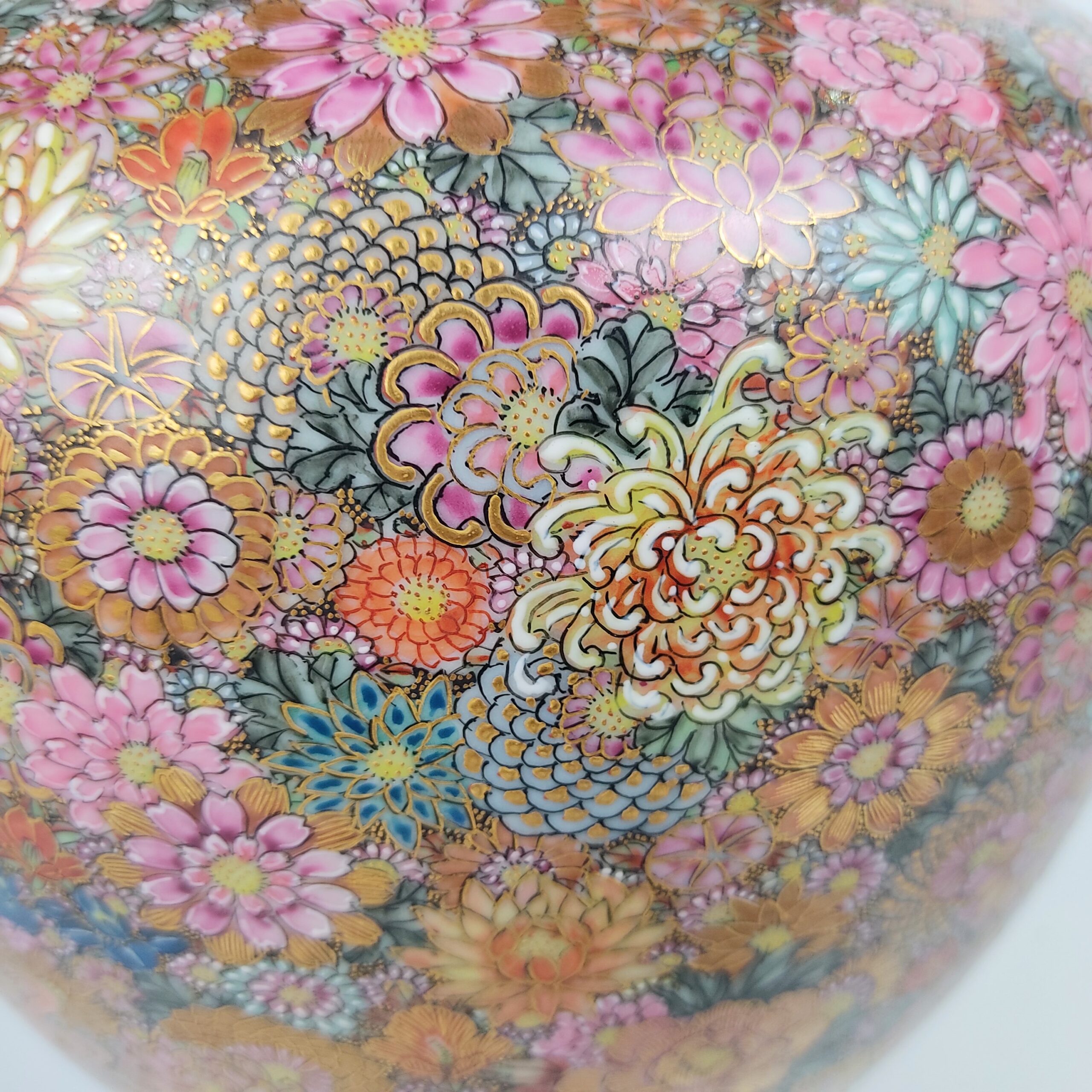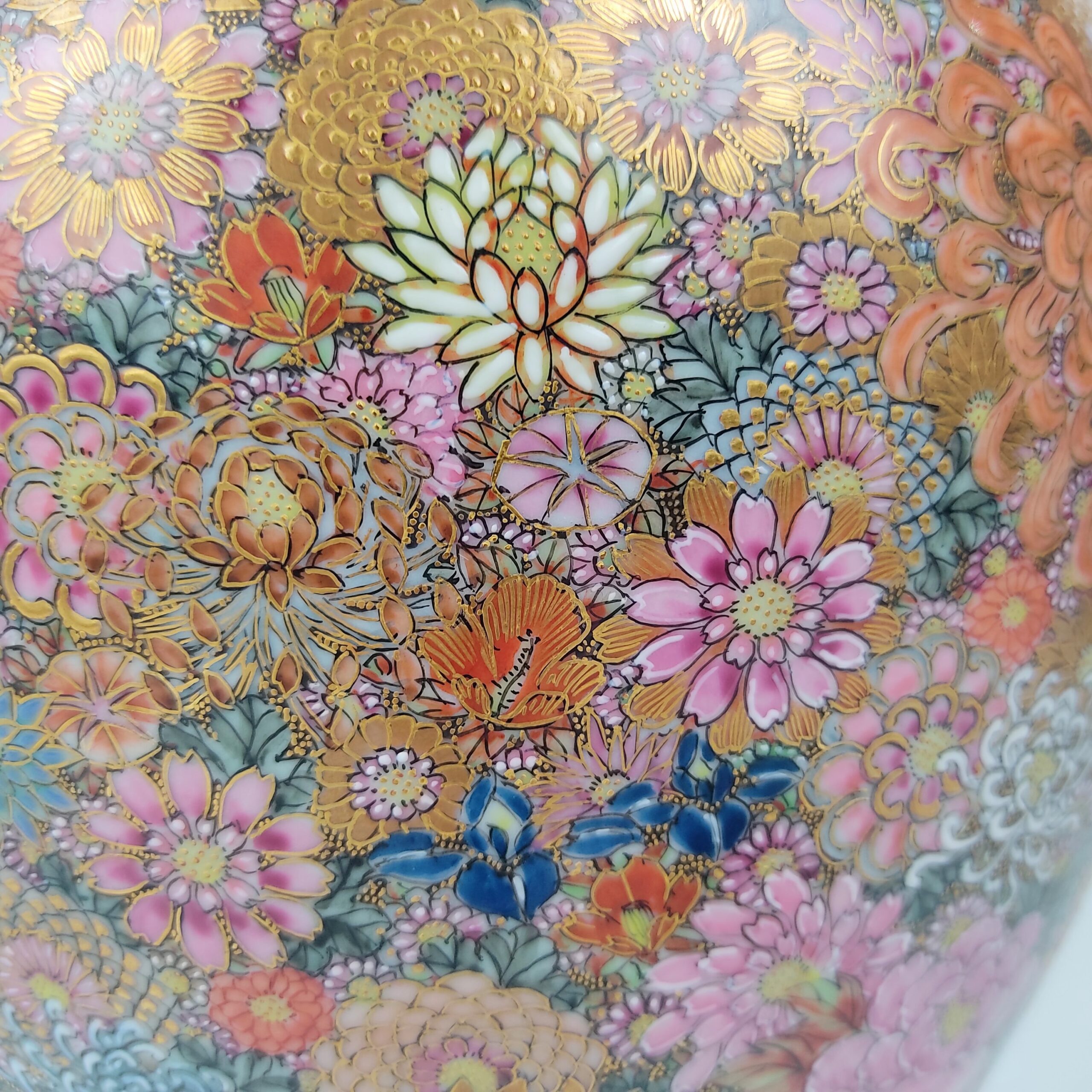 japanese antique Kutani ware vase with design of flowers By Eizan