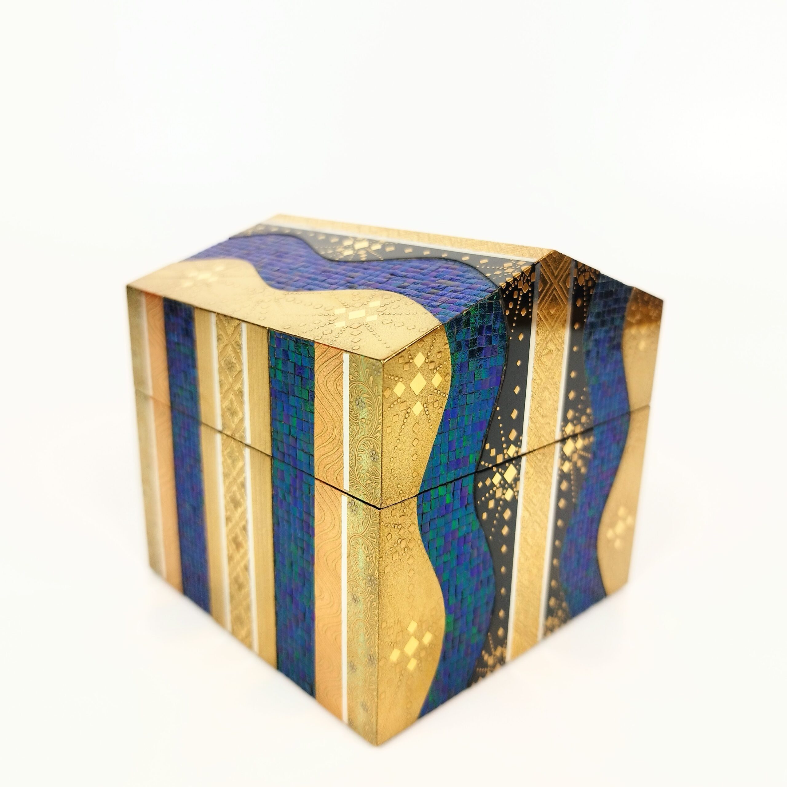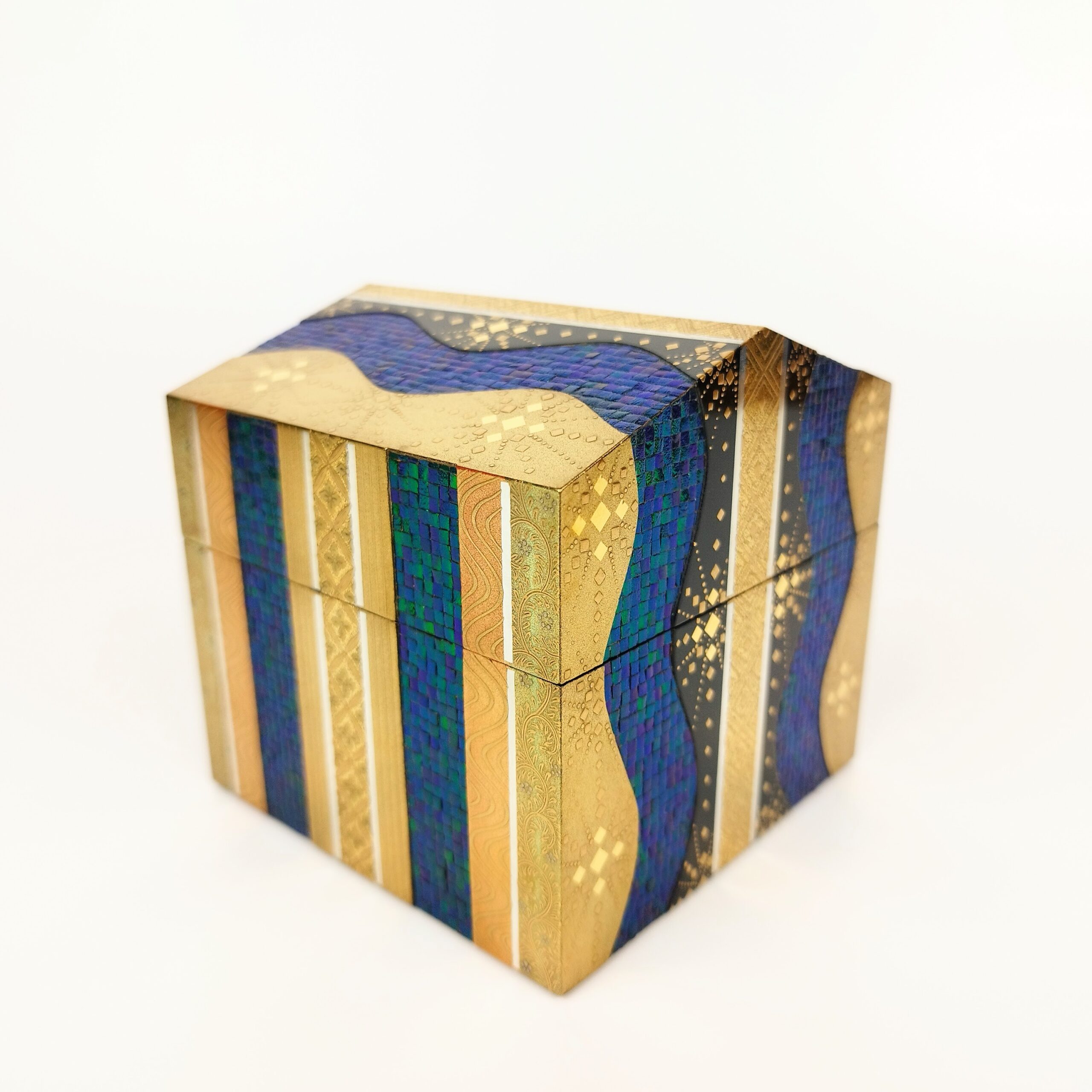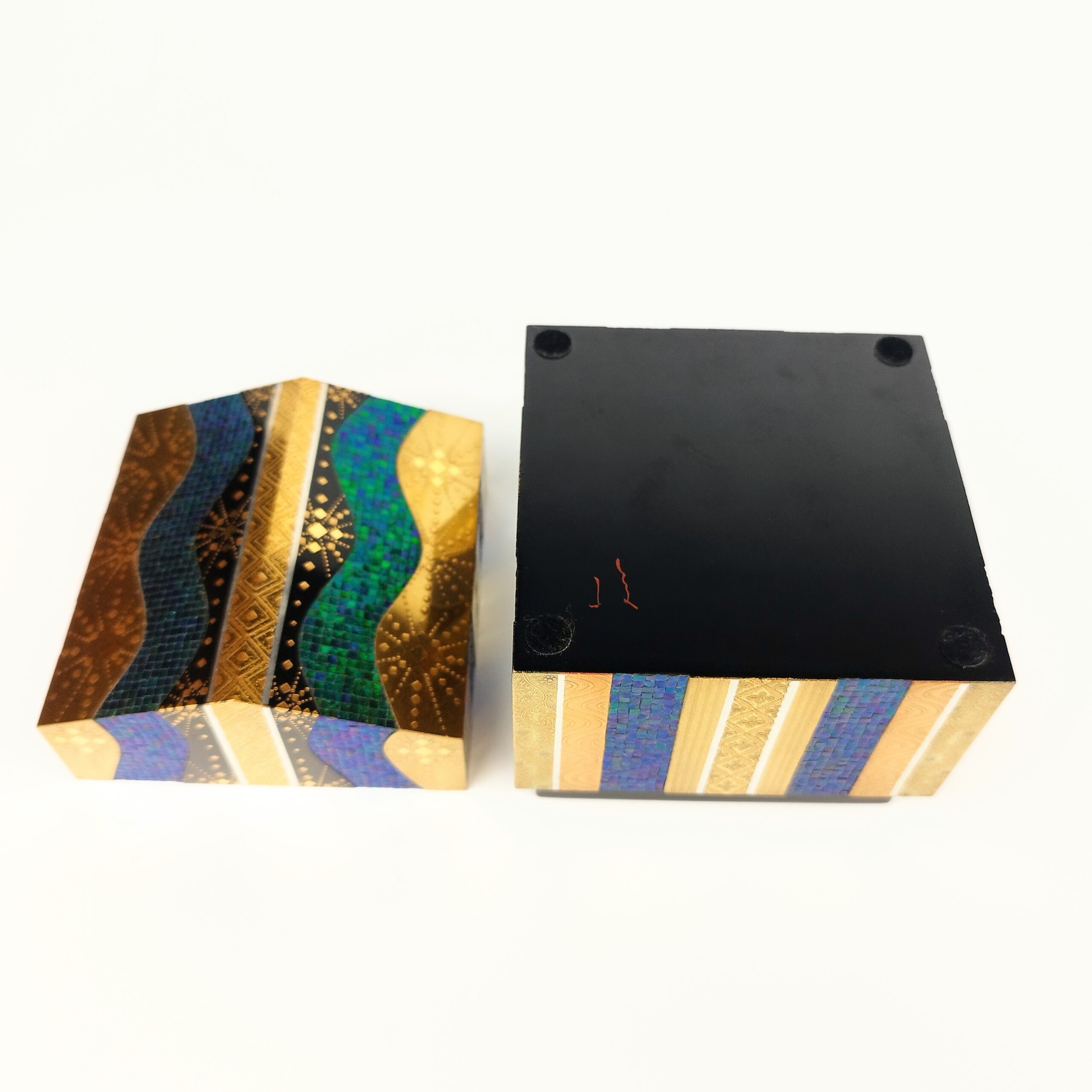 japanese antique Lacquer box with gold and jewel beatle wings by Shunsho Hattori