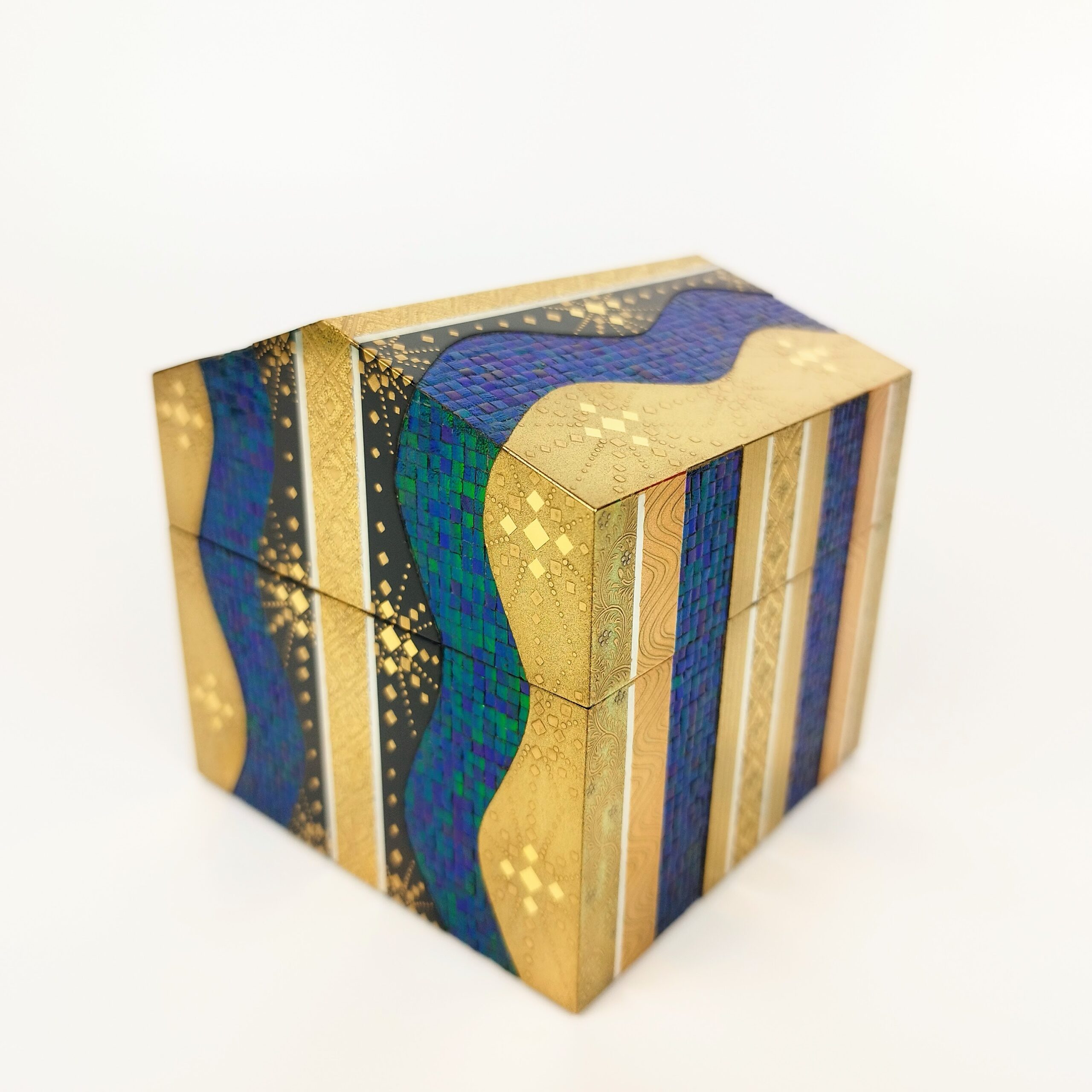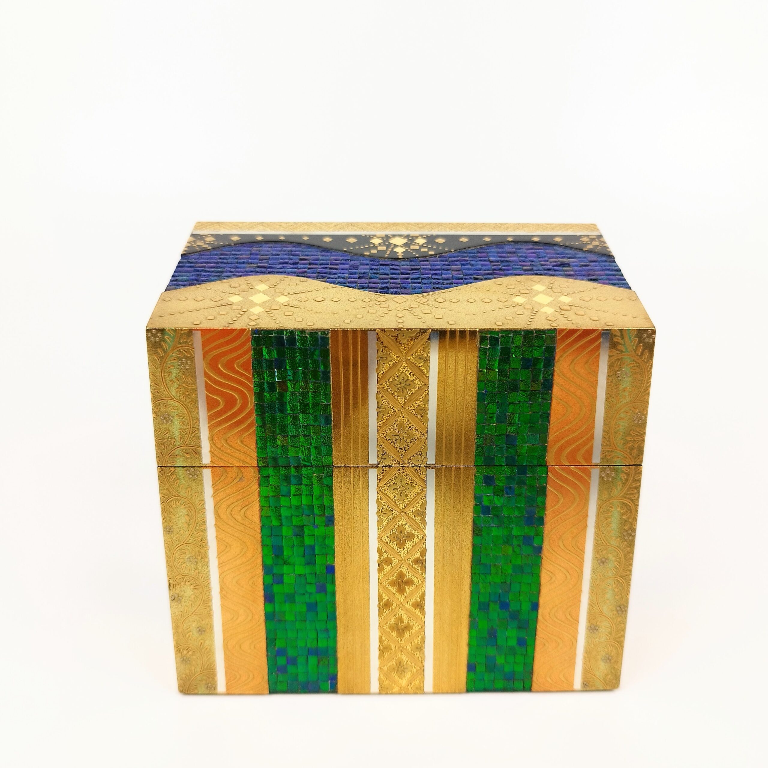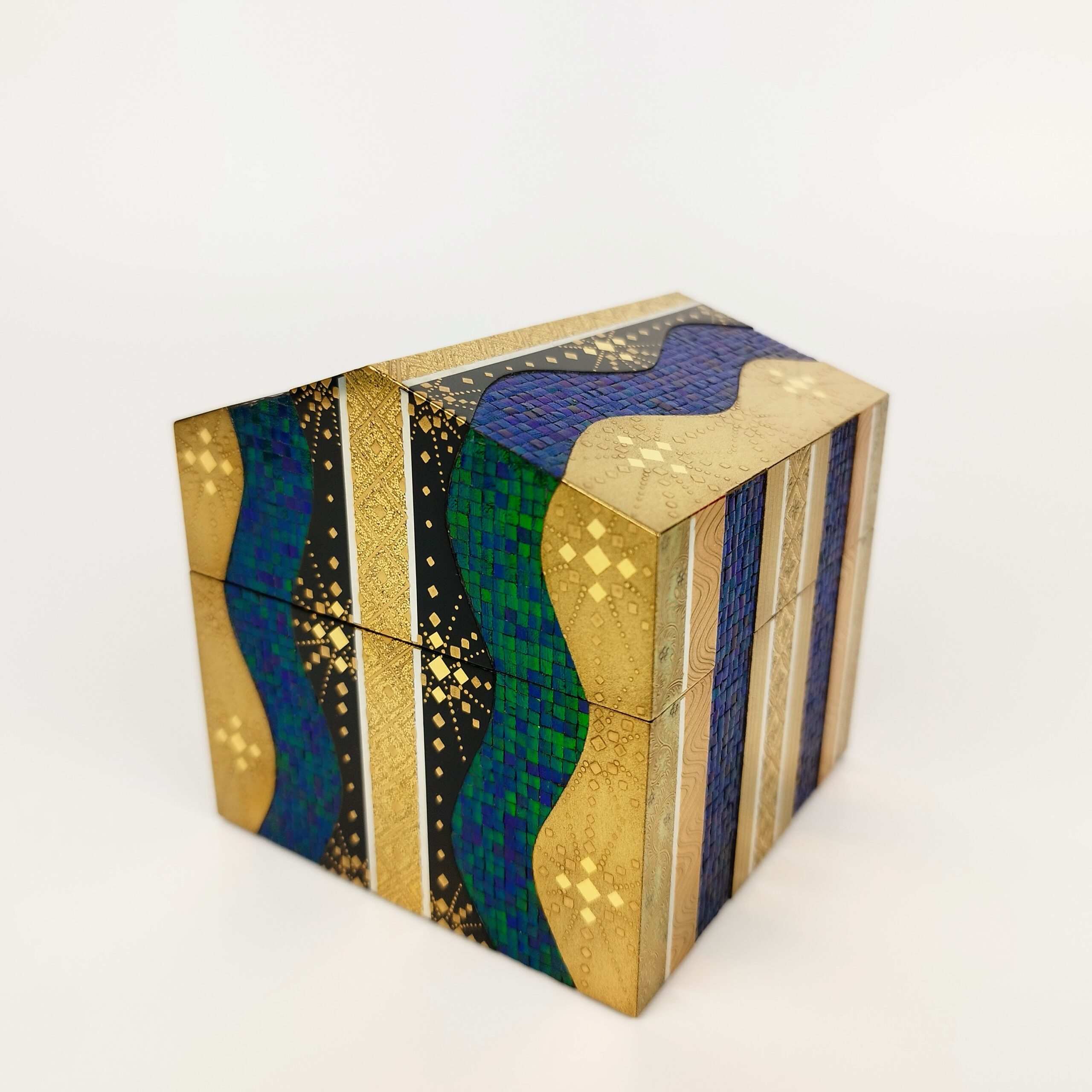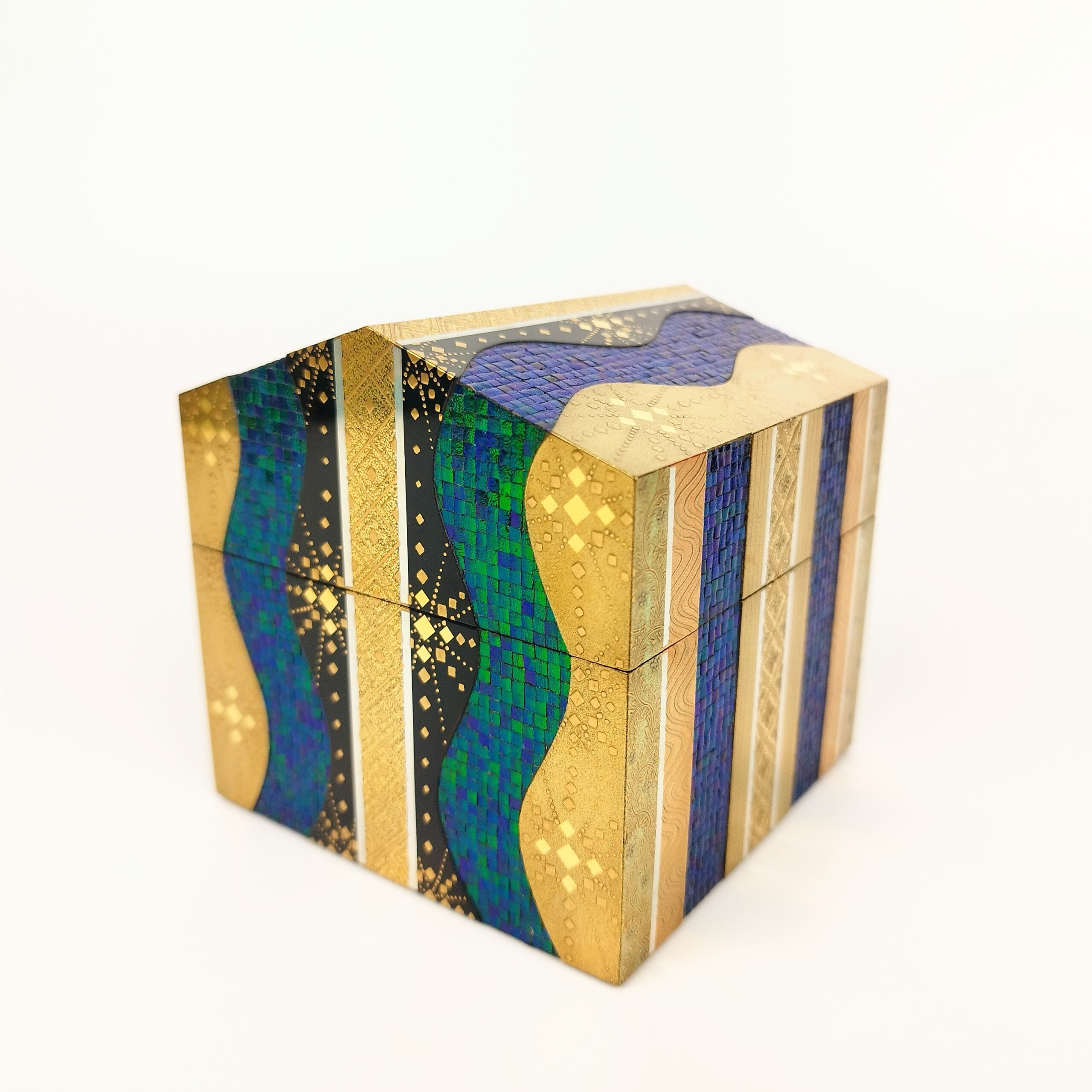 japanese antique Lacquer box with gold and jewel beatle wings by Shunsho Hattori