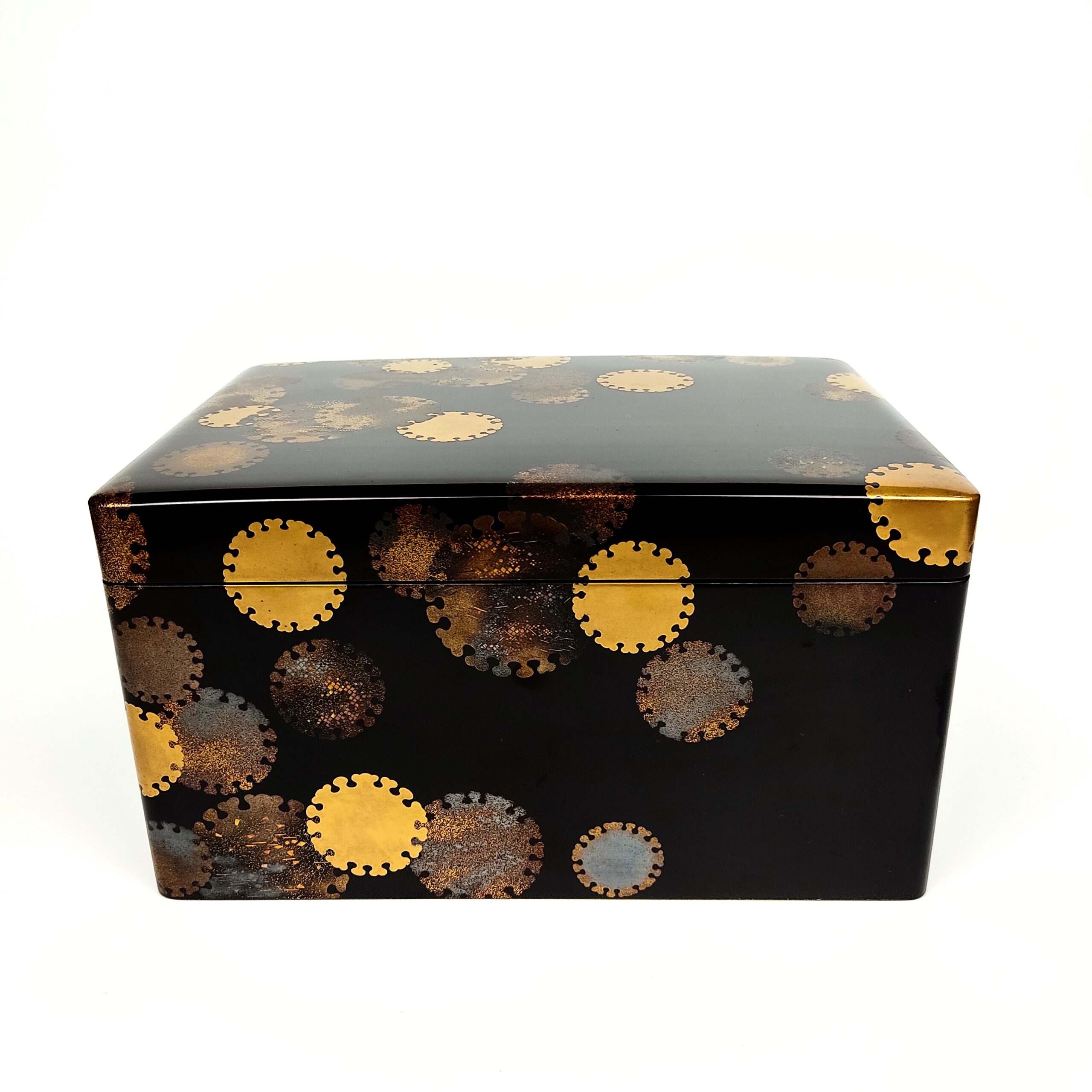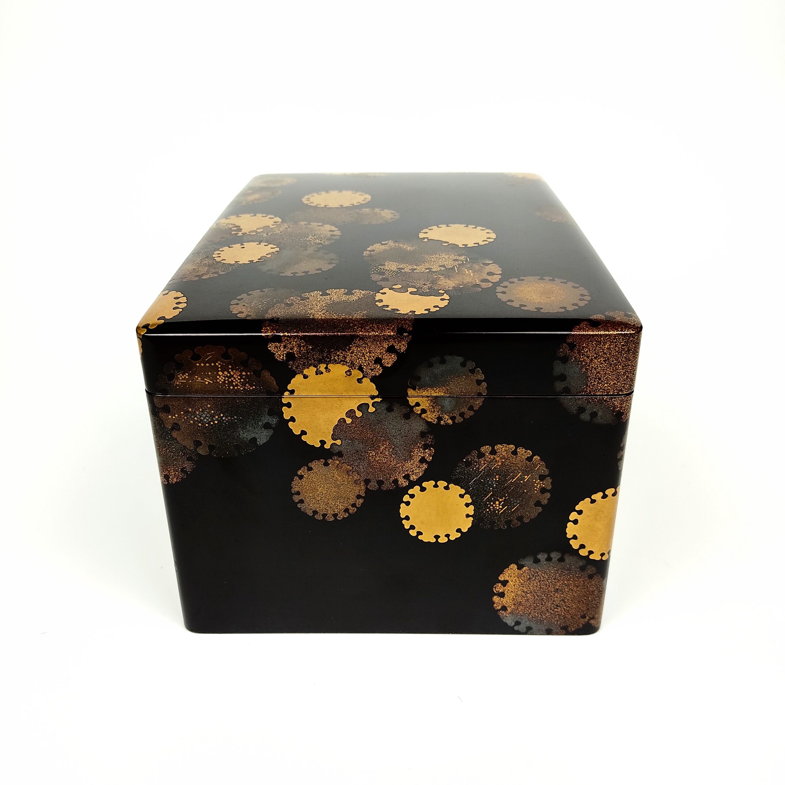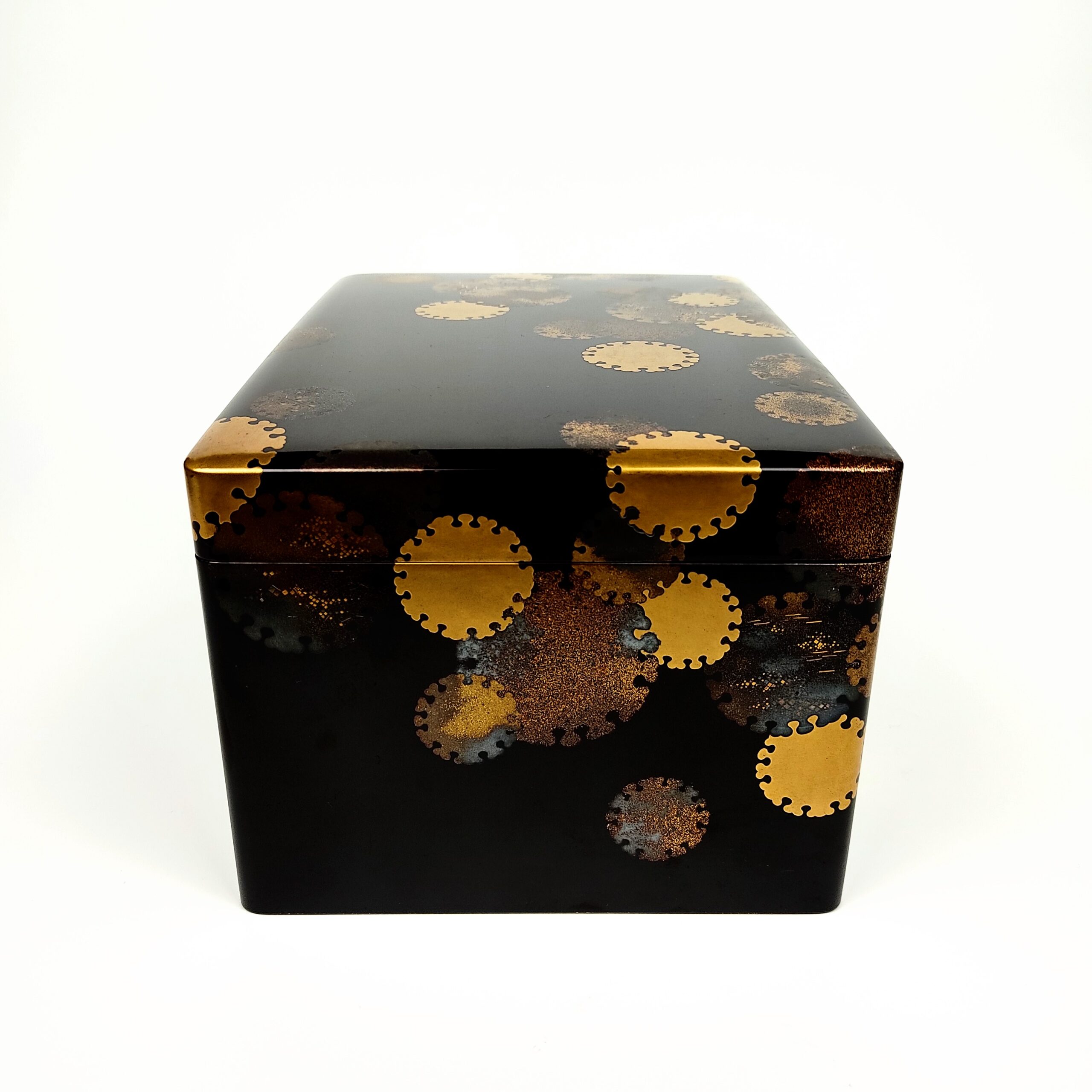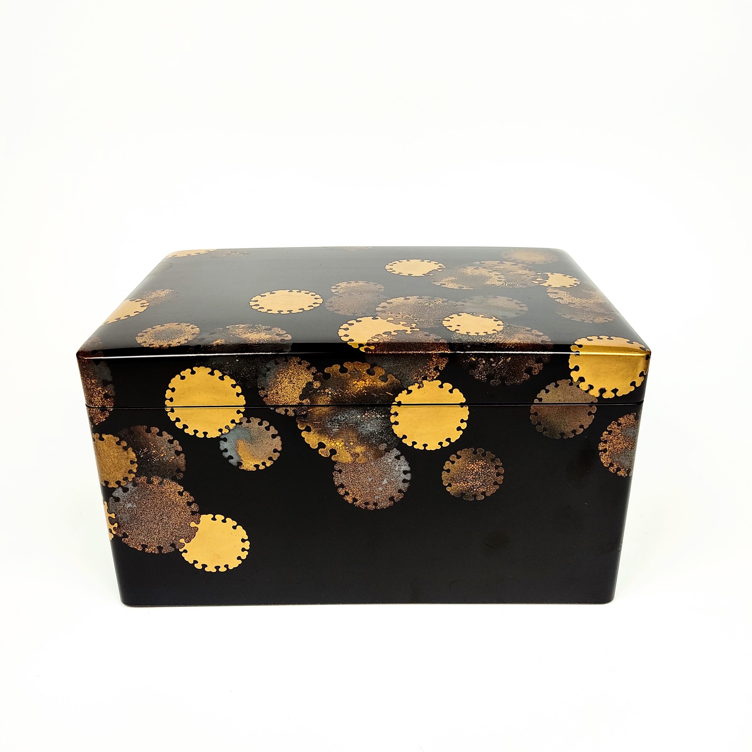 japanese antique Lacquer box with gold and silver lacquer decoration of snow design