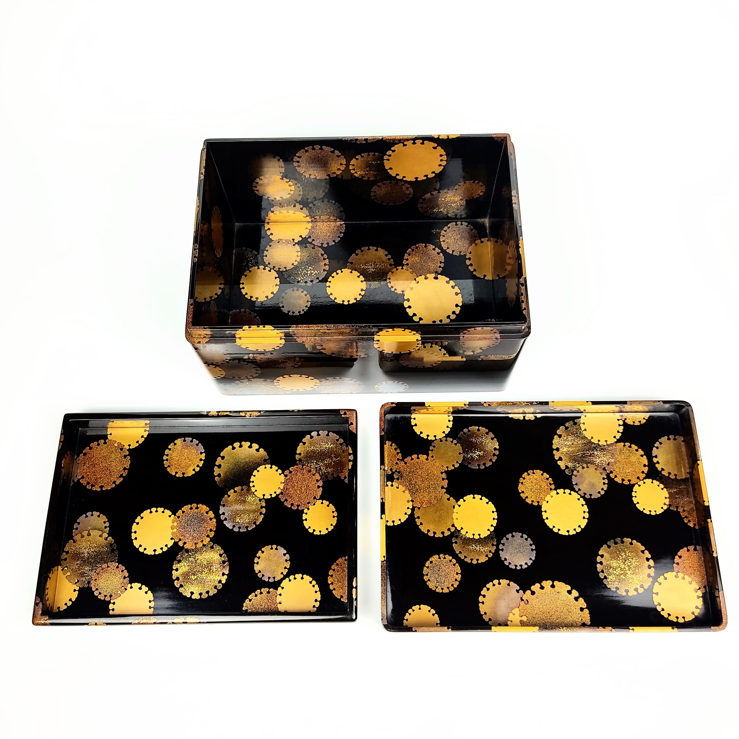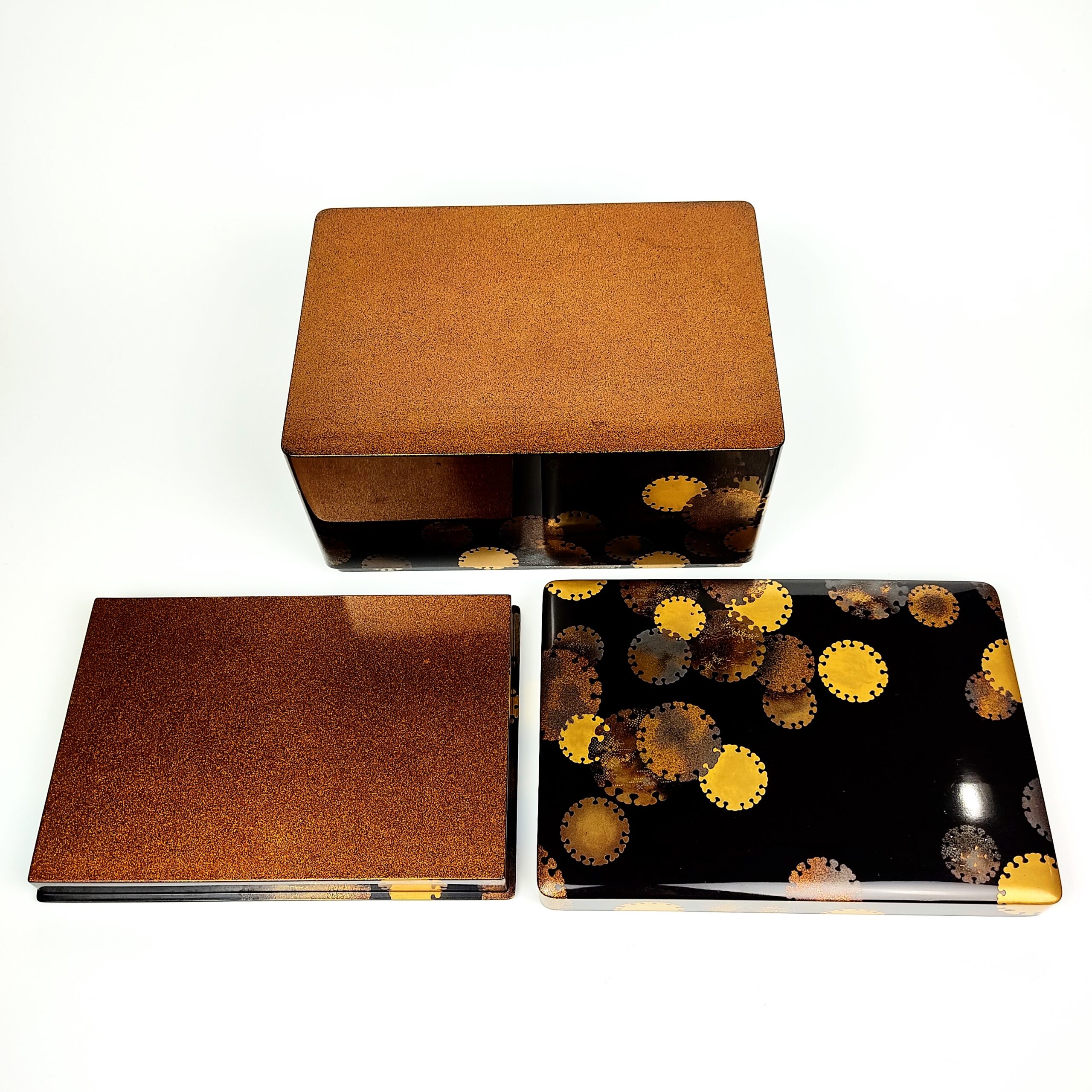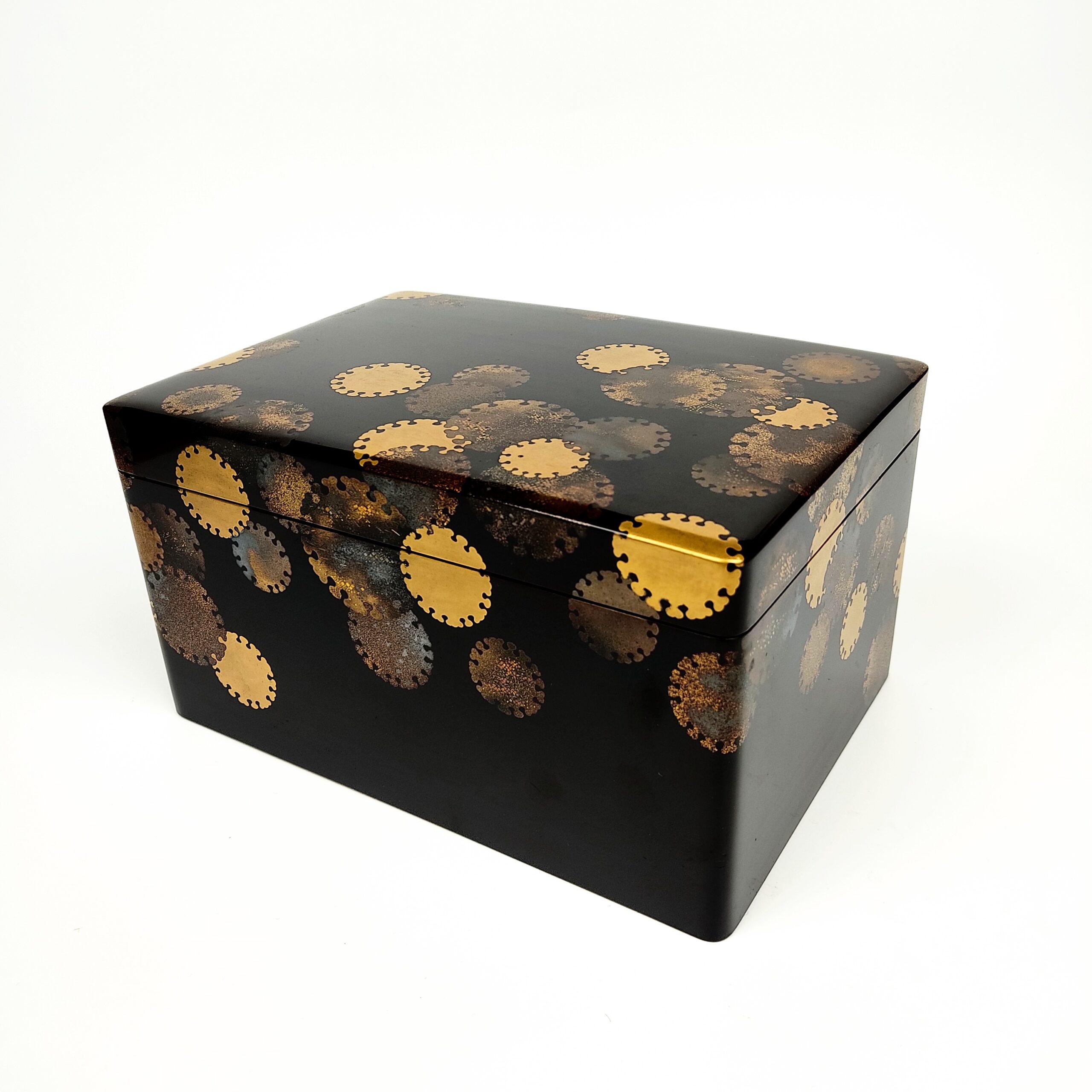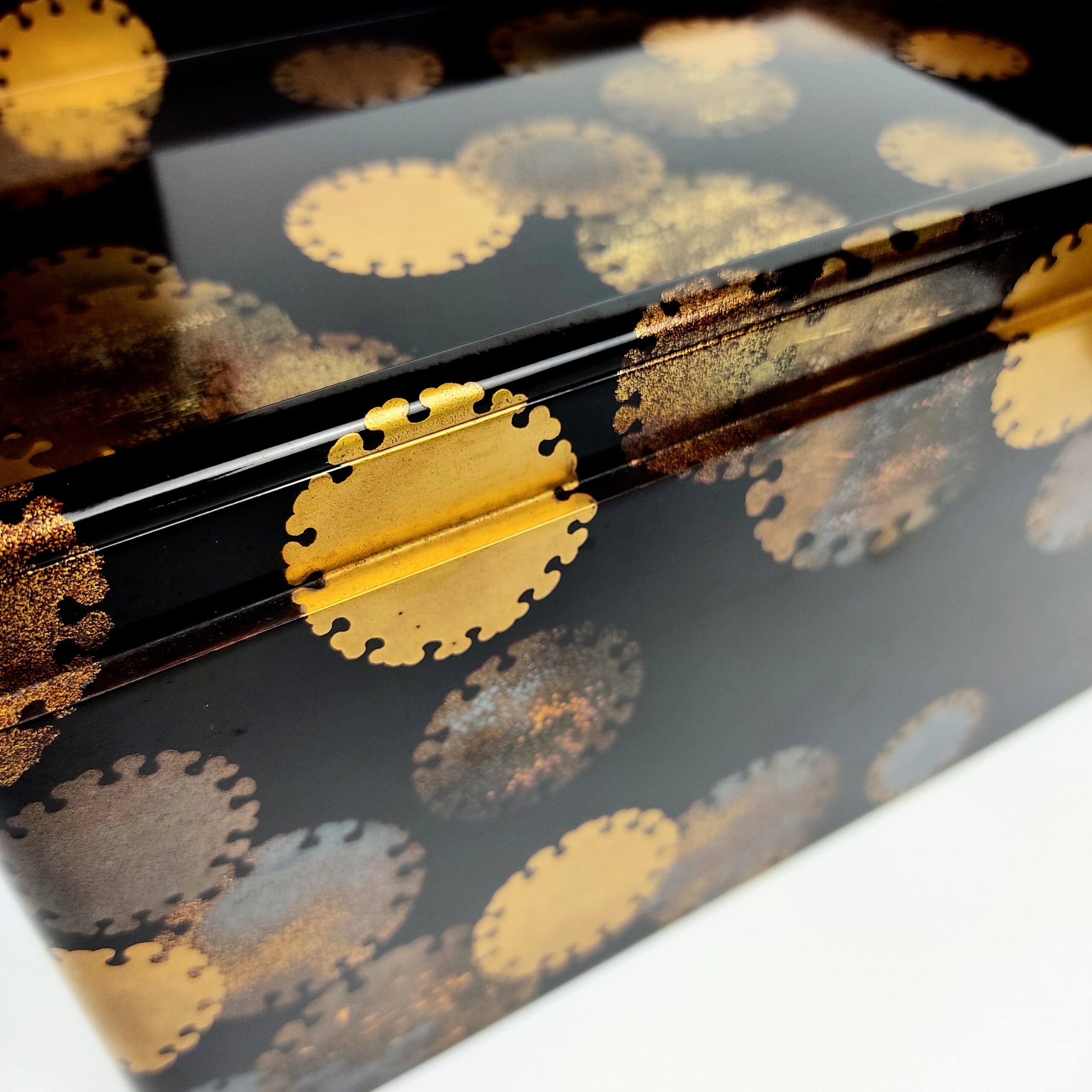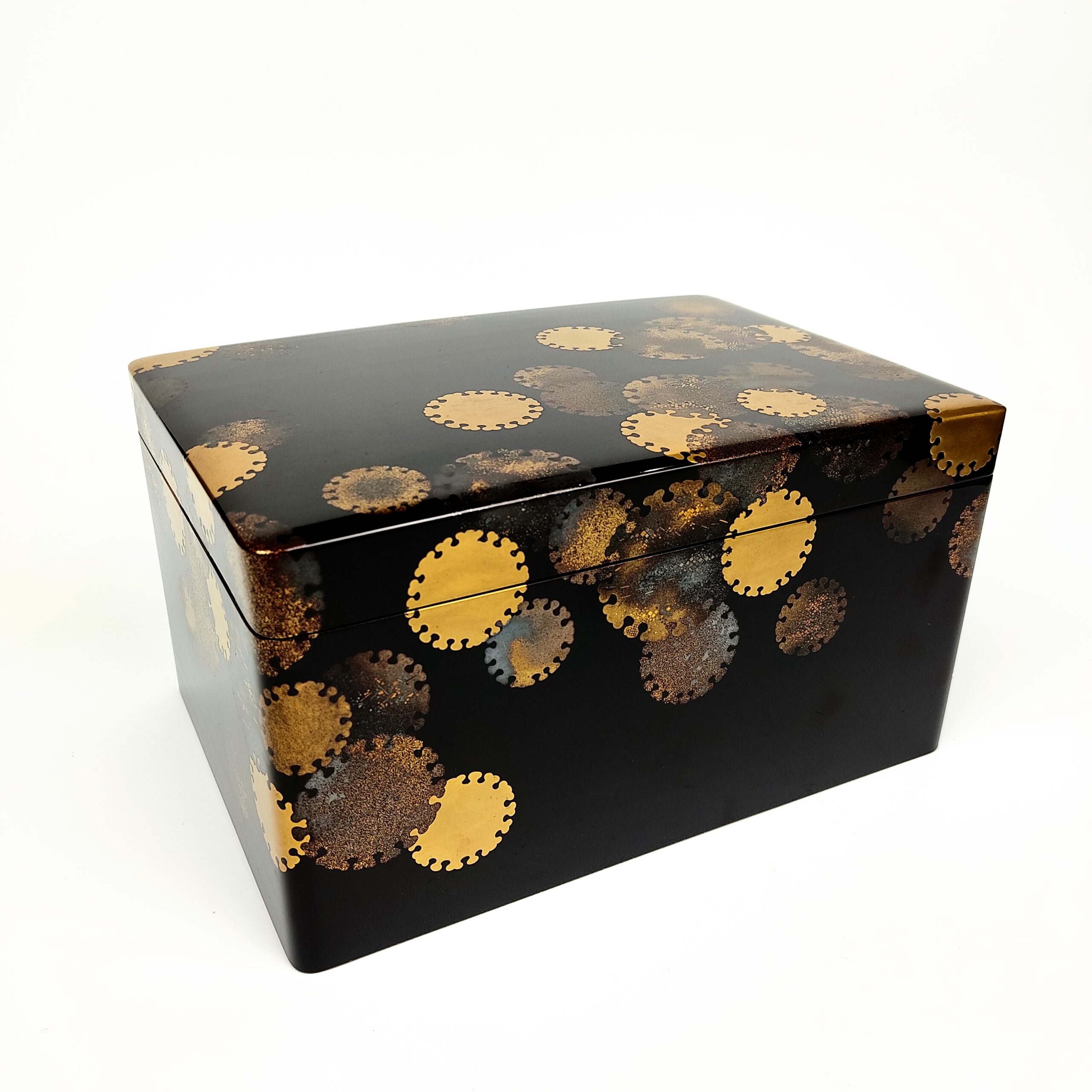 japanese antique Lacquer box with gold and silver lacquer decoration of snow design