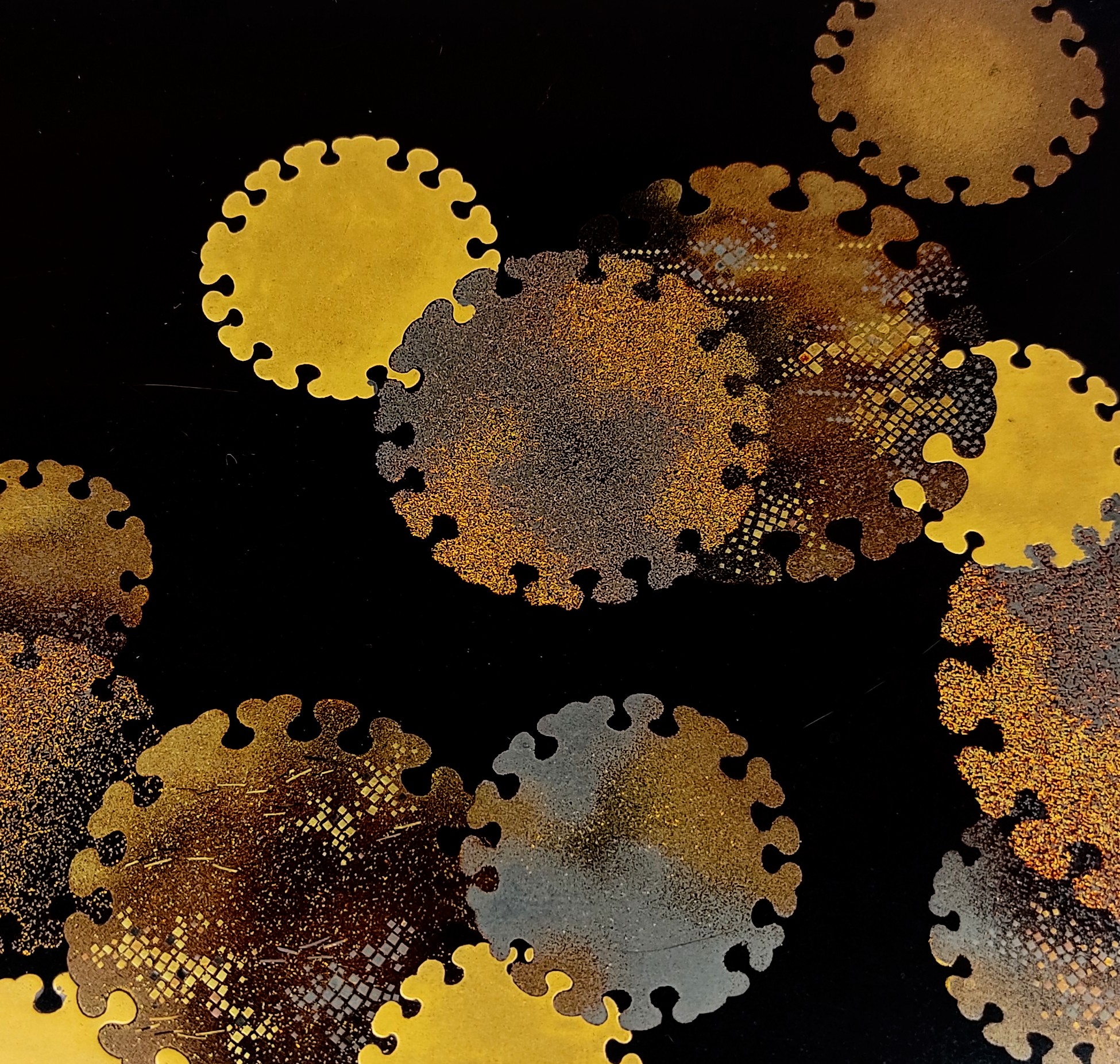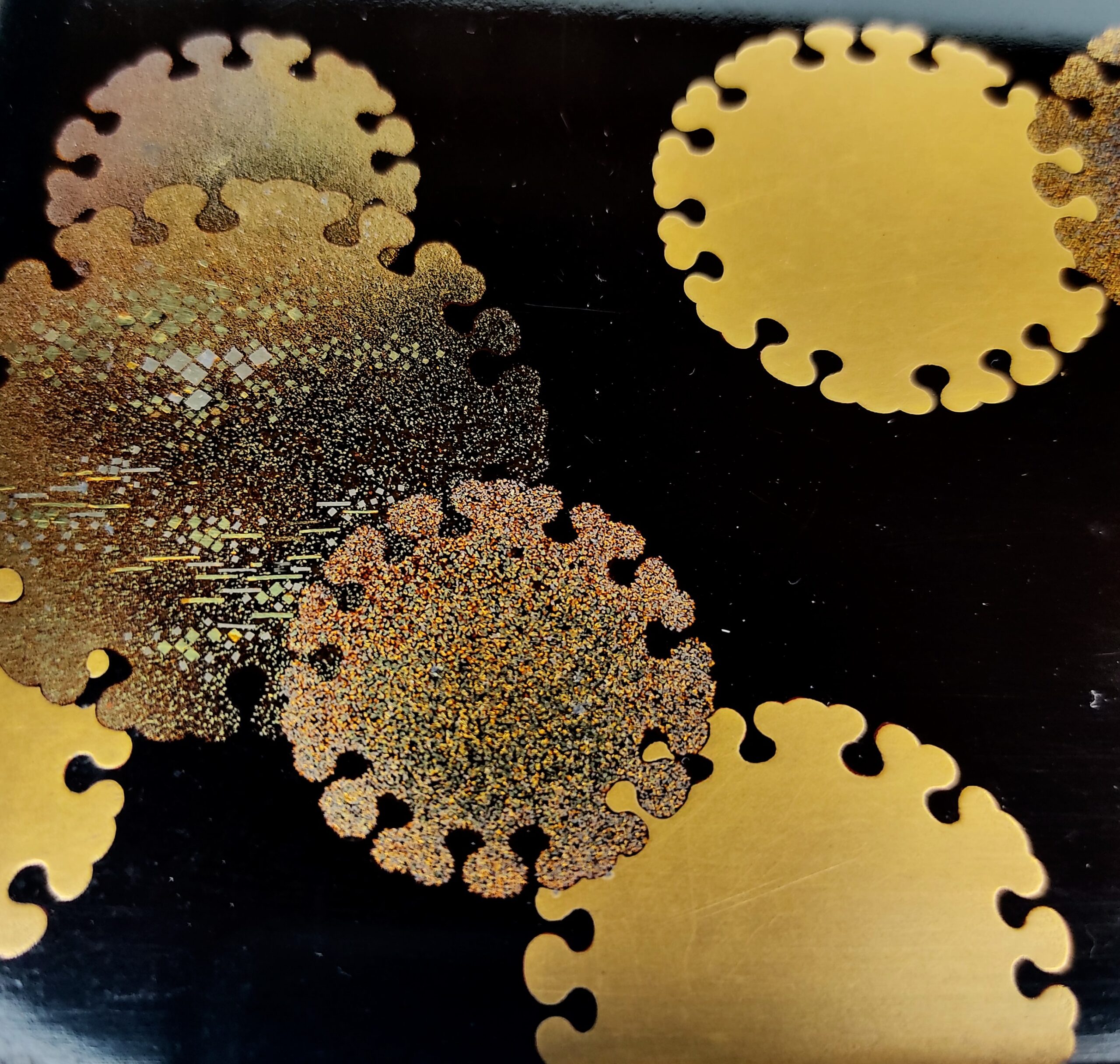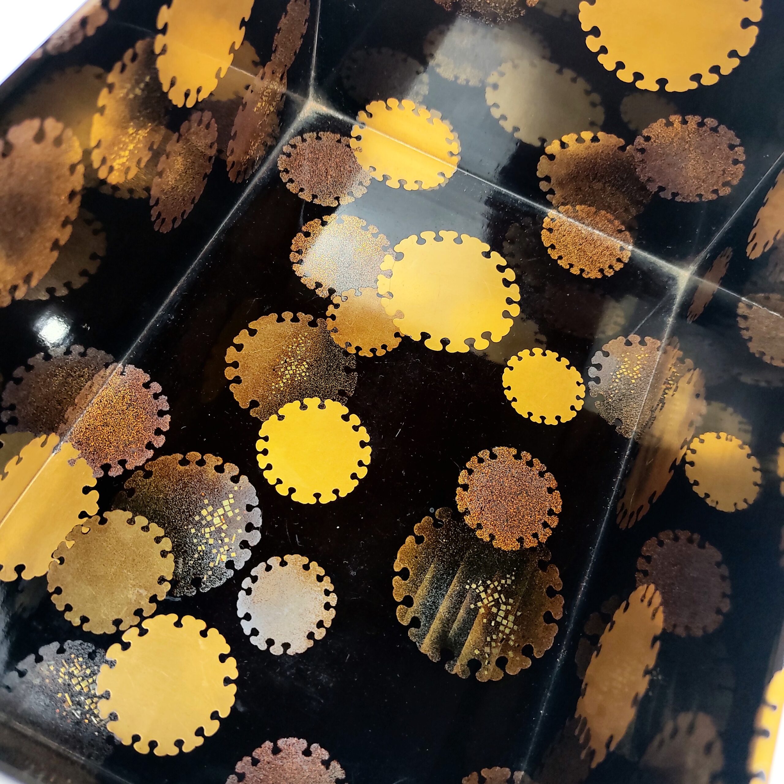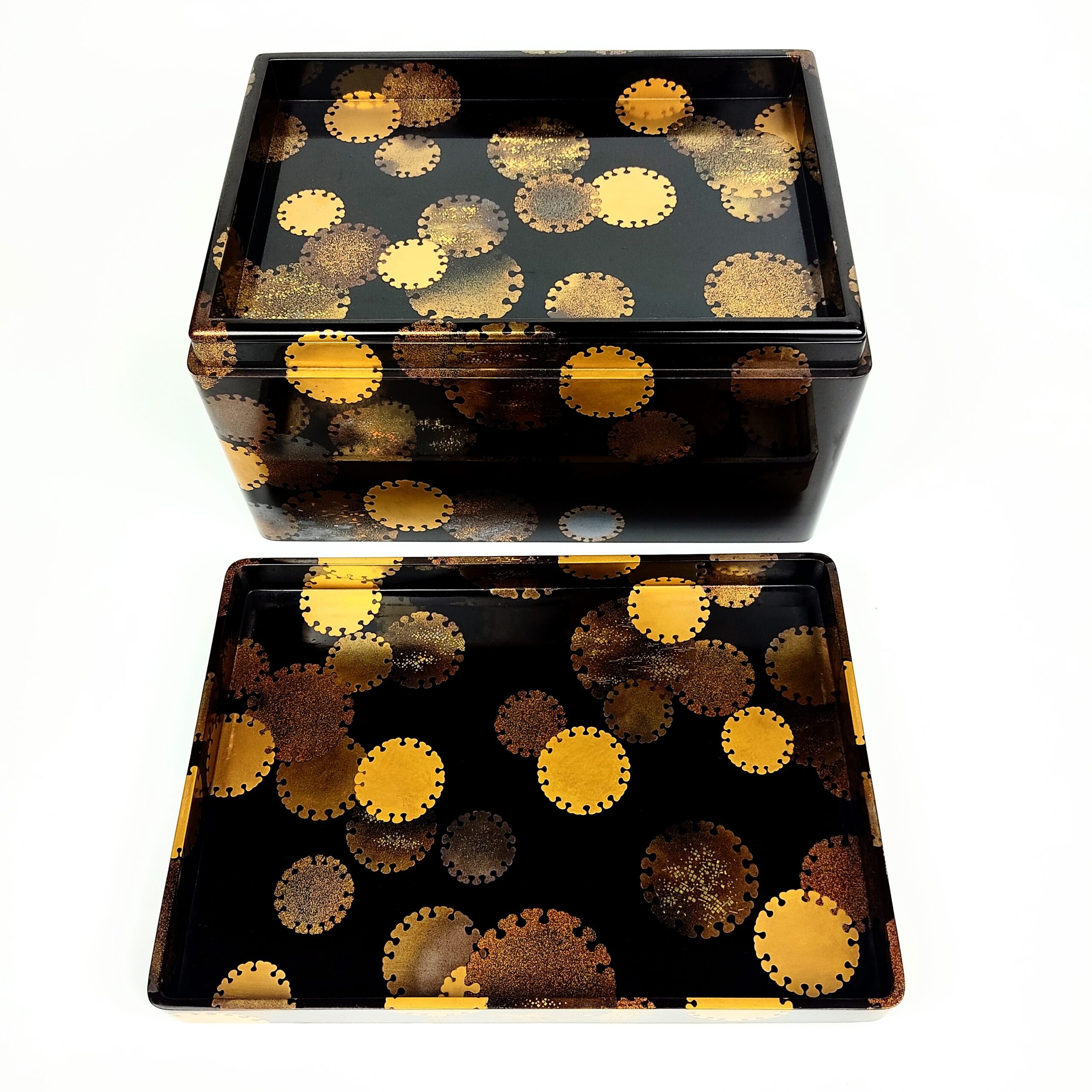 japanese antique Lacquer box with gold and silver lacquer decoration of snow design