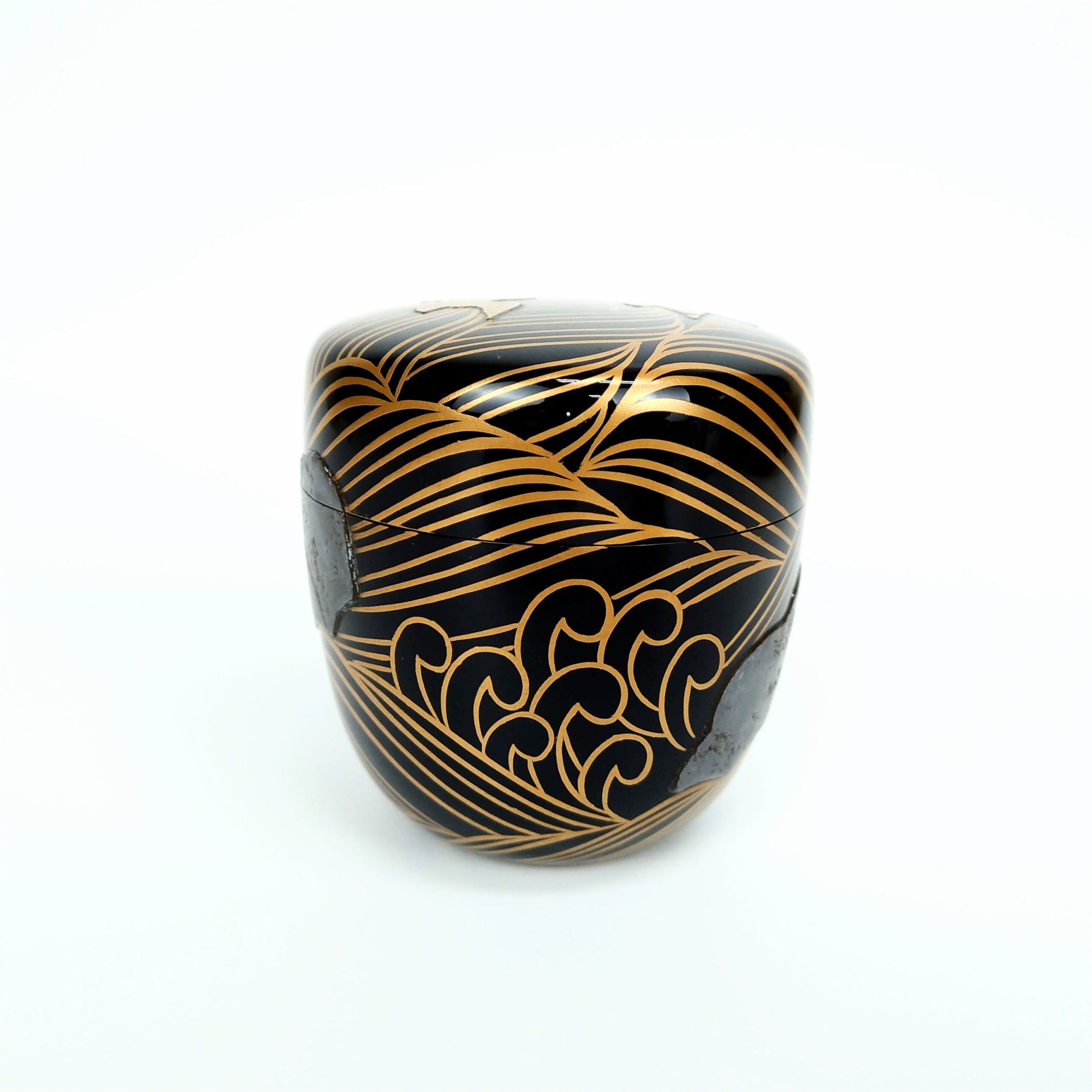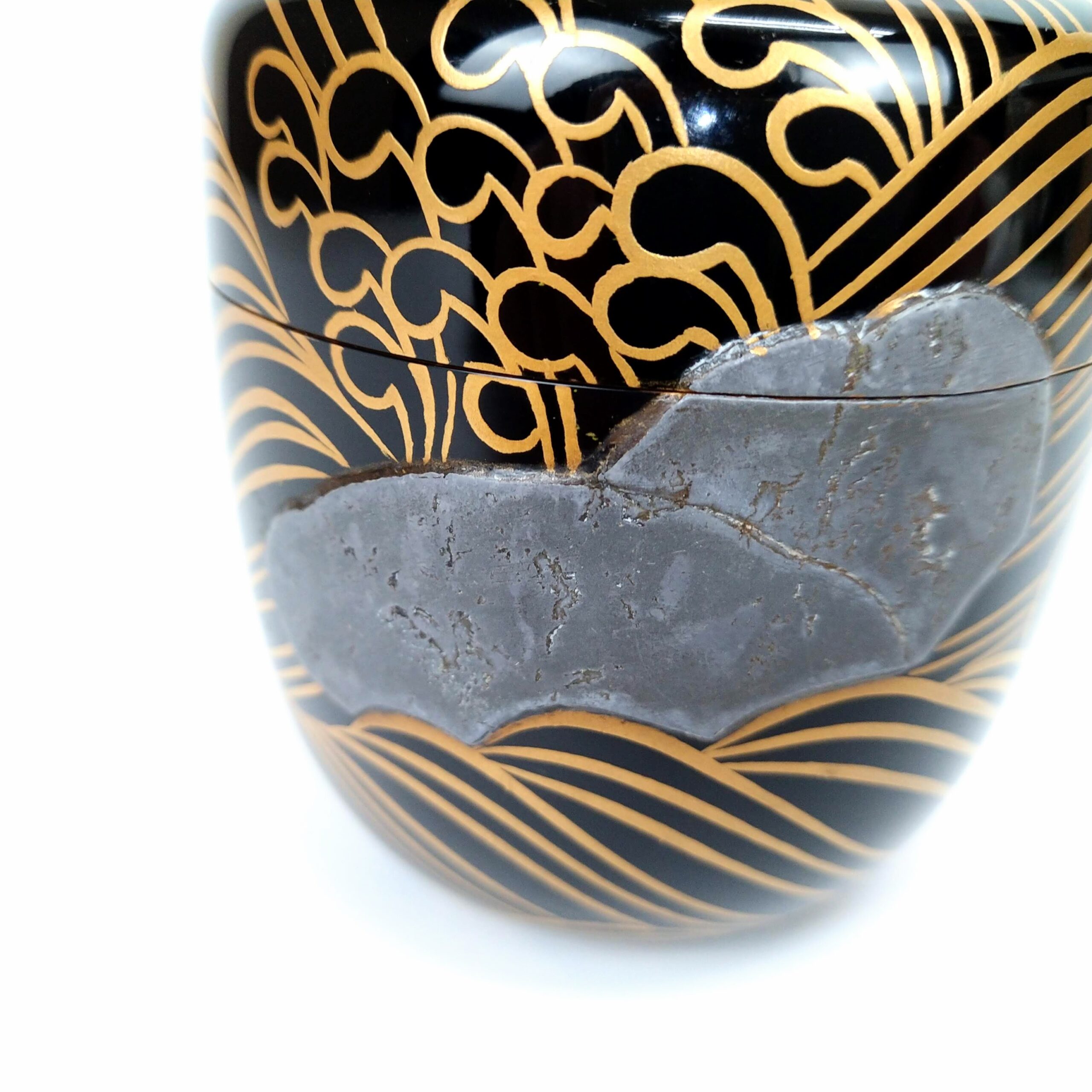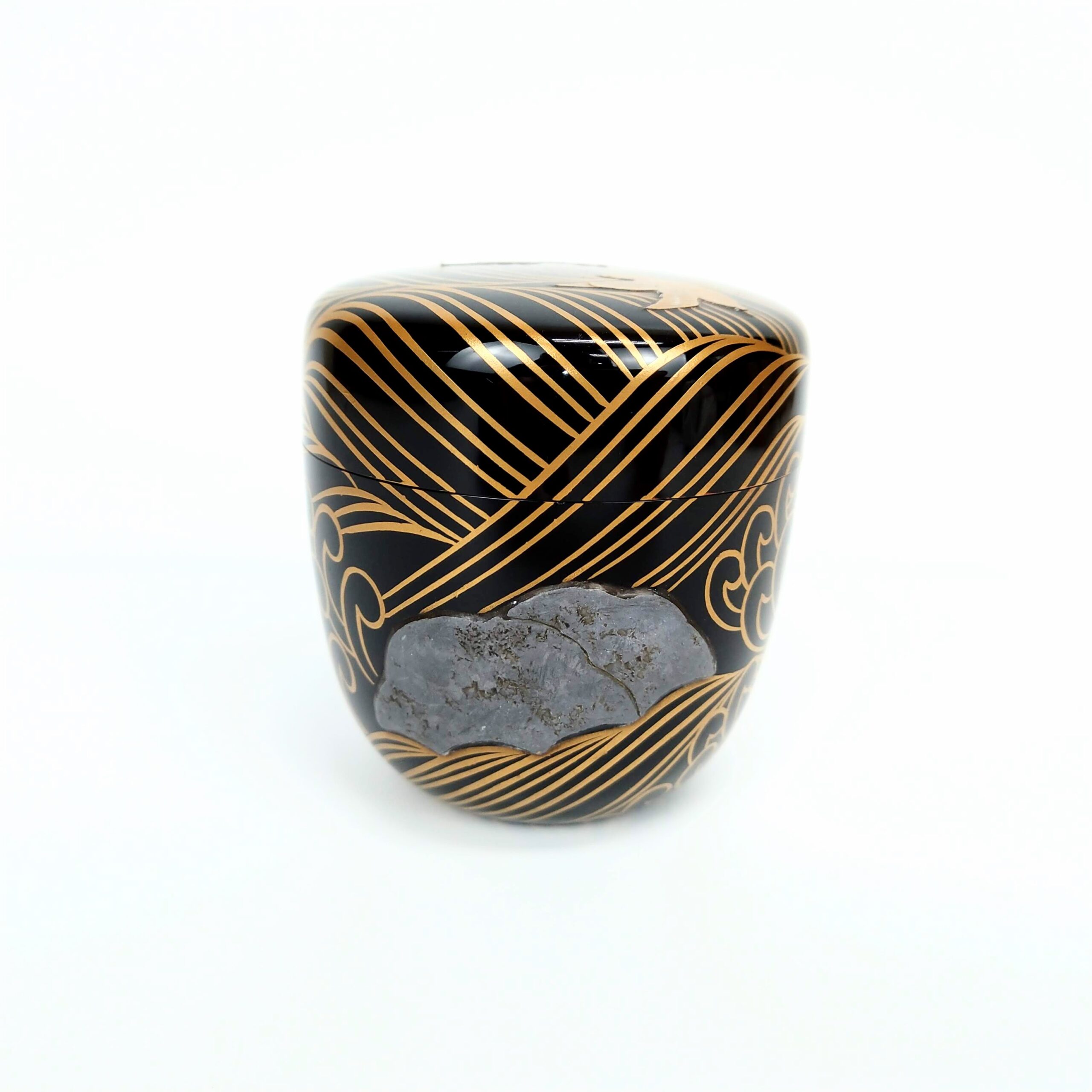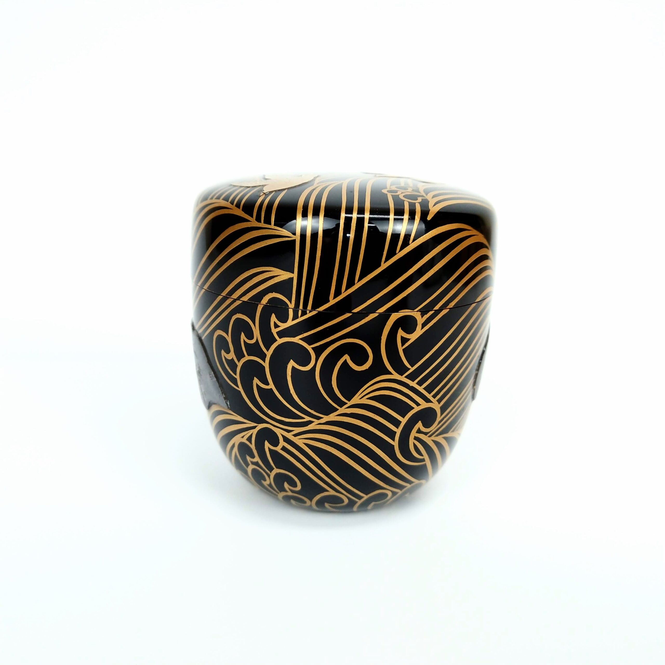 japanese antique Lacquer Tea Cabby With Design Of wave and plover be Hyouetsu Miki,Written By Houunsai