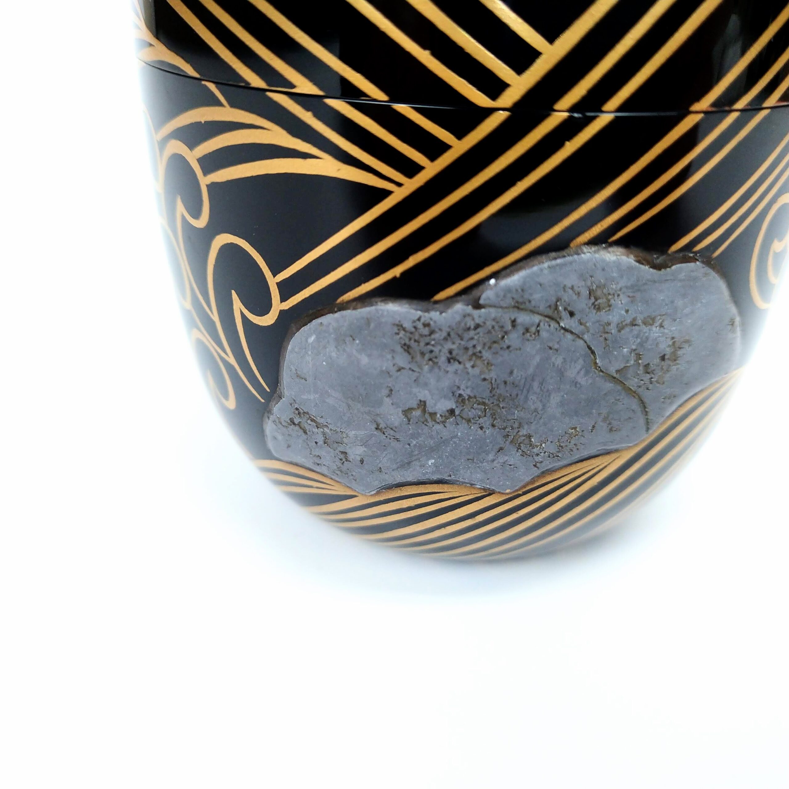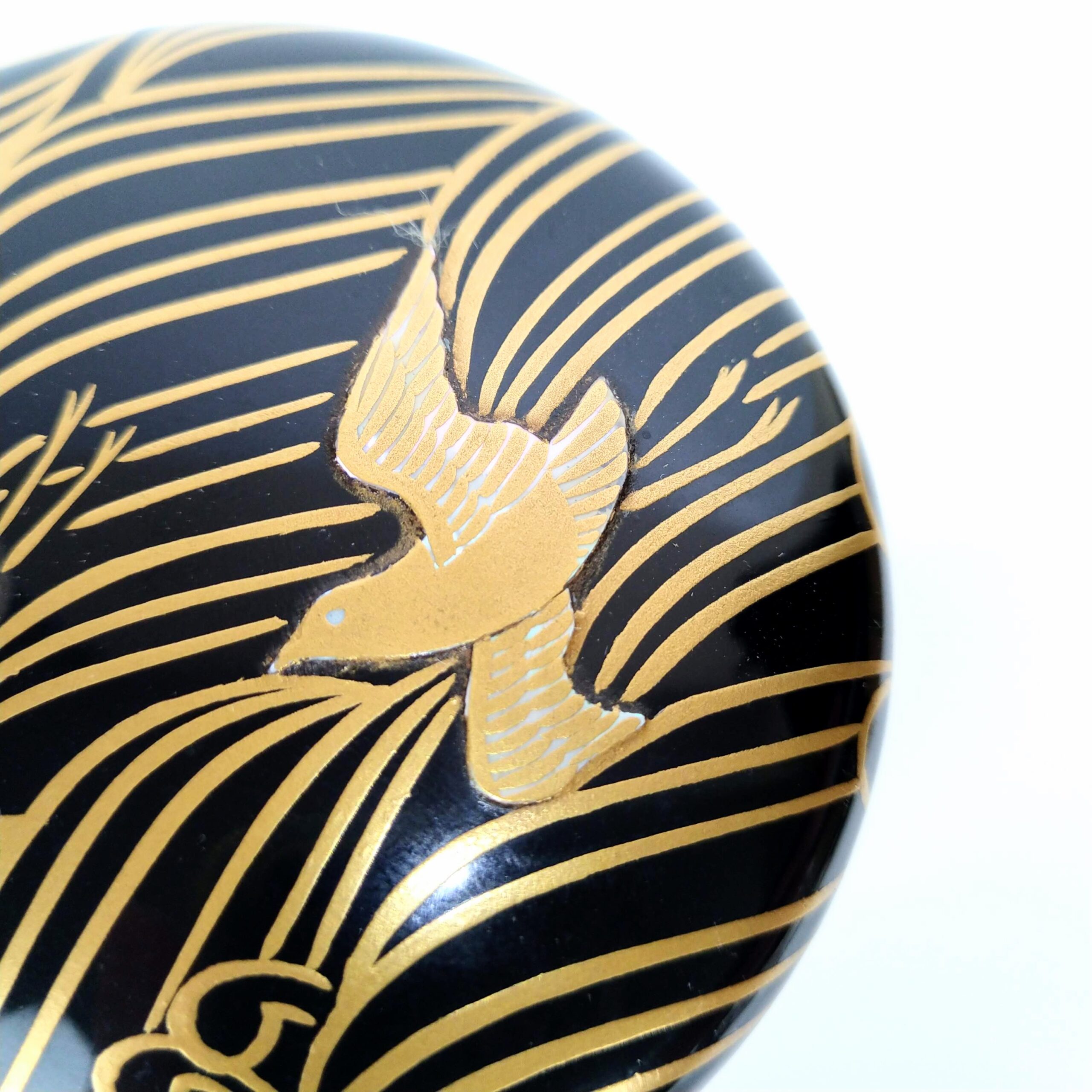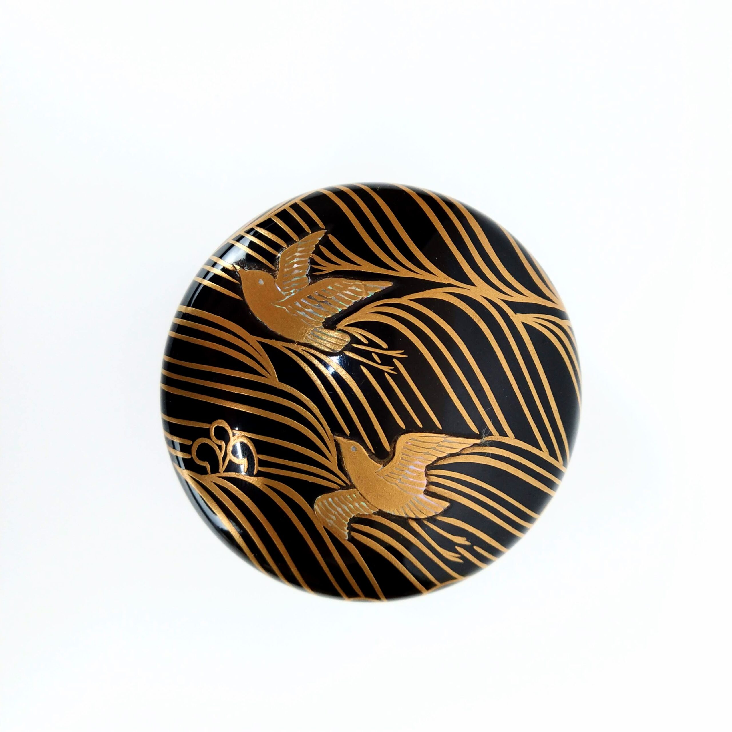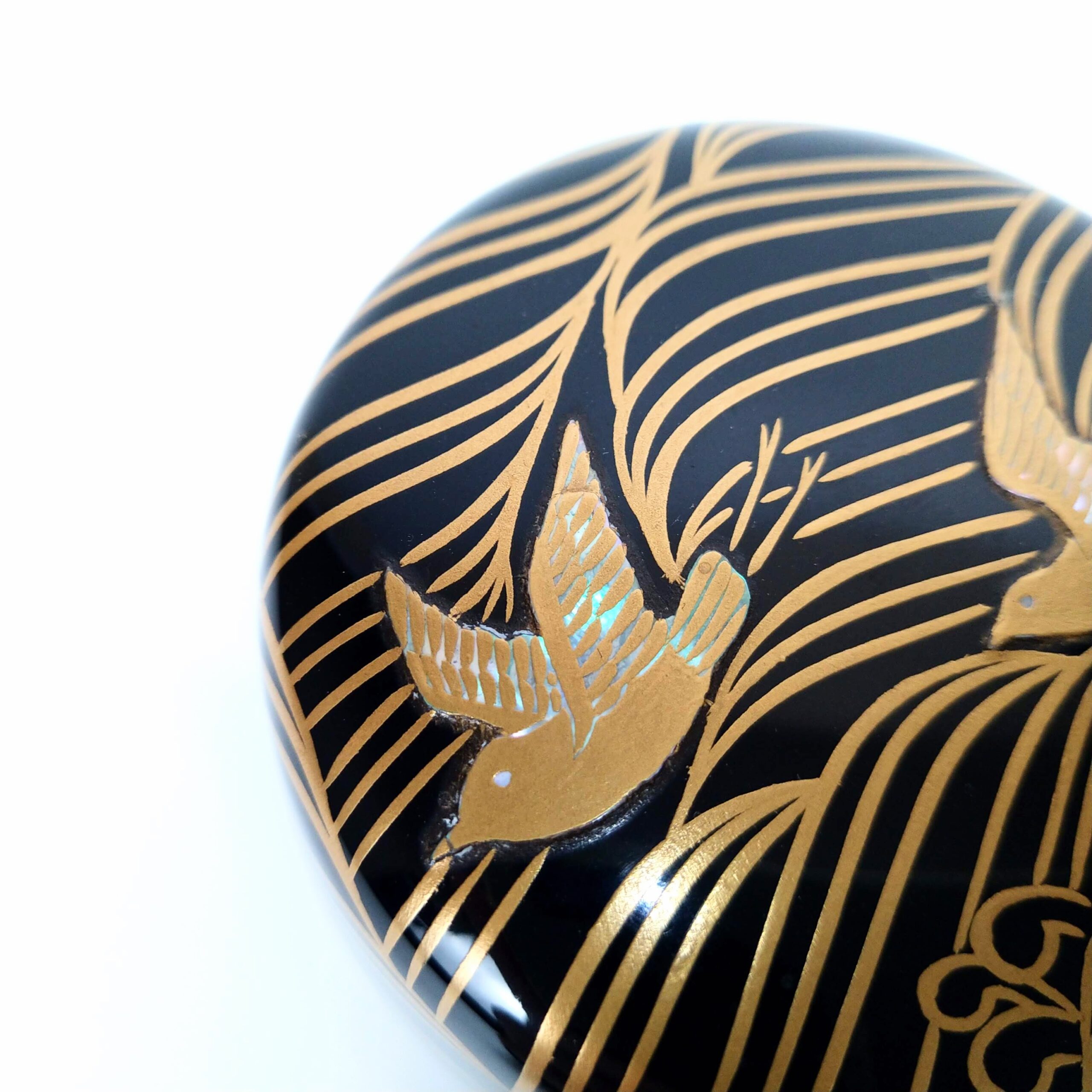 japanese antique Lacquer Tea Cabby With Design Of wave and plover be Hyouetsu Miki,Written By Houunsai