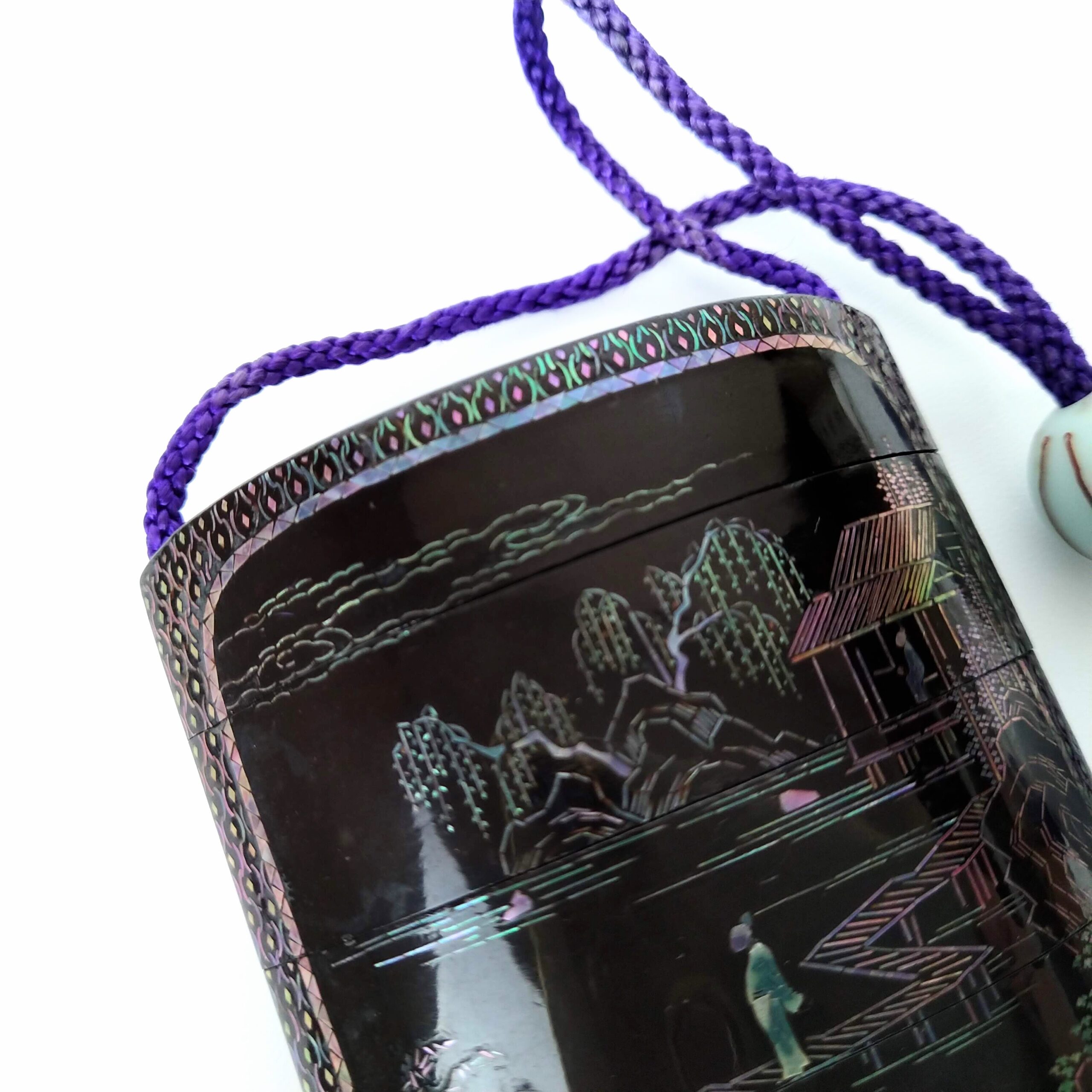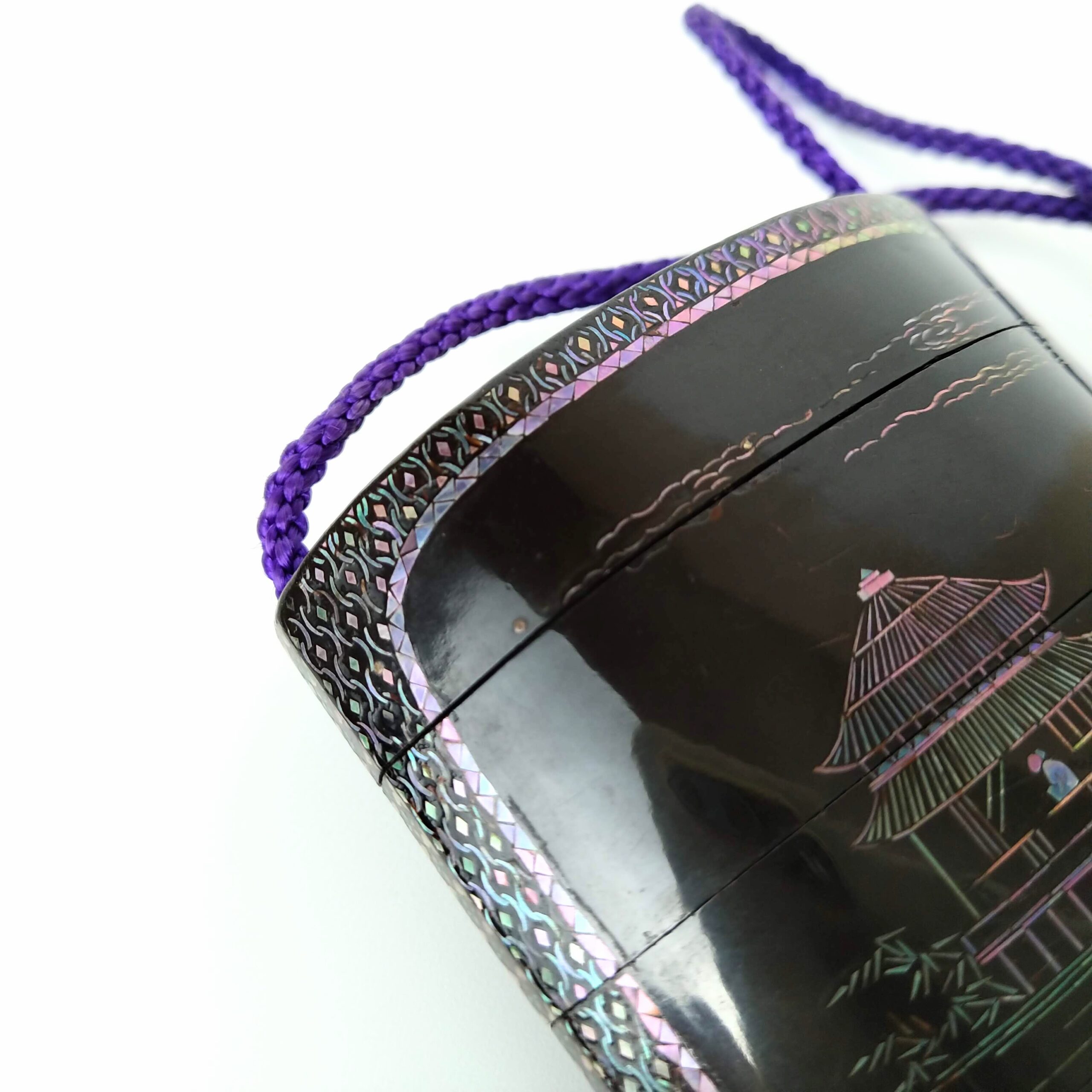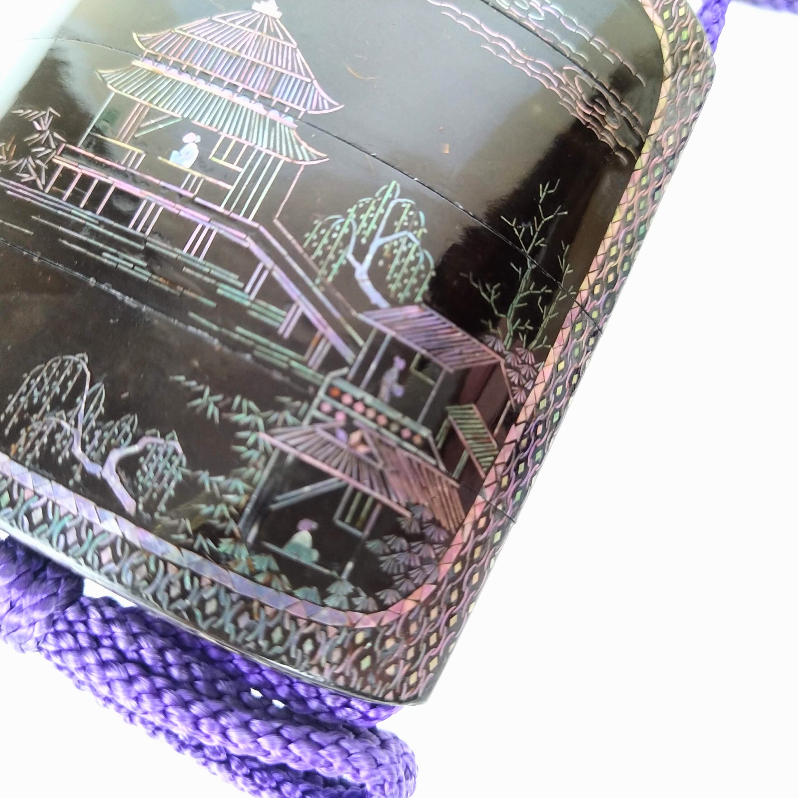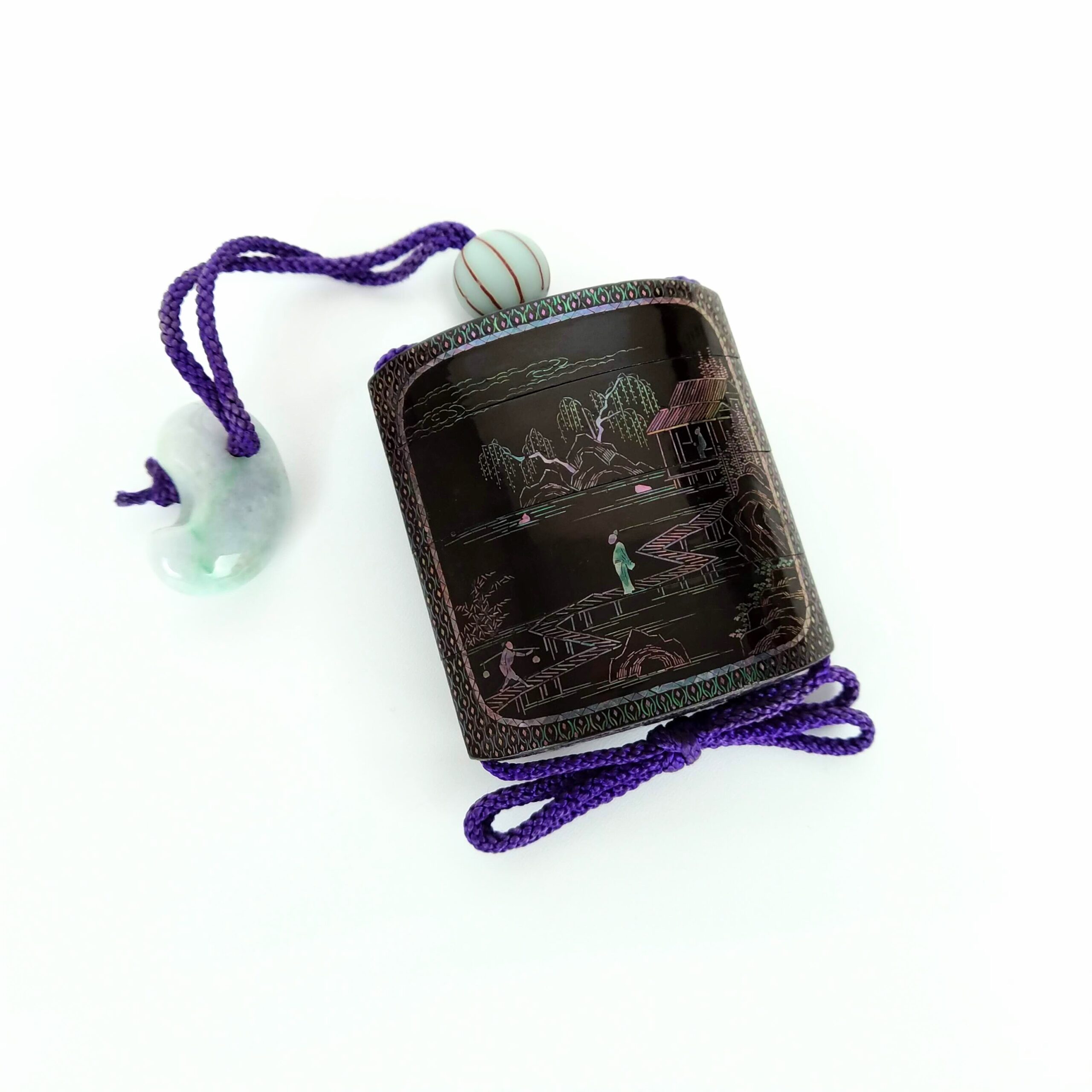 japanese antique mother of pearl Inro with design of house and people
