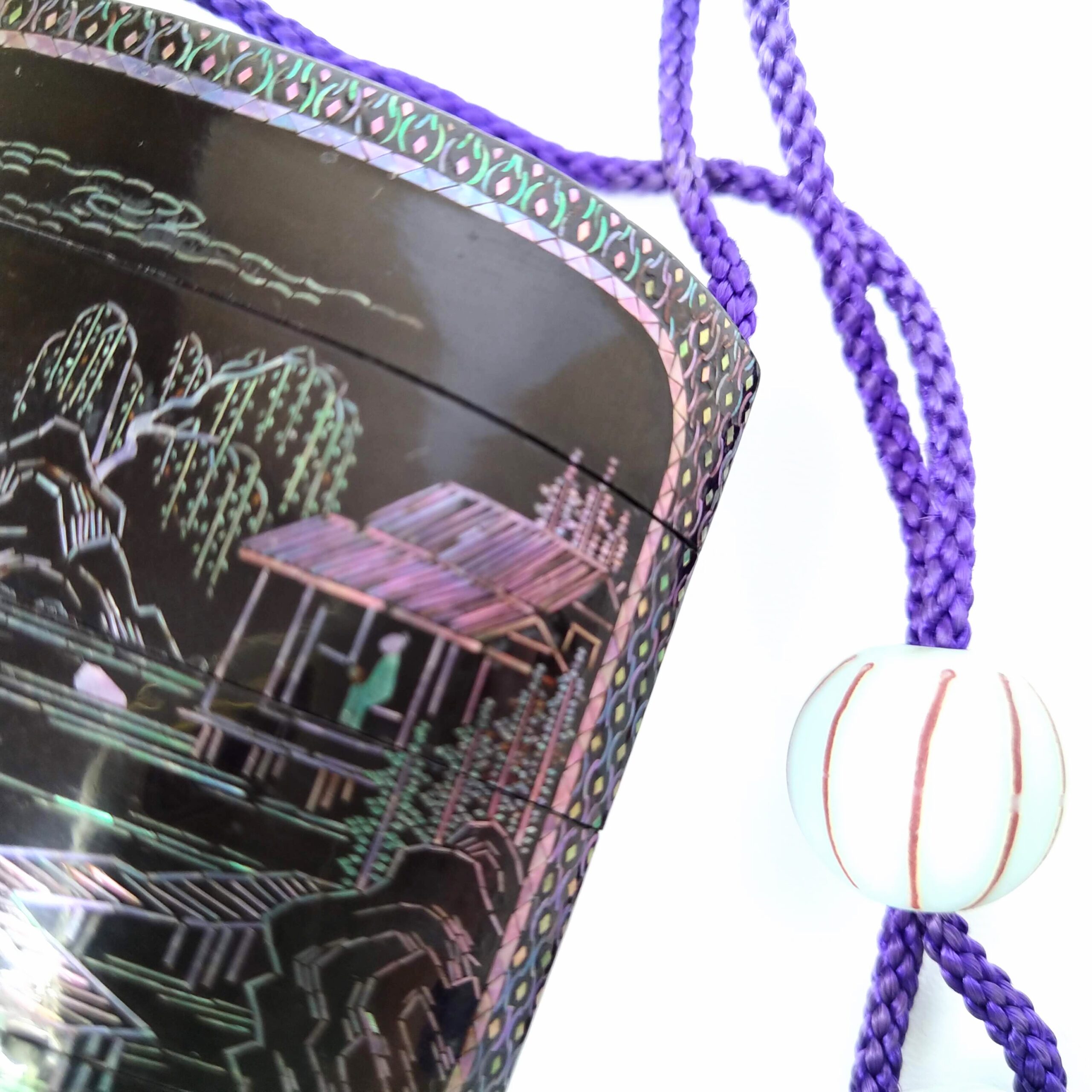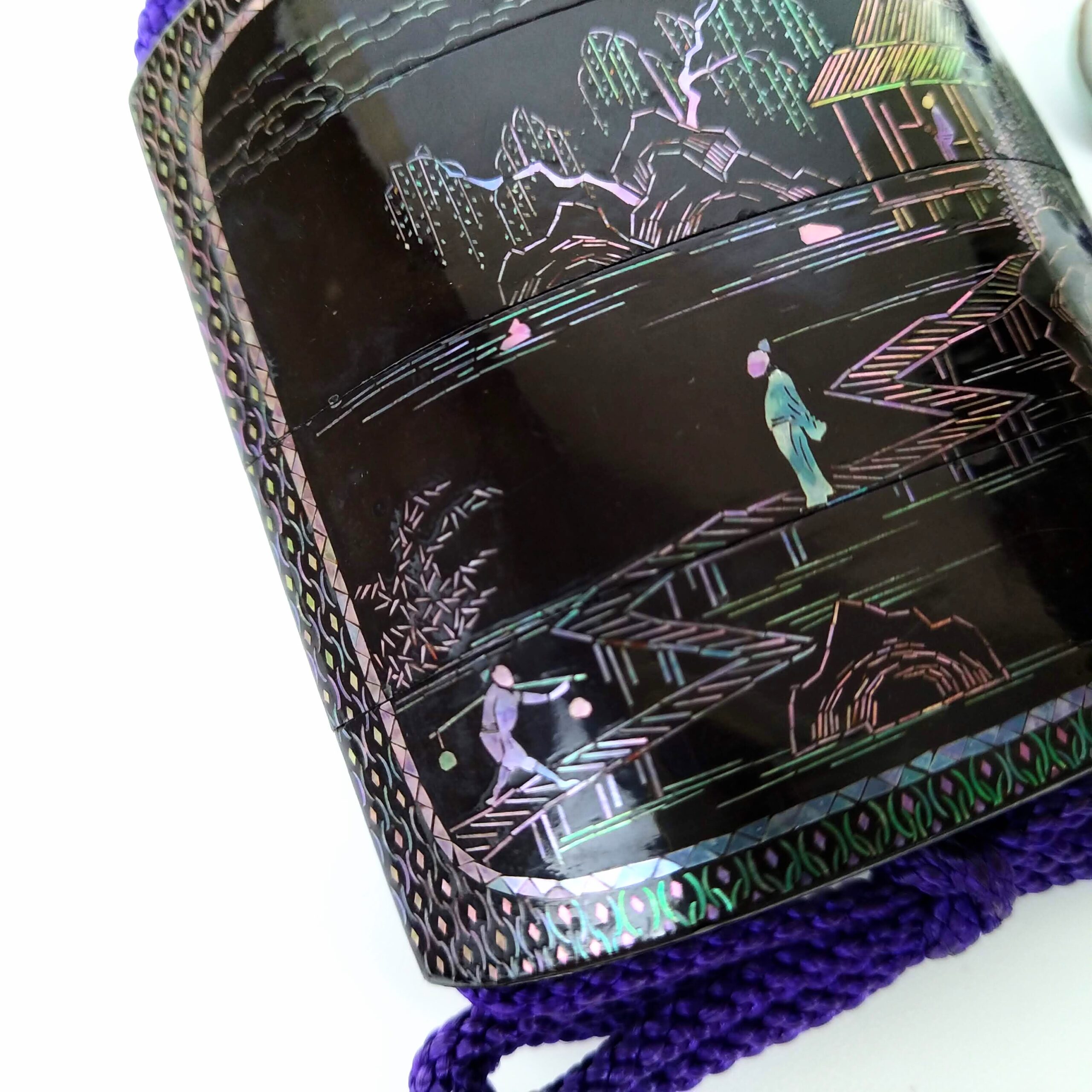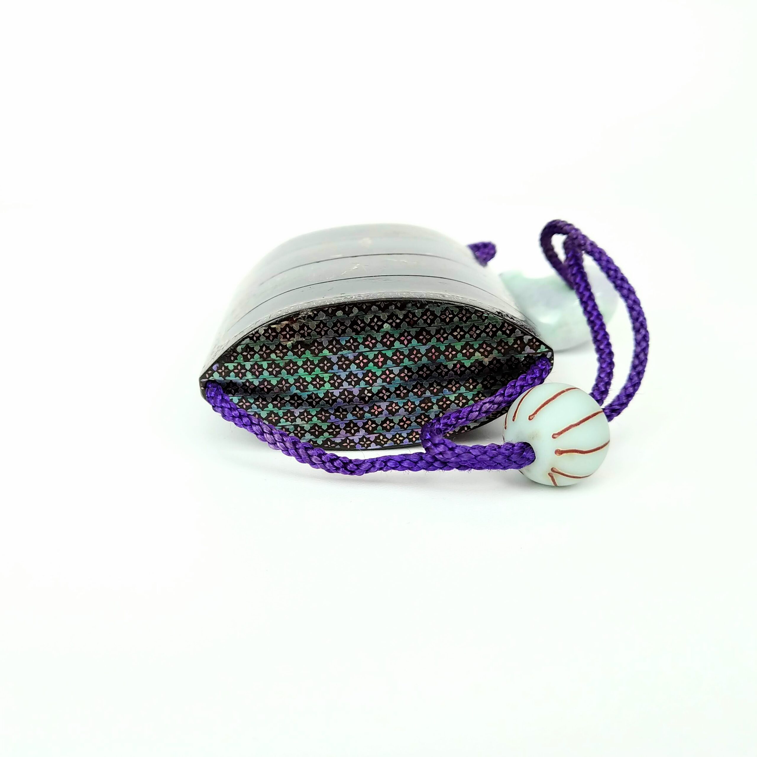 japanese antique mother of pearl Inro with design of house and people