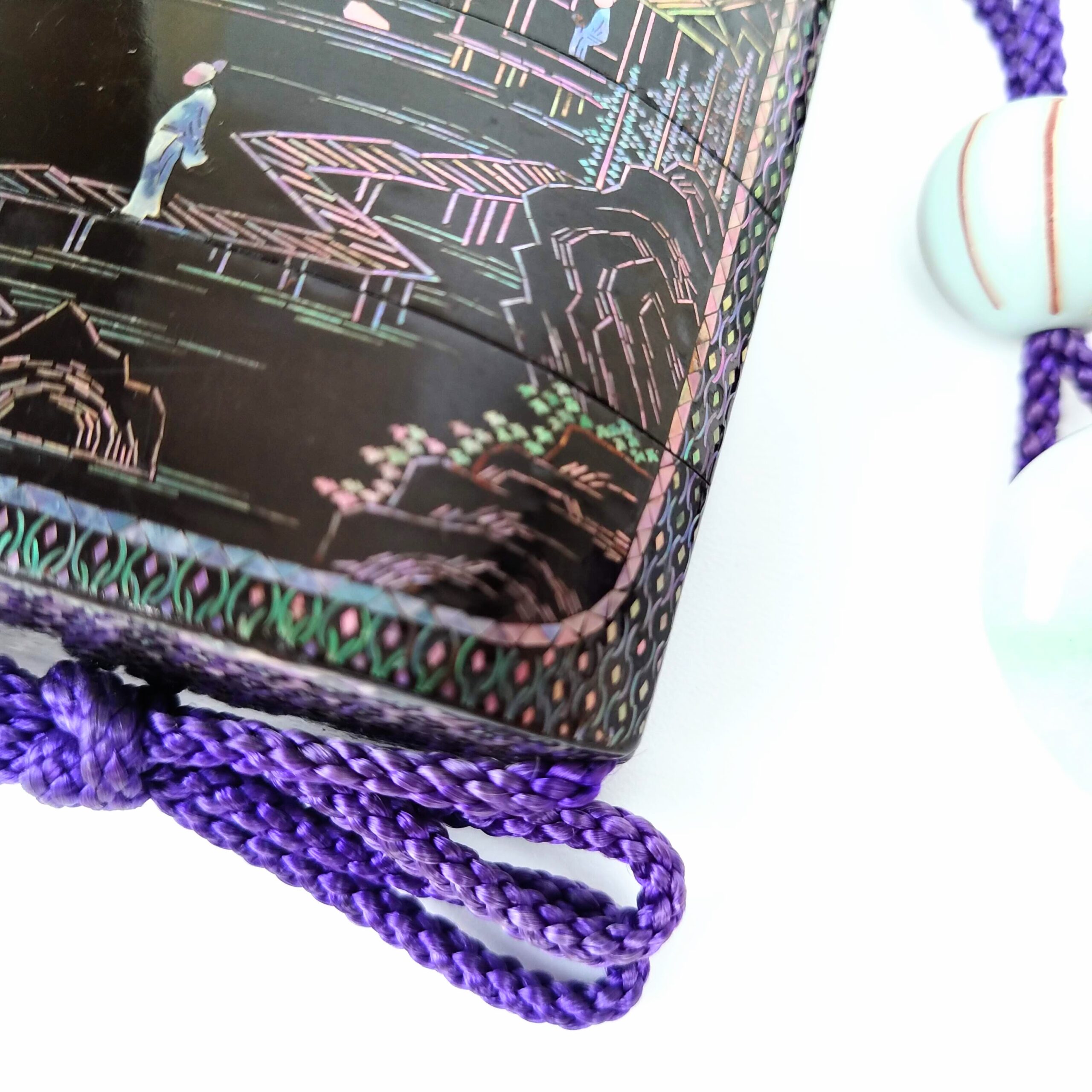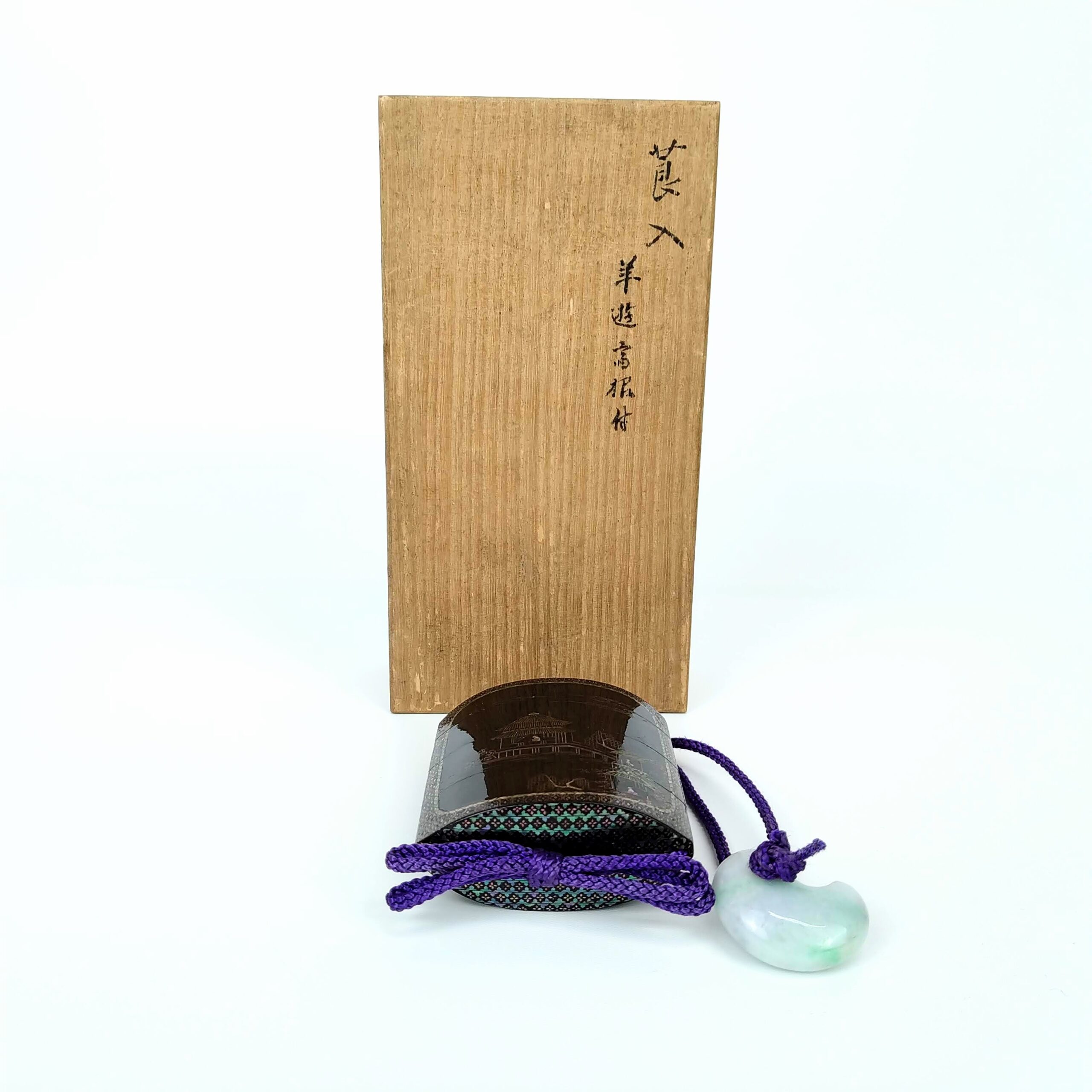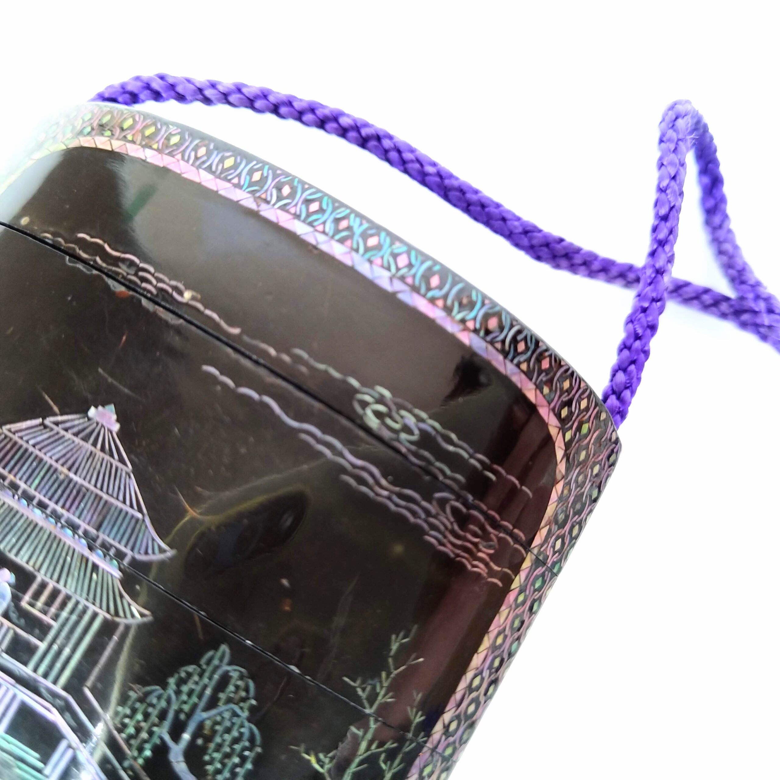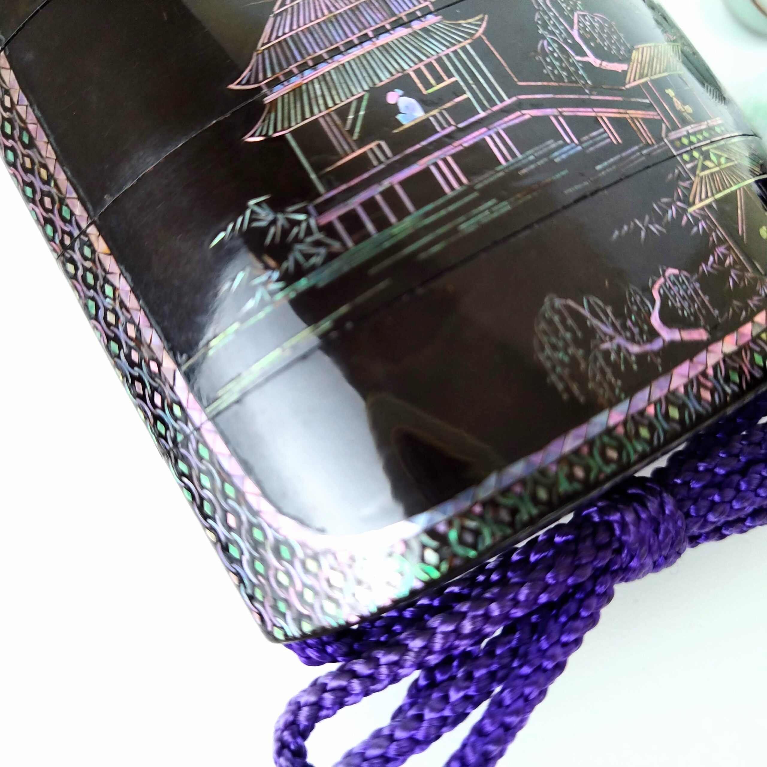 japanese antique mother of pearl Inro with design of house and people