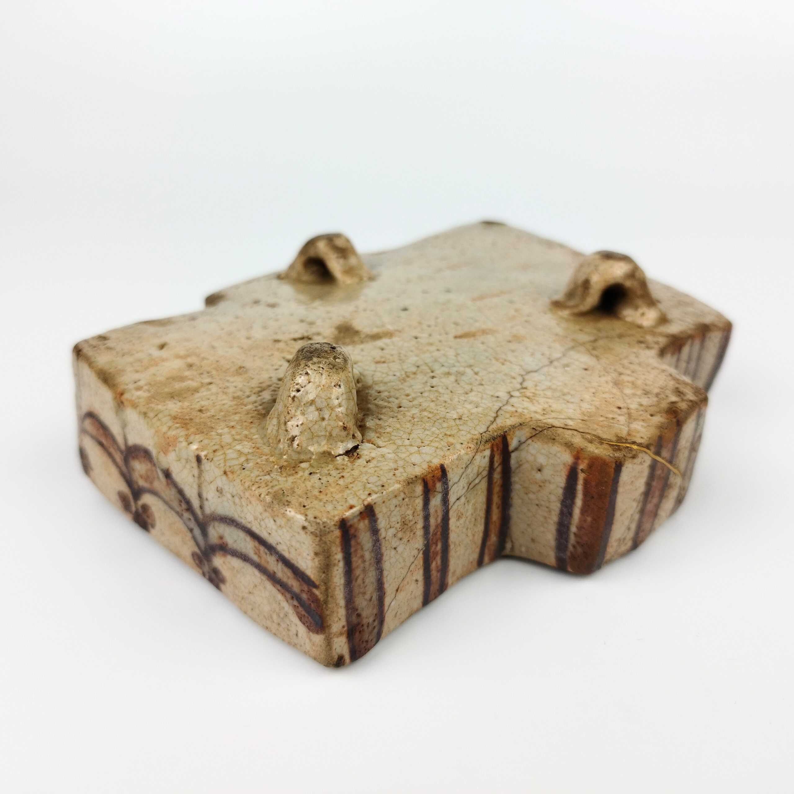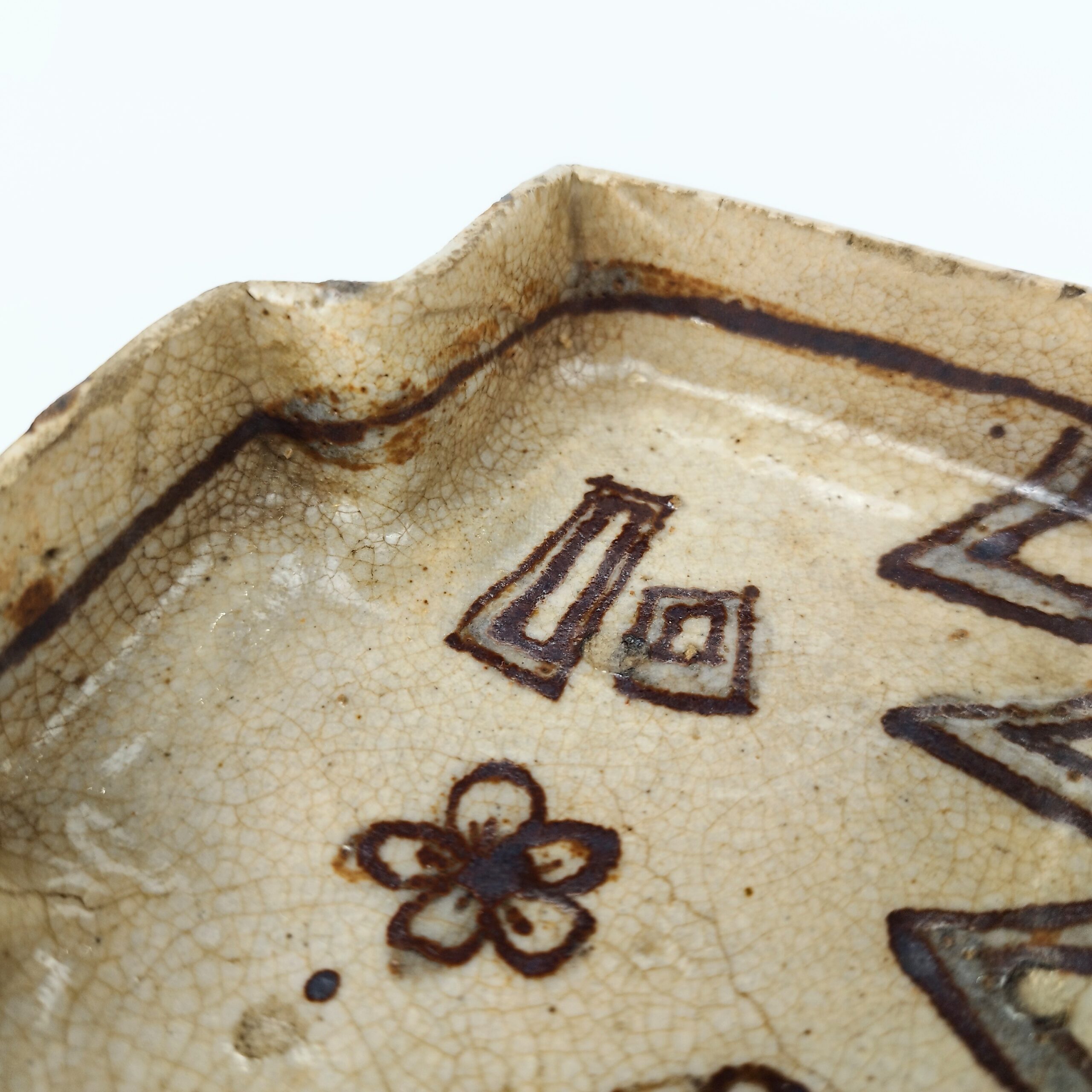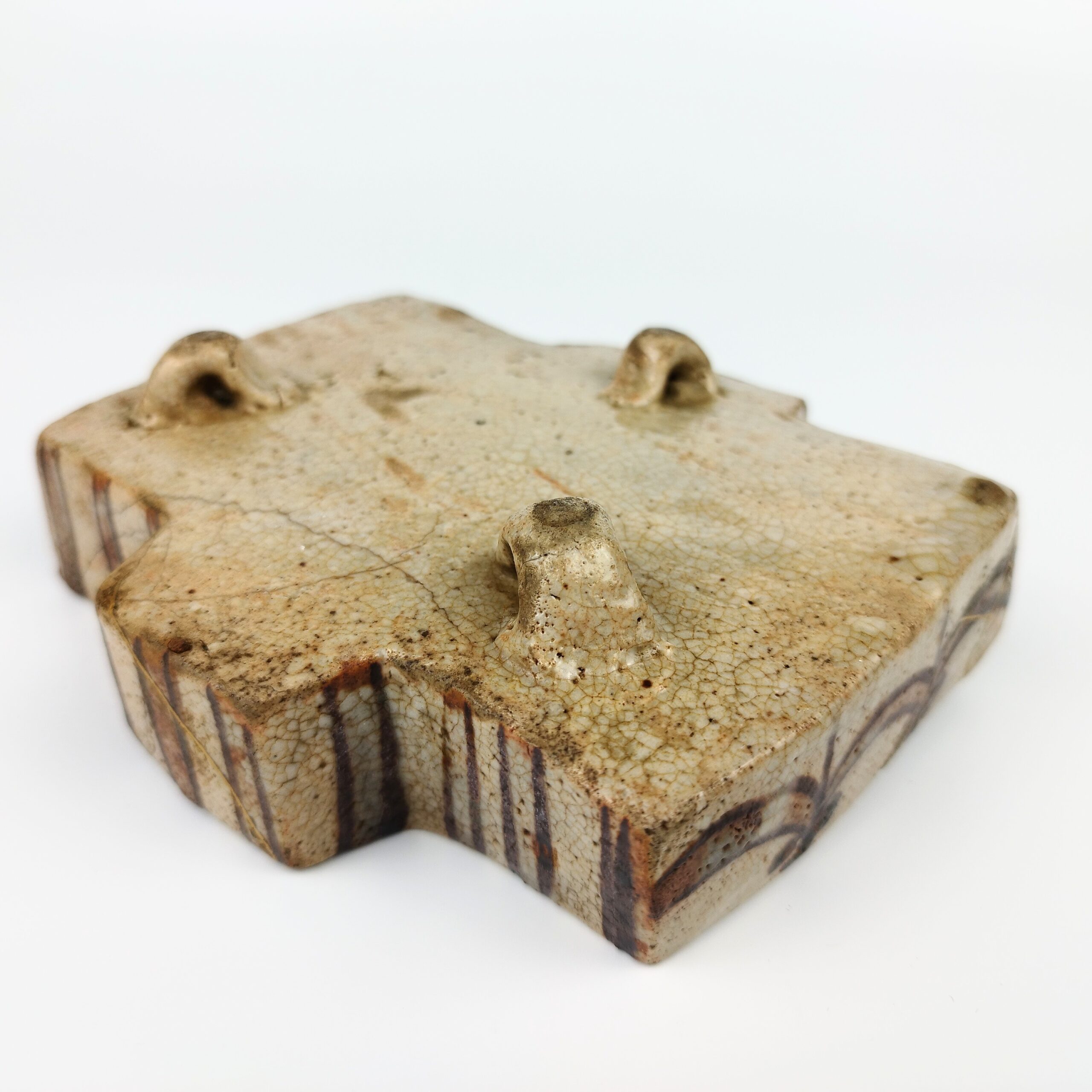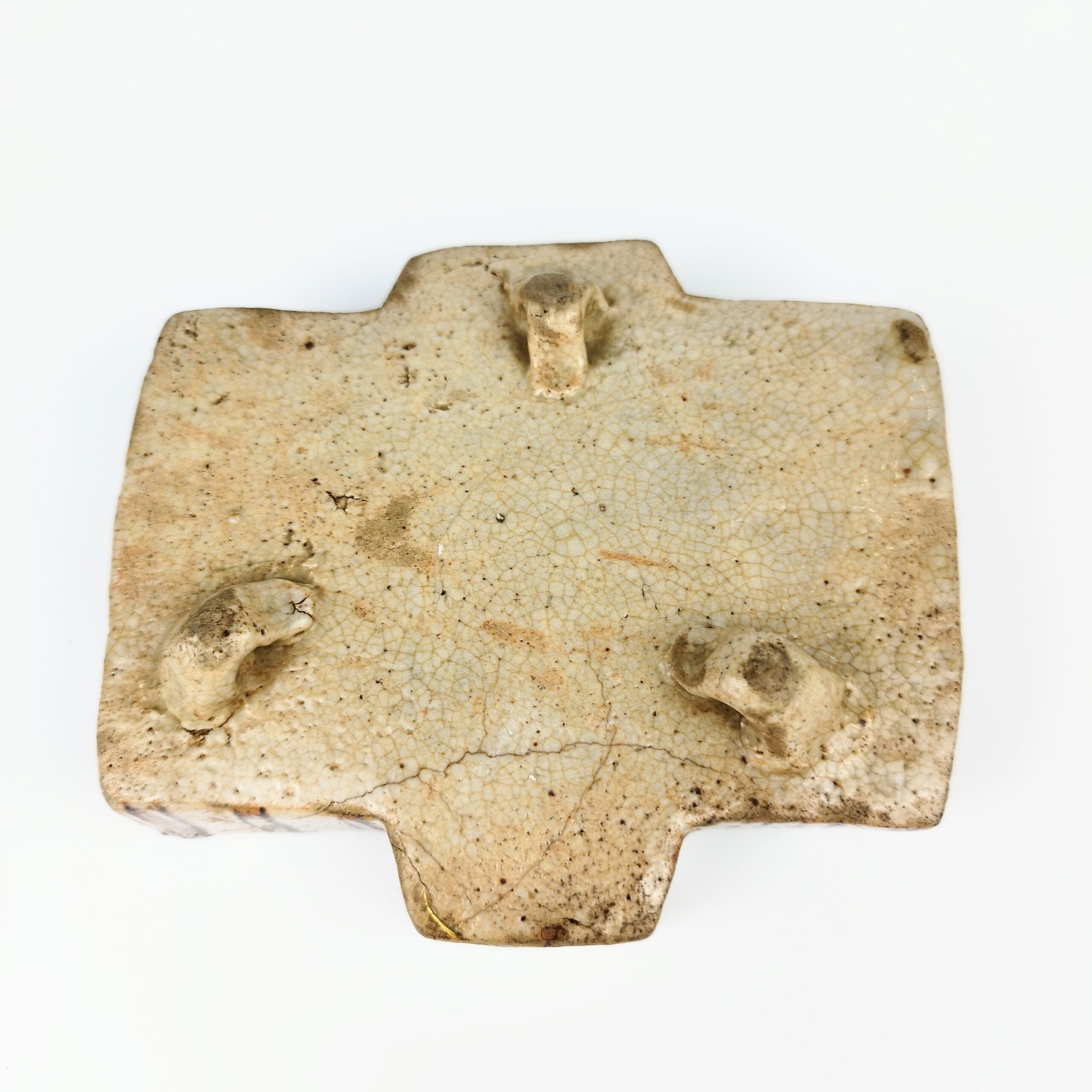 japanese antique Oribe dish with 3 legs,design of flowers,kintsugi