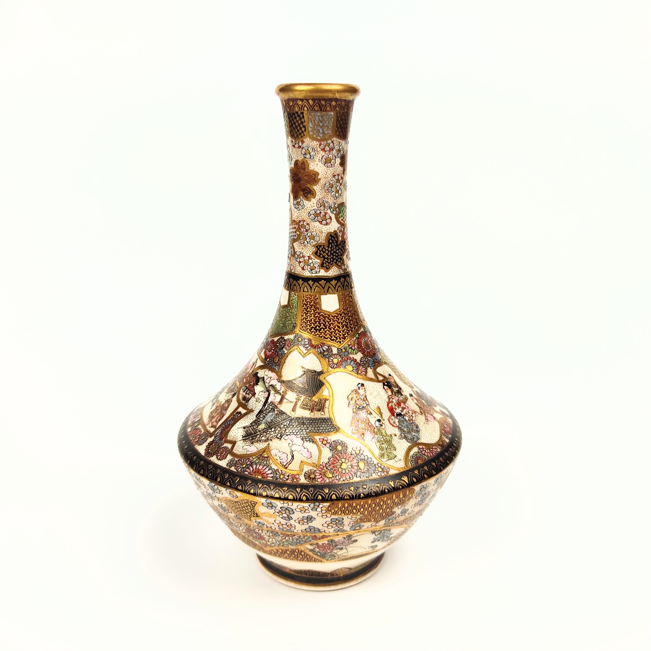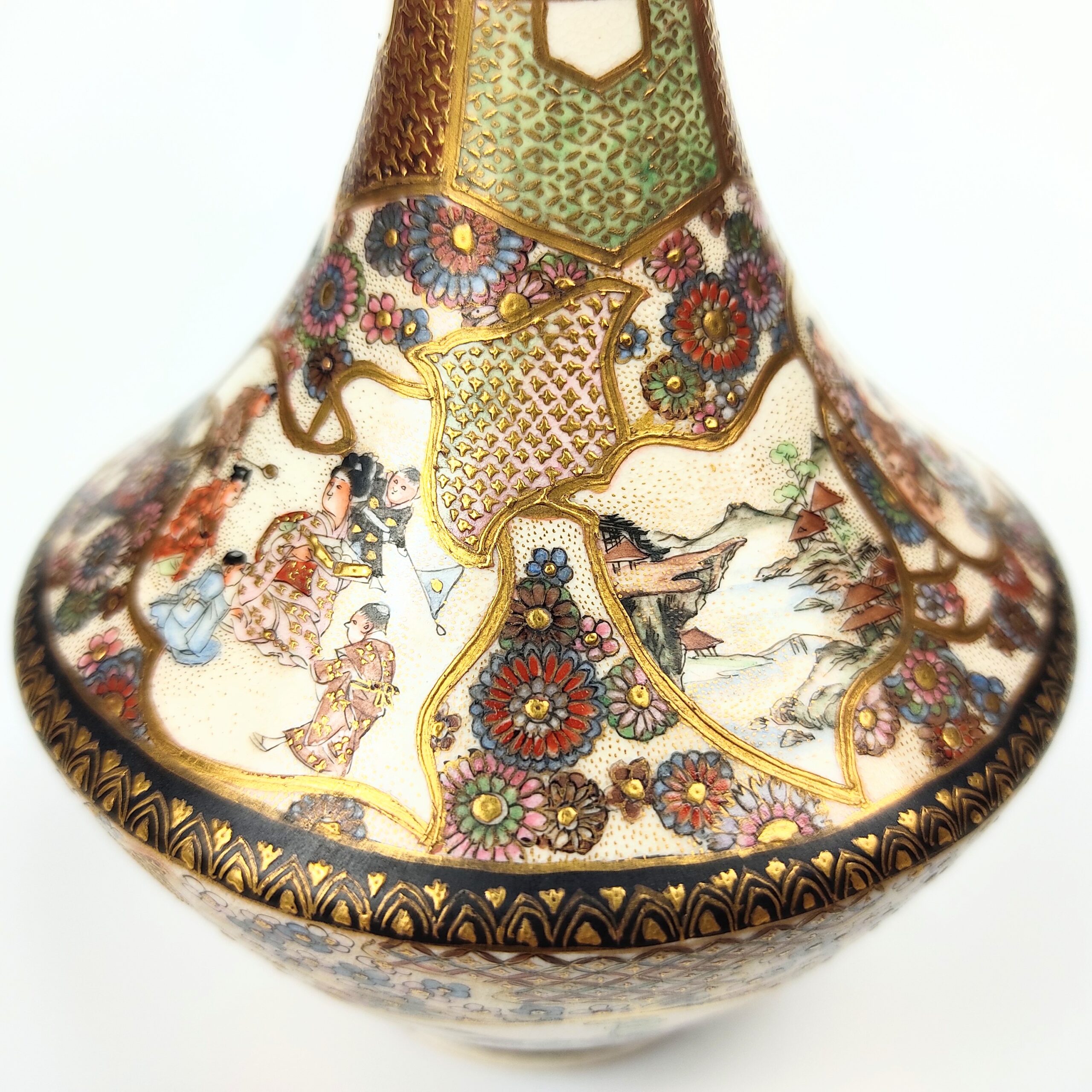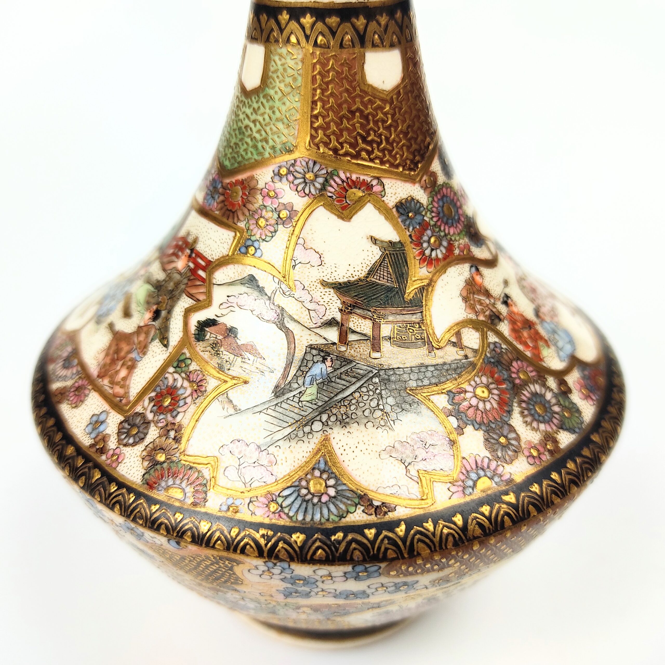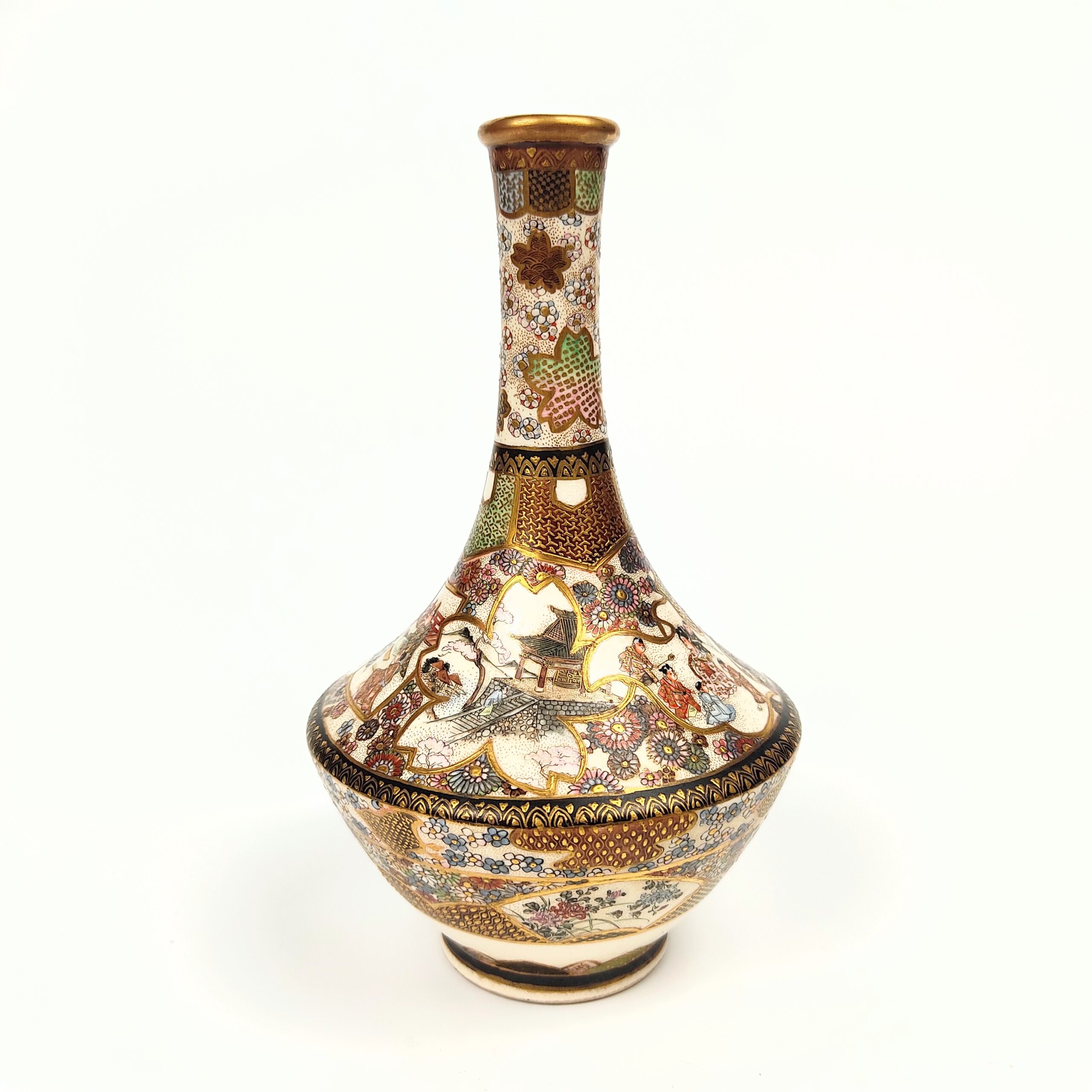 japanese antique Satsuma ware scenery design vase in pairs by SYUNZAN