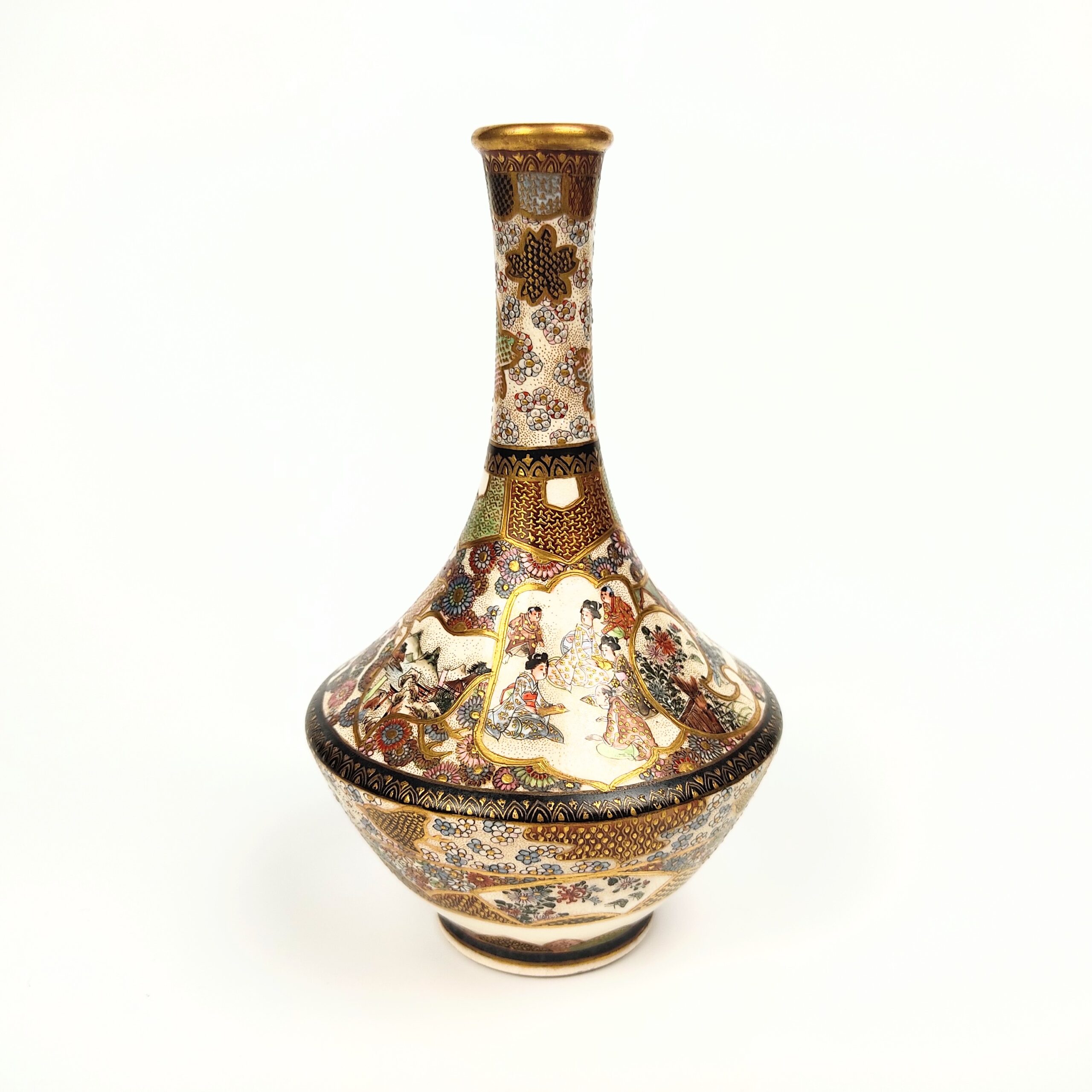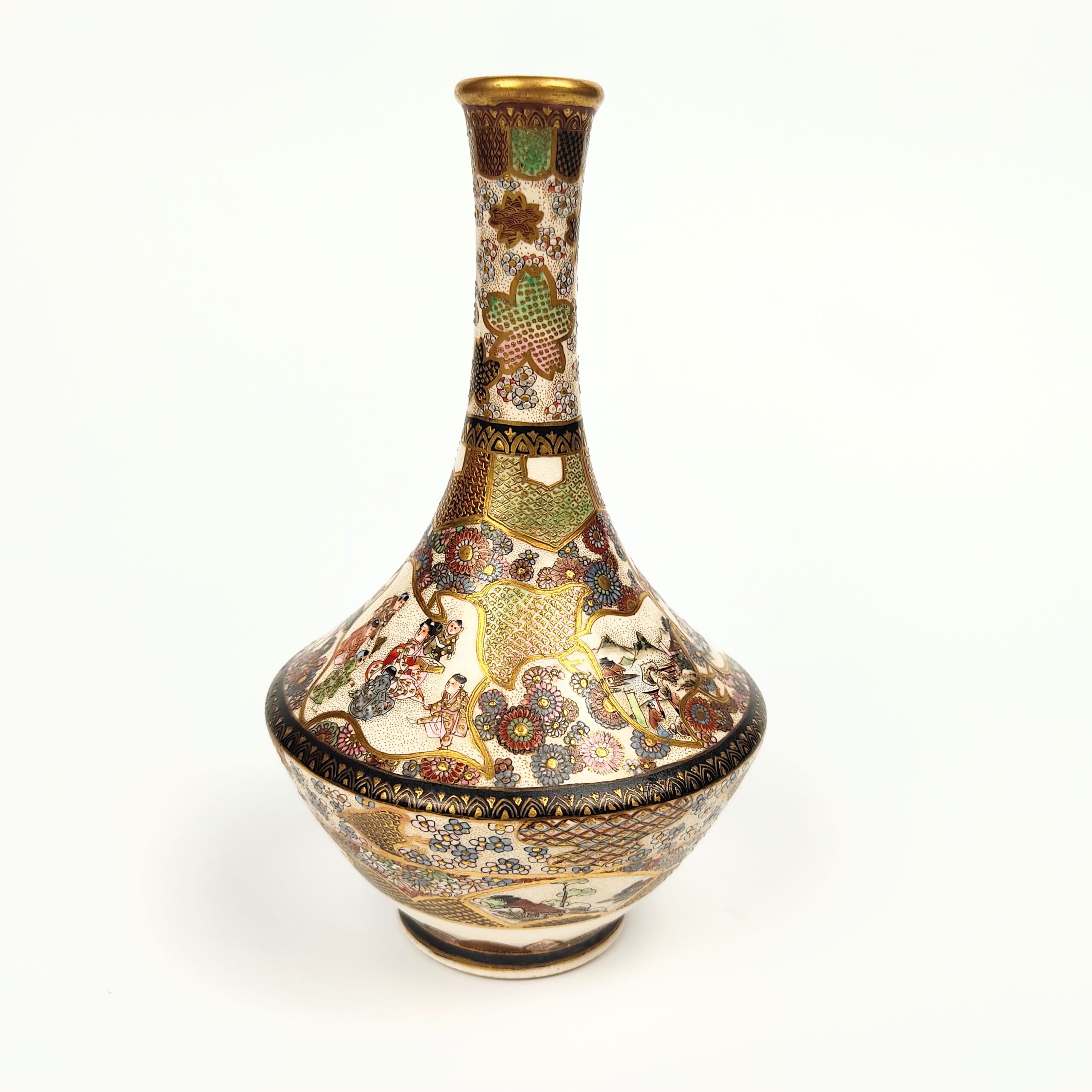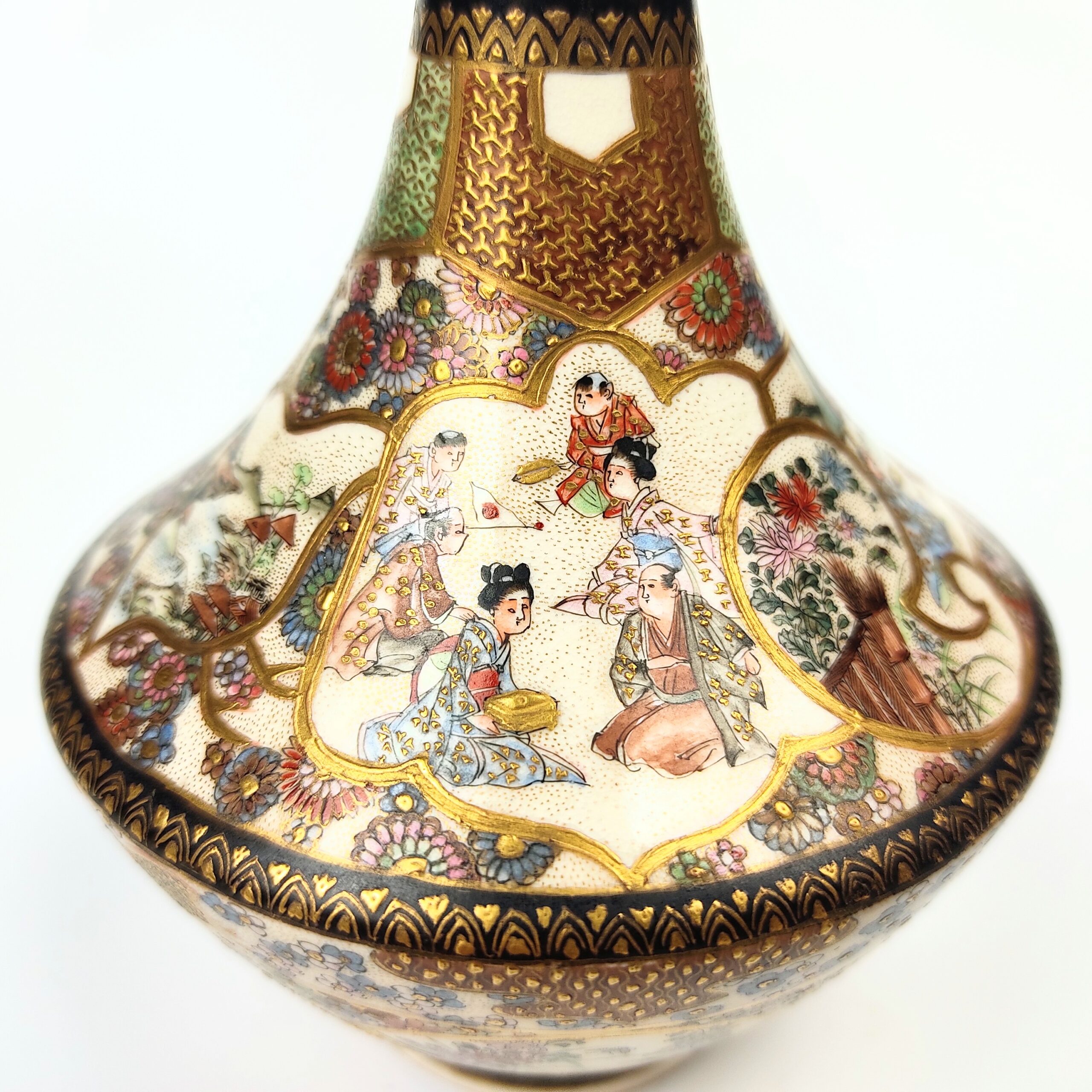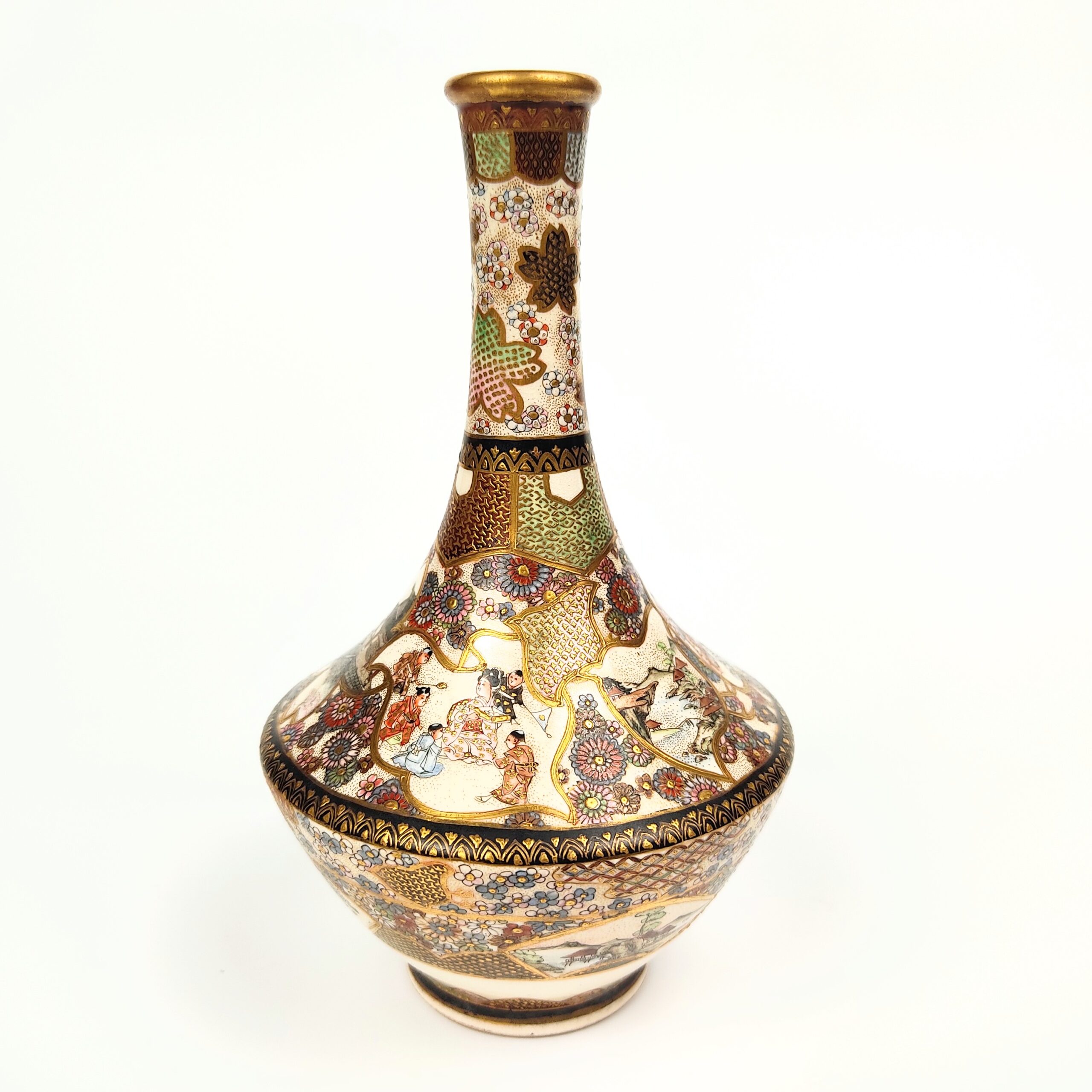 japanese antique Satsuma ware scenery design vase in pairs by SYUNZAN