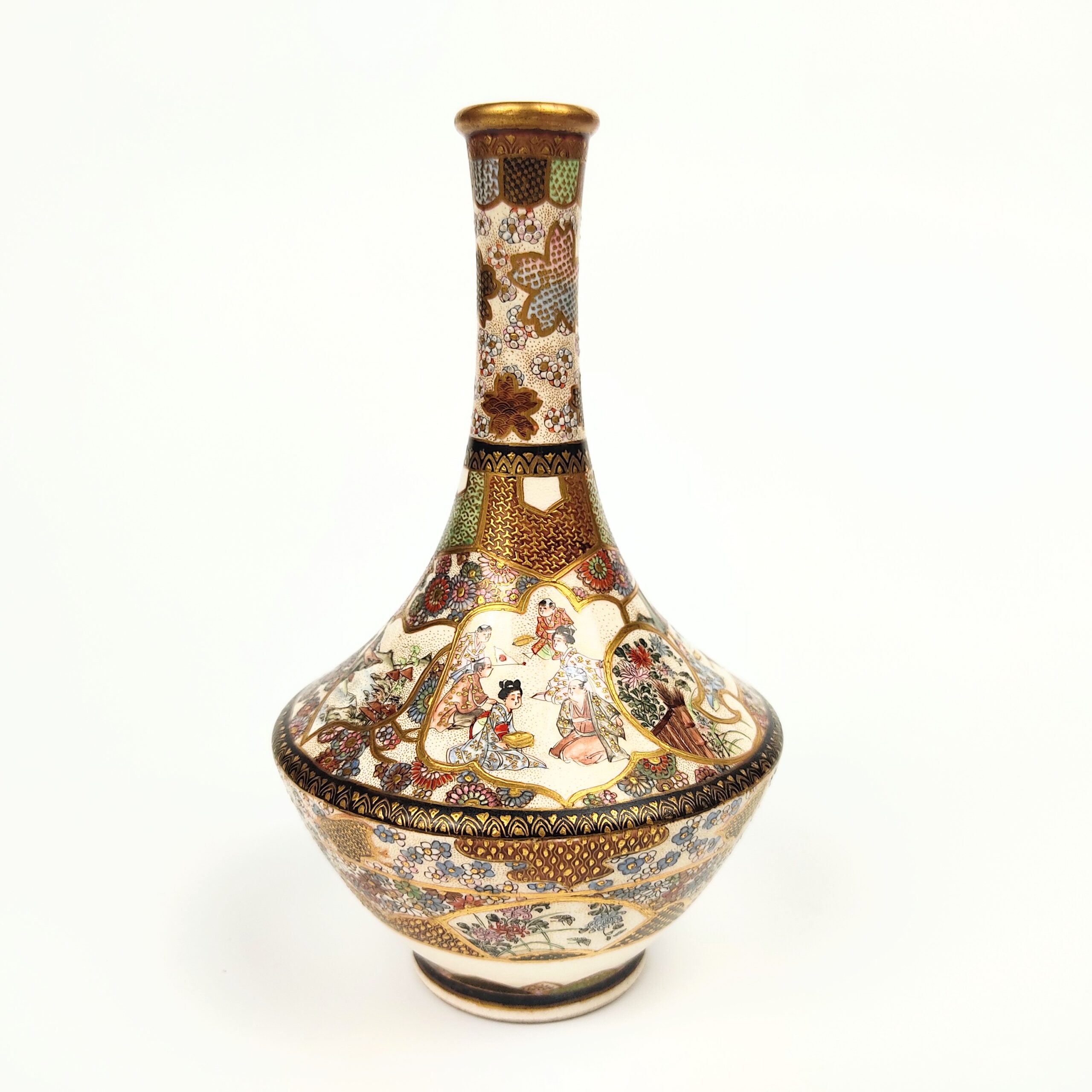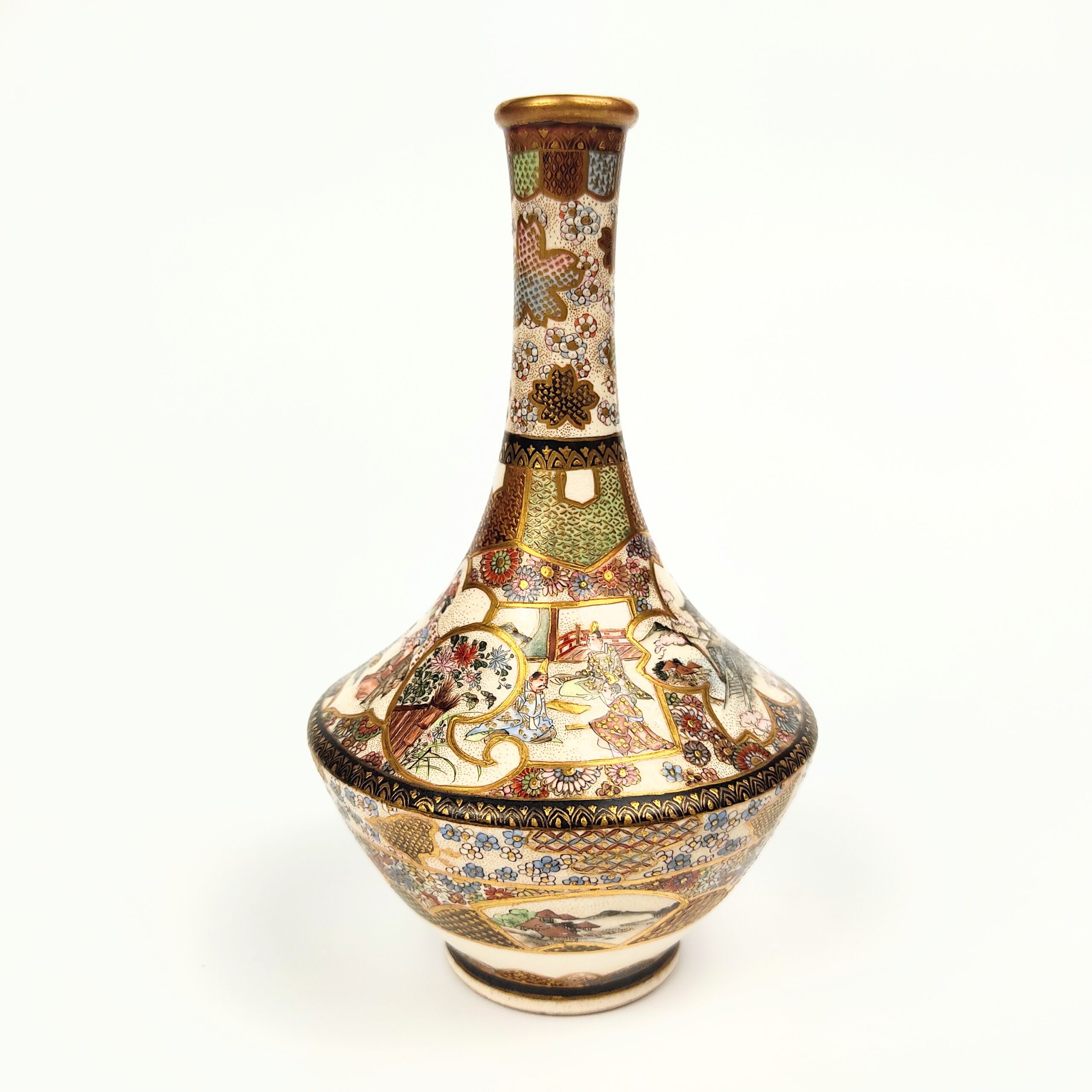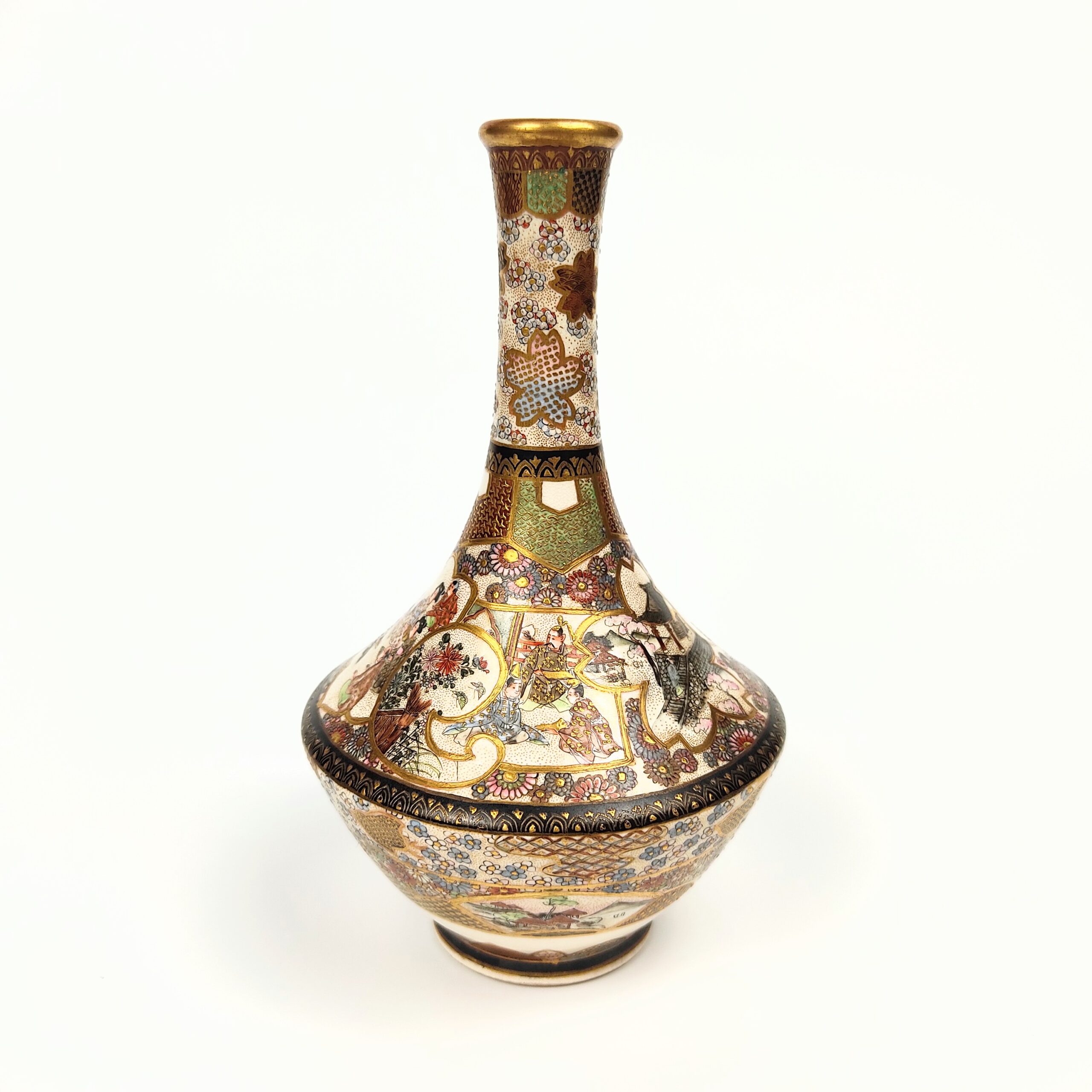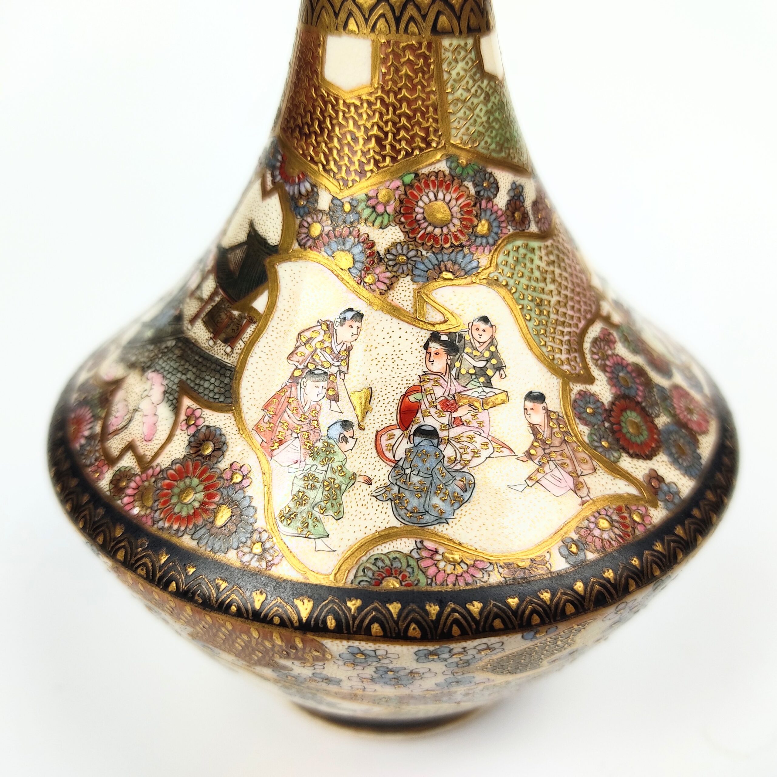 japanese antique Satsuma ware scenery design vase in pairs by SYUNZAN