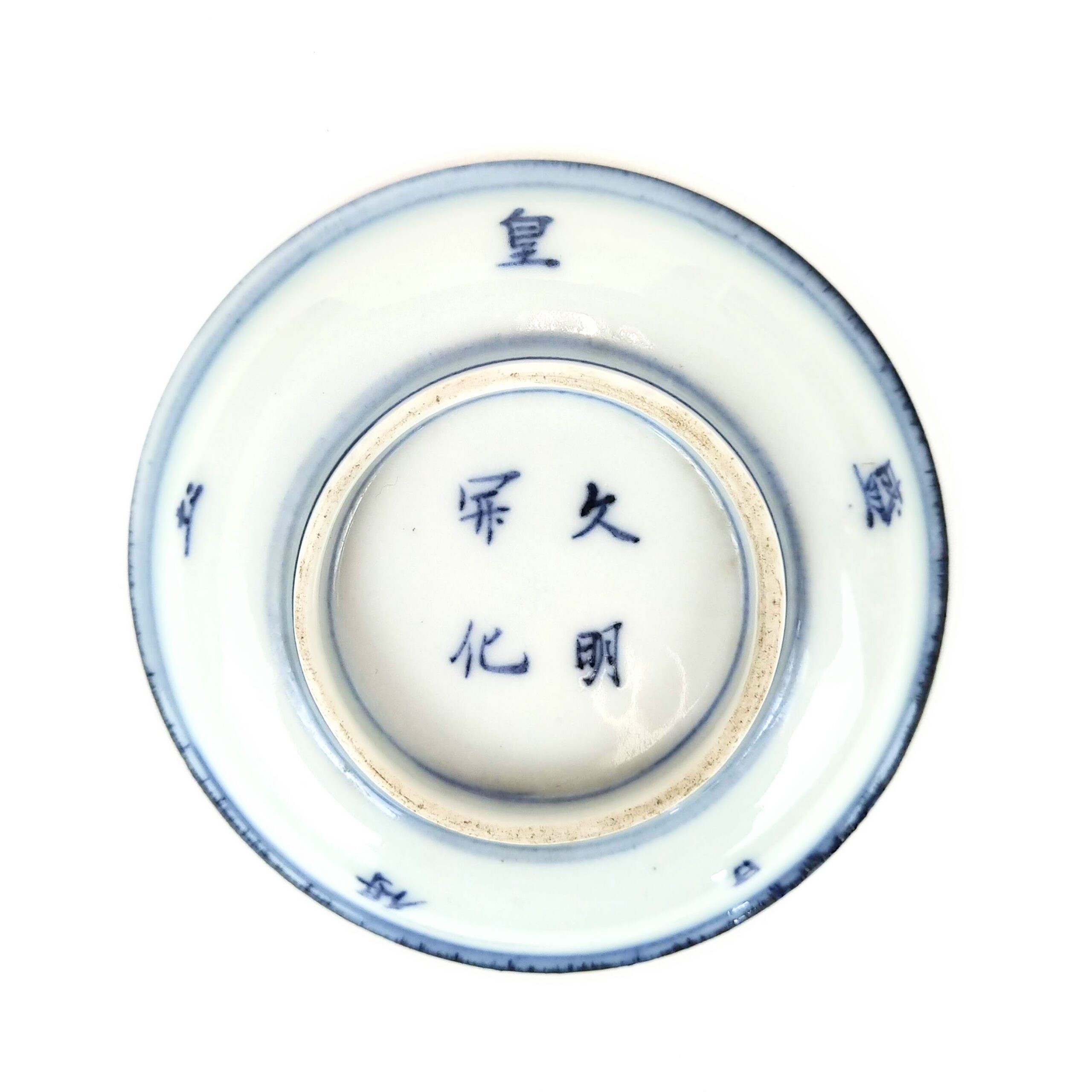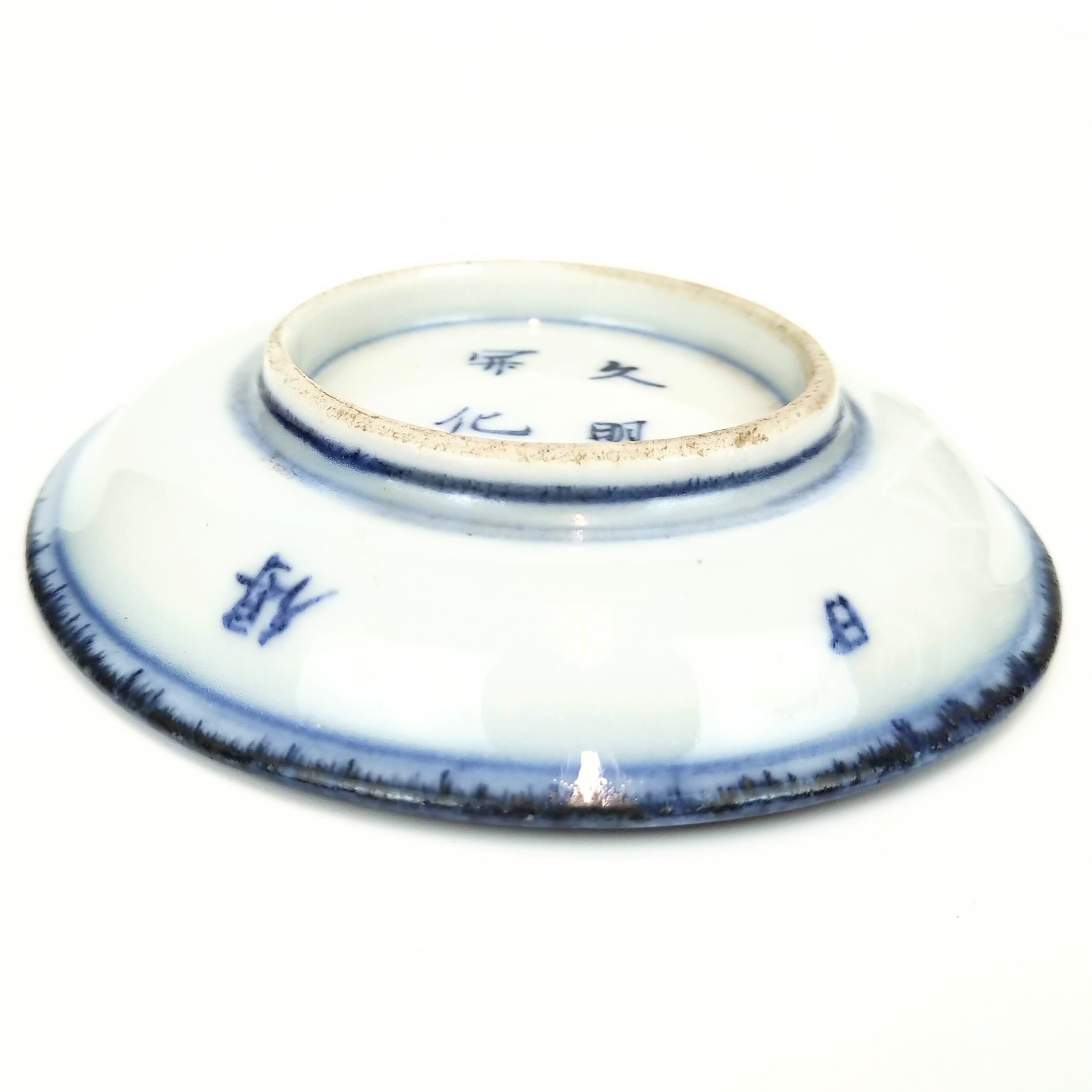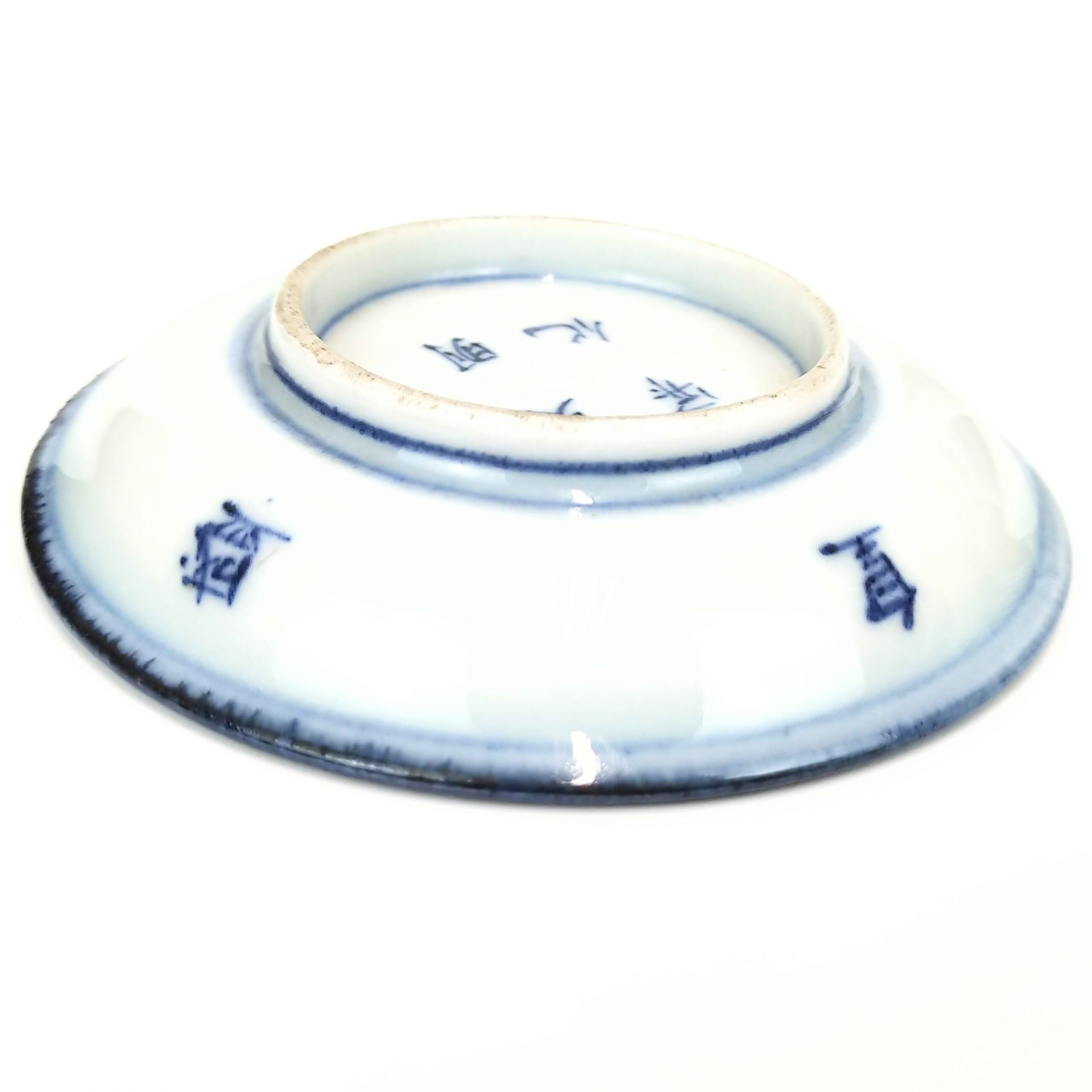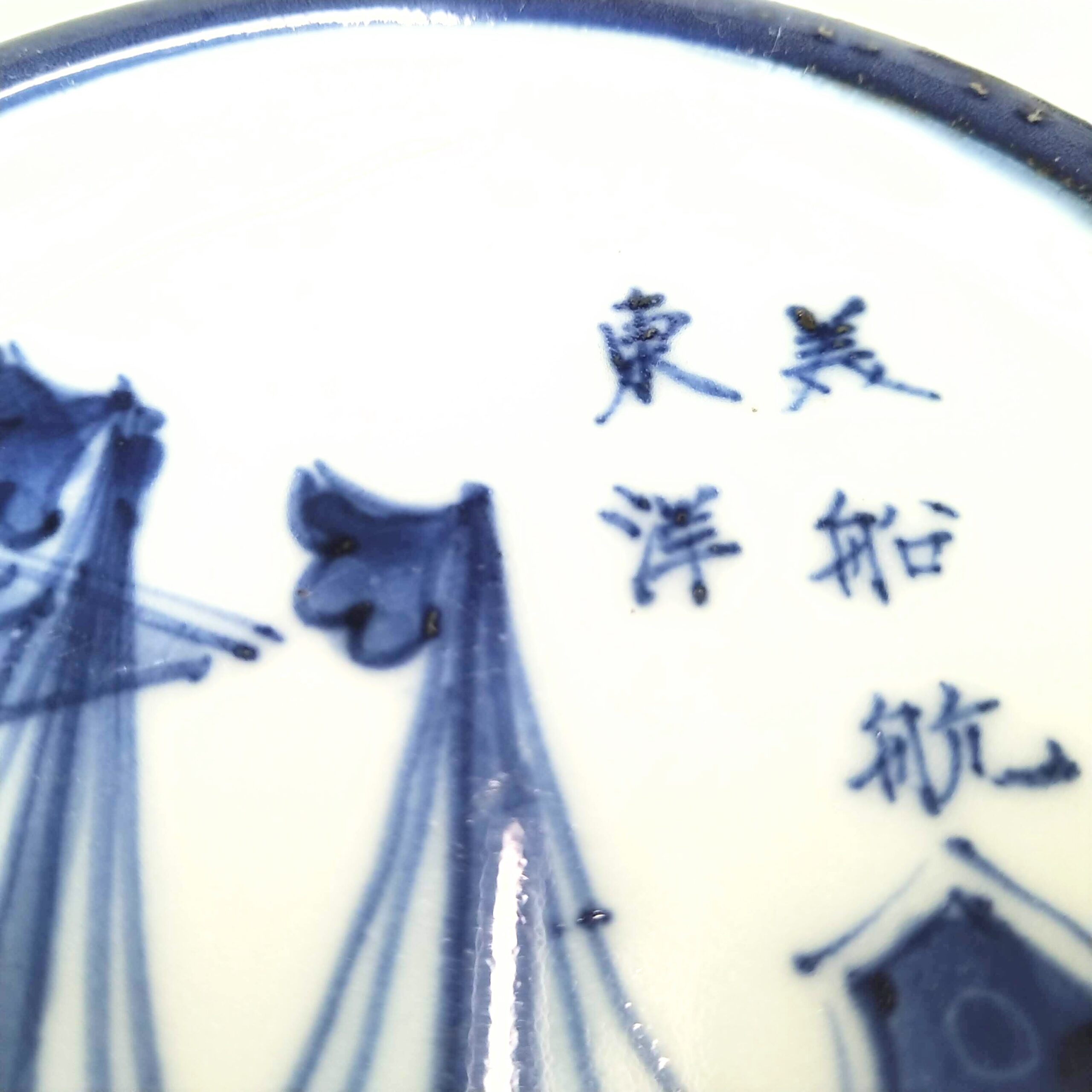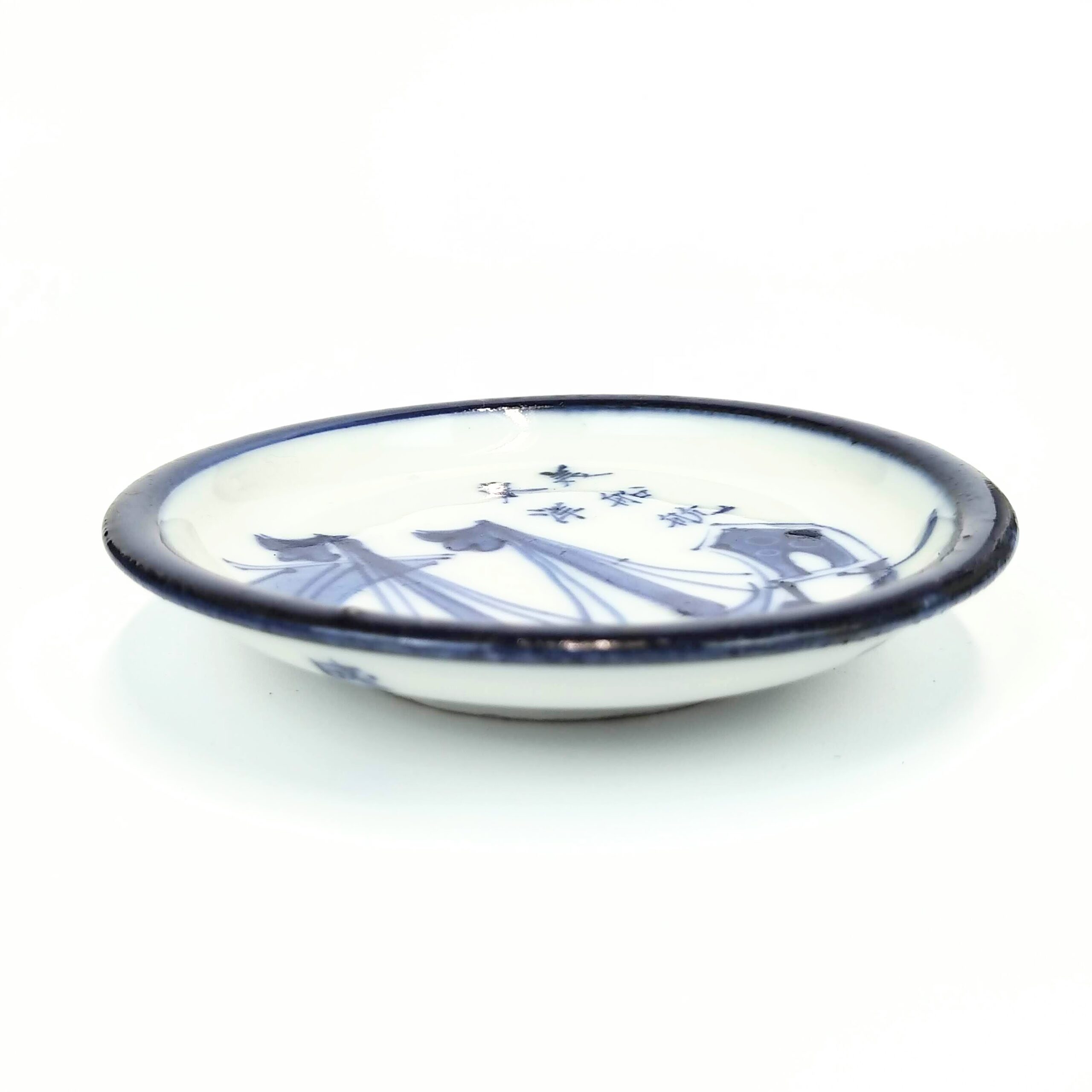 japanese antique Seto ware blue and white small dish with design of sailing ship